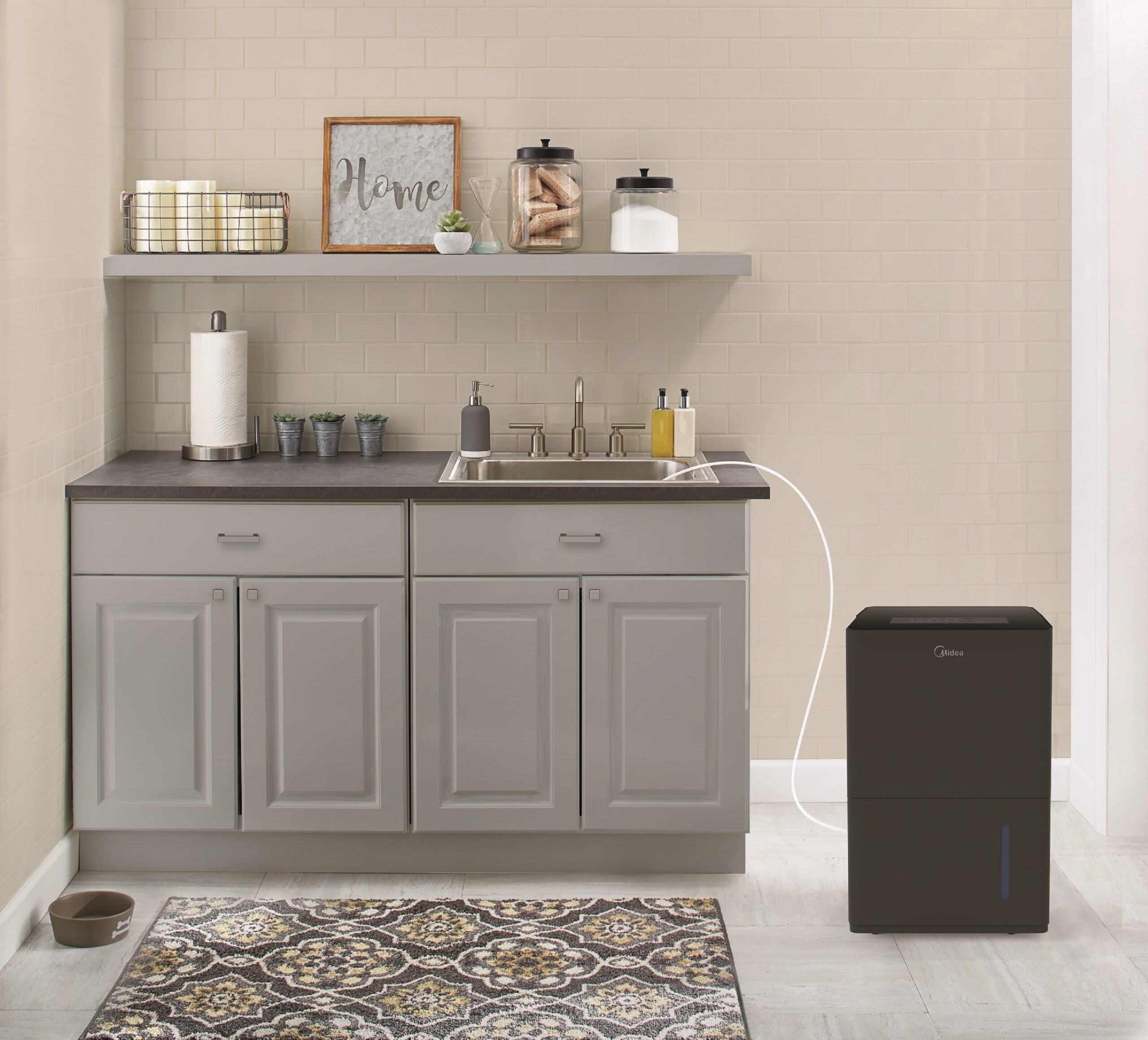 Midea 50-Pint EnergyStar Smart Dehumidifier for Wet Rooms with Pump. Black. MAD50PS1WBL