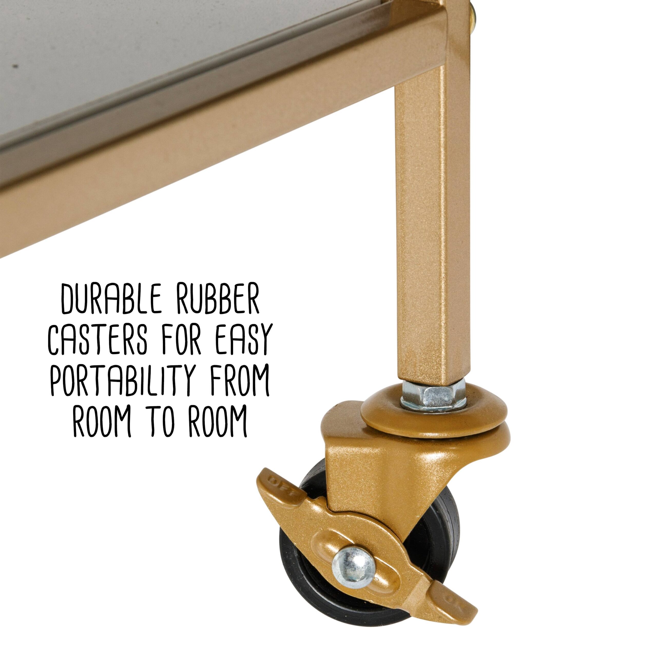 Honey Can Do 3-Tier Gold & White Rolling Bar & Serving Cart with Handles