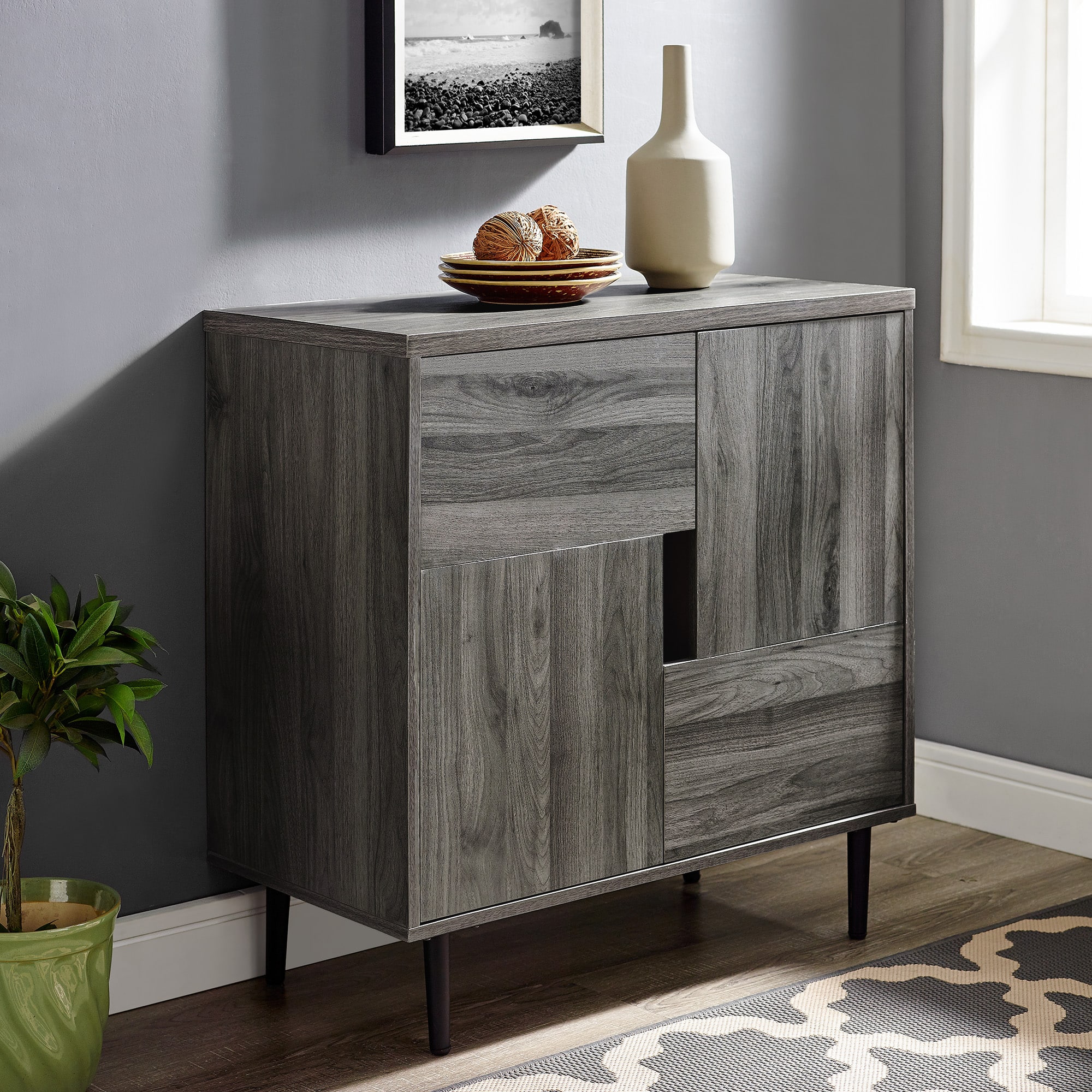 Walker Edison Slate Gray/Red Interior Modern Color Pop Accent Cabinet
