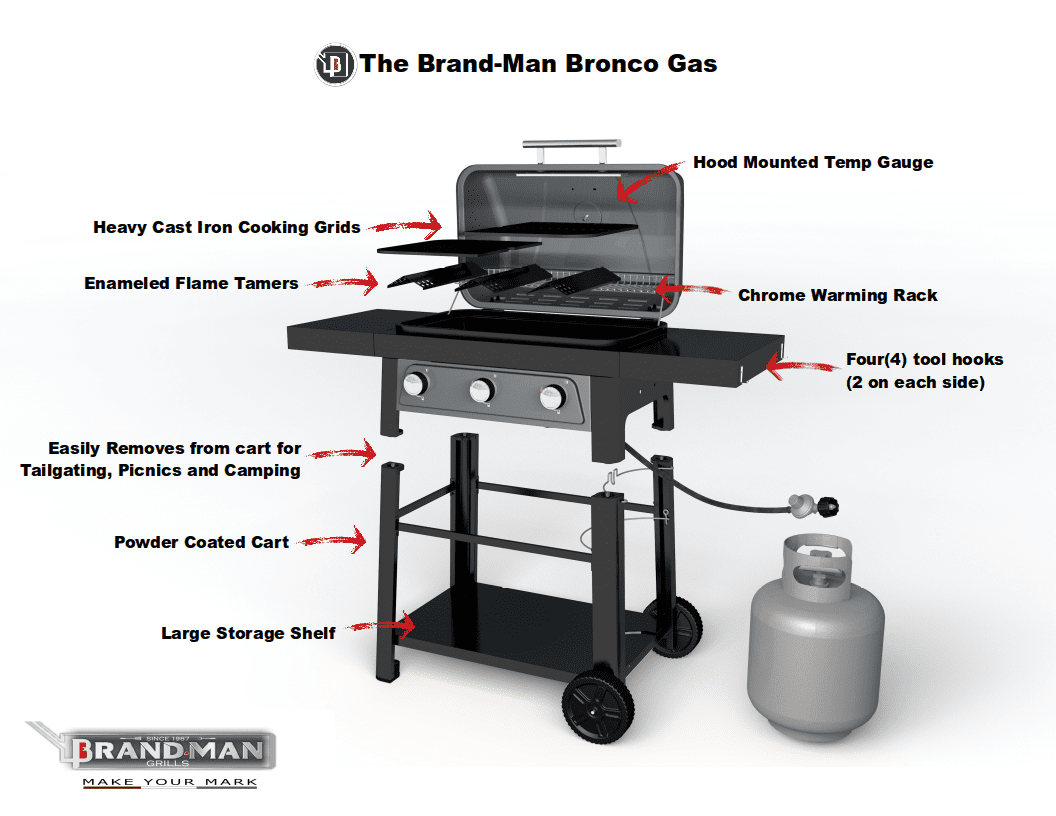 Bronco-3 Burner Propane Gas Grill / Portable by Brand-Man Grills