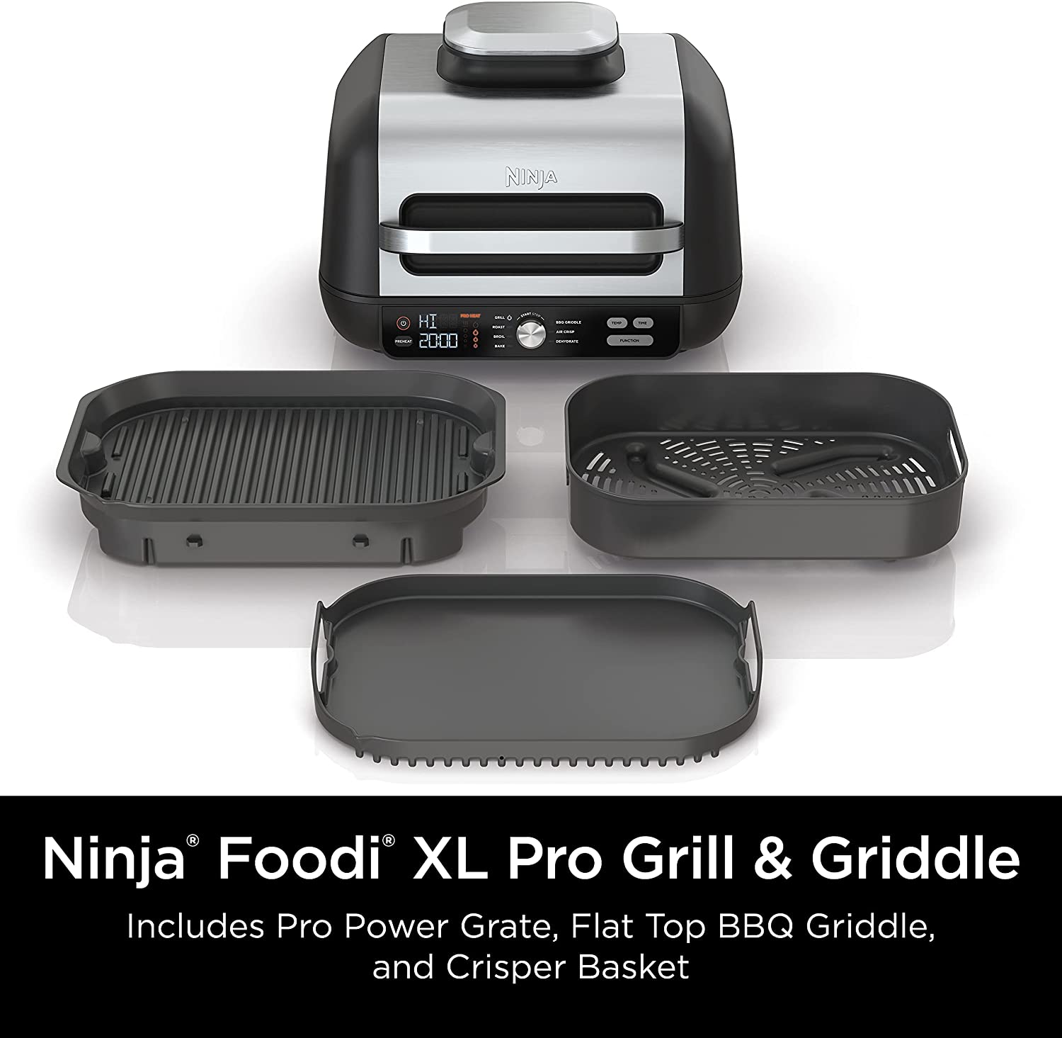 Restored Ninja IG601 Foodi XL 7-in-1 Indoor Grill Combo. Flat Top Griddle. Crisper. Black. 4 Quarts (Refurbished)