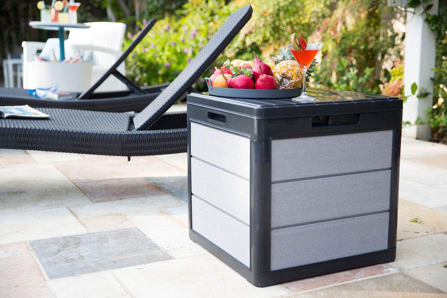 Keter Denali 30 Gallon Resin Deck Box for Patio Furniture. Pool Accessories. and Storage for Outdoor Toys. Grey/Black
