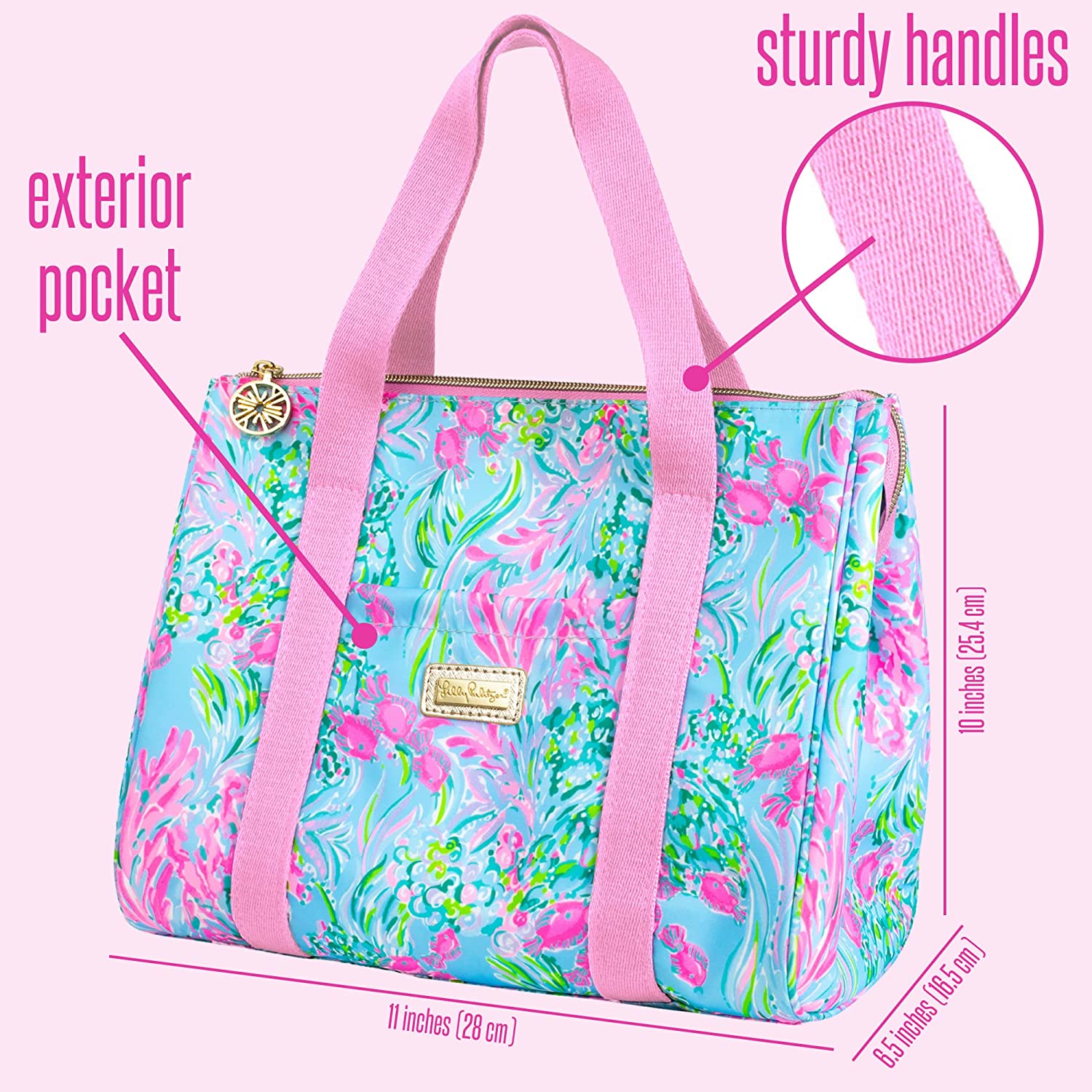Lilly Pulitzer Thermal Insulated Lunch Cooler Large Capacity. Women-s Lunch Bag with Storage Pocket and Shoulder Straps. Best Fishes