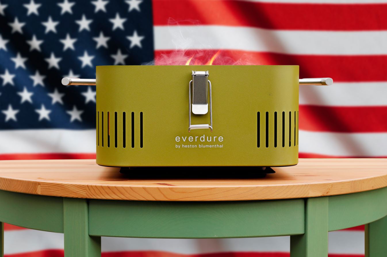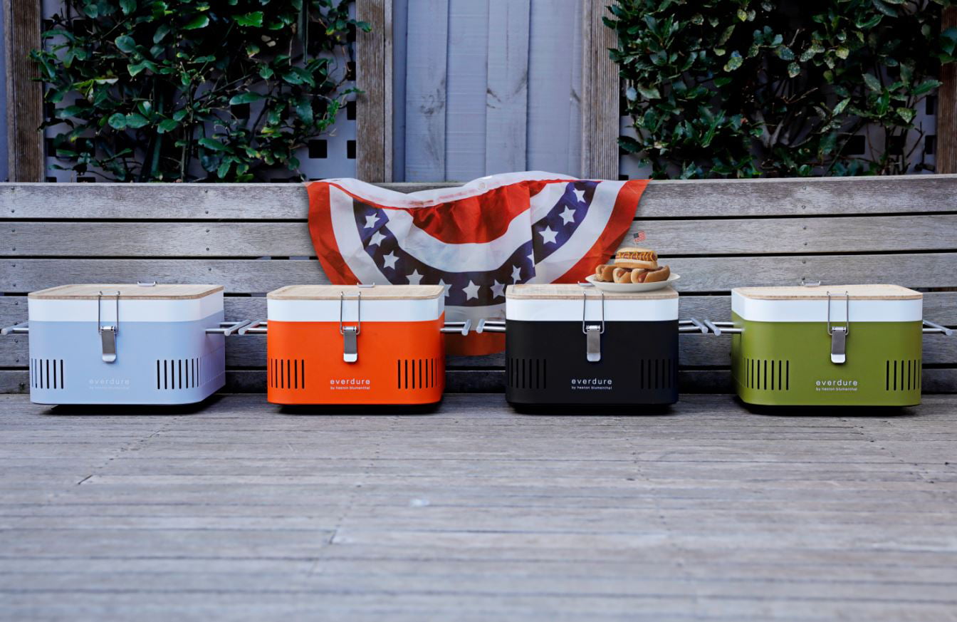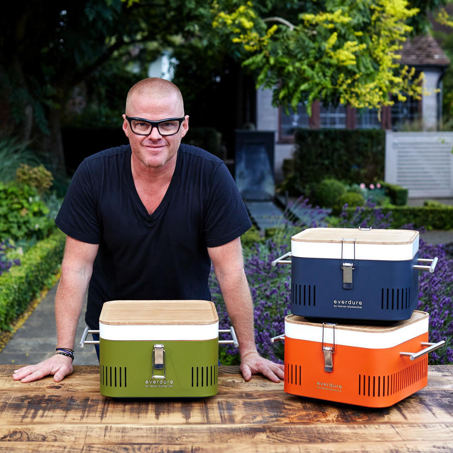 Everdure CUBE Charcoal Grill with Cool Touch Handles. Storage Container & Bamboo Serving Board