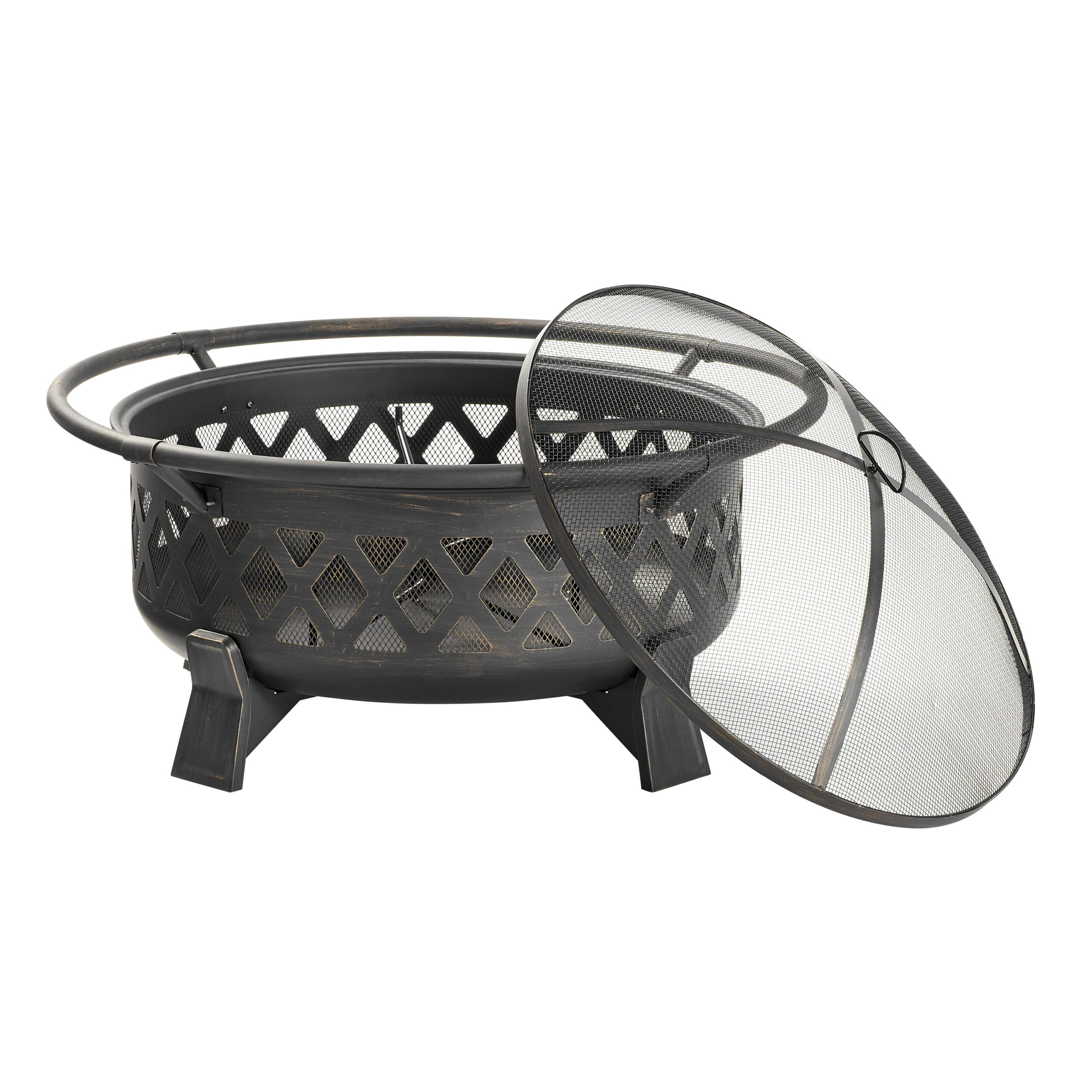 Better Homes & Gardens 35″ Round Lattice Wood Burning Fire Pit with Cover. Antique Bronze