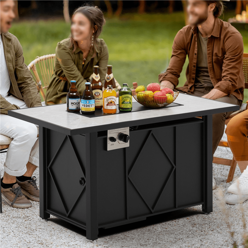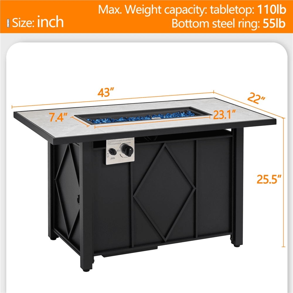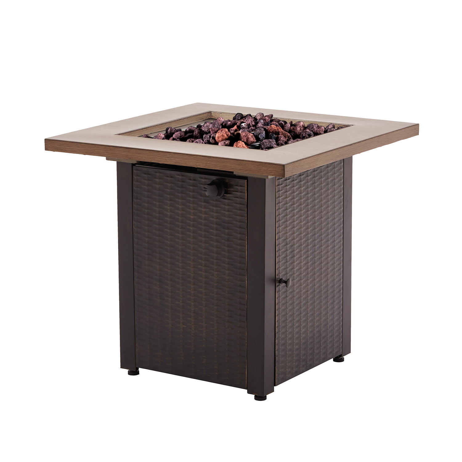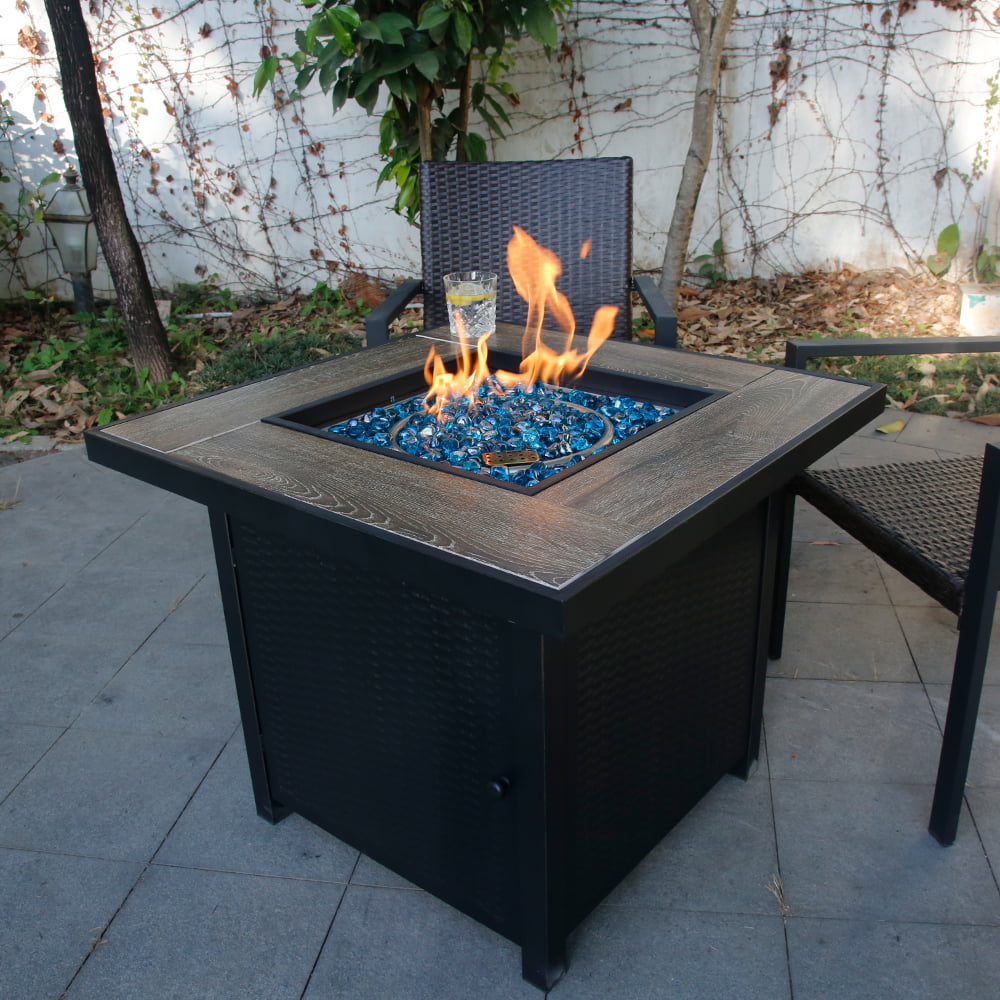 Mainstays Laurel 28″ Square 48.000 BTU Propane Gas Fire Pit Table with Lava Rocks. Metal Lid and Protective Cover