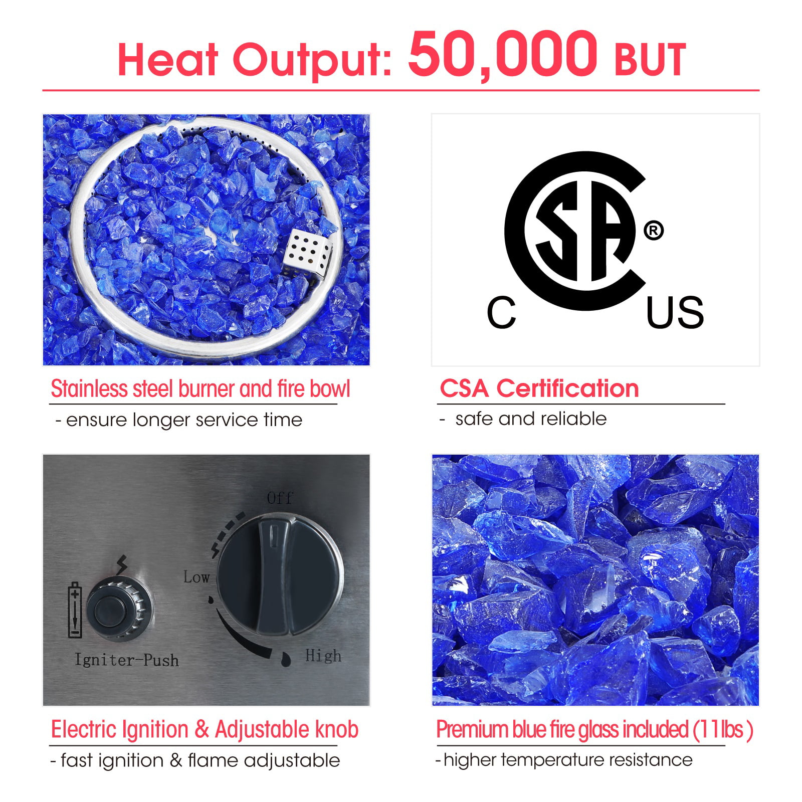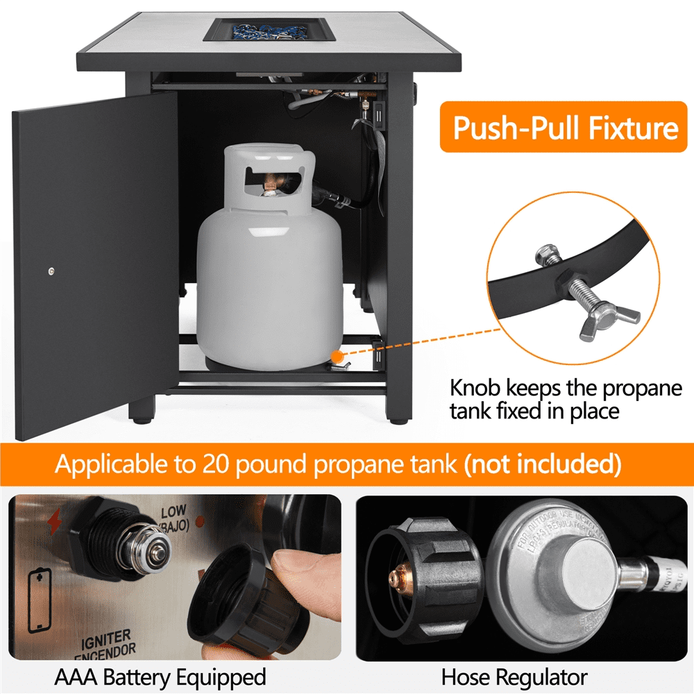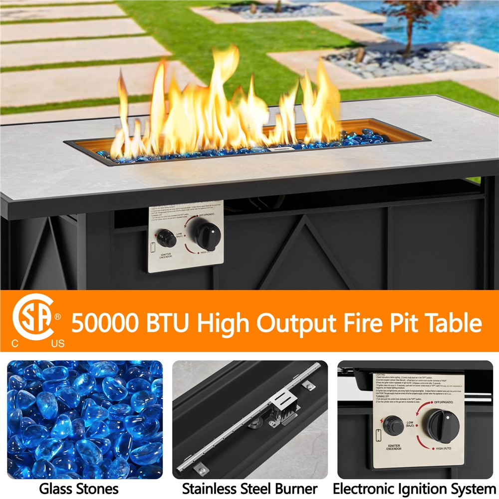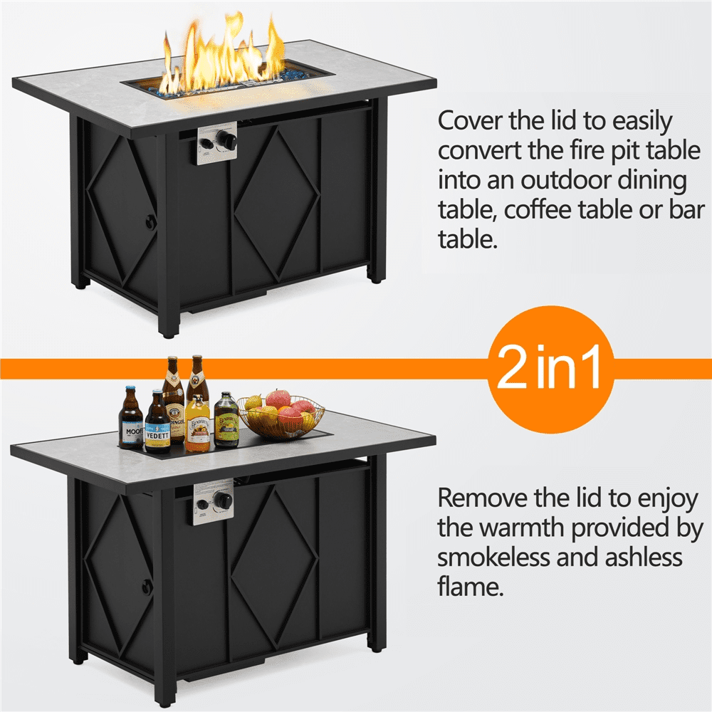 MF Studio 28” 50000 BTU Propane Gas Fire Pit Table with Lid and Blue Fire Glass Black