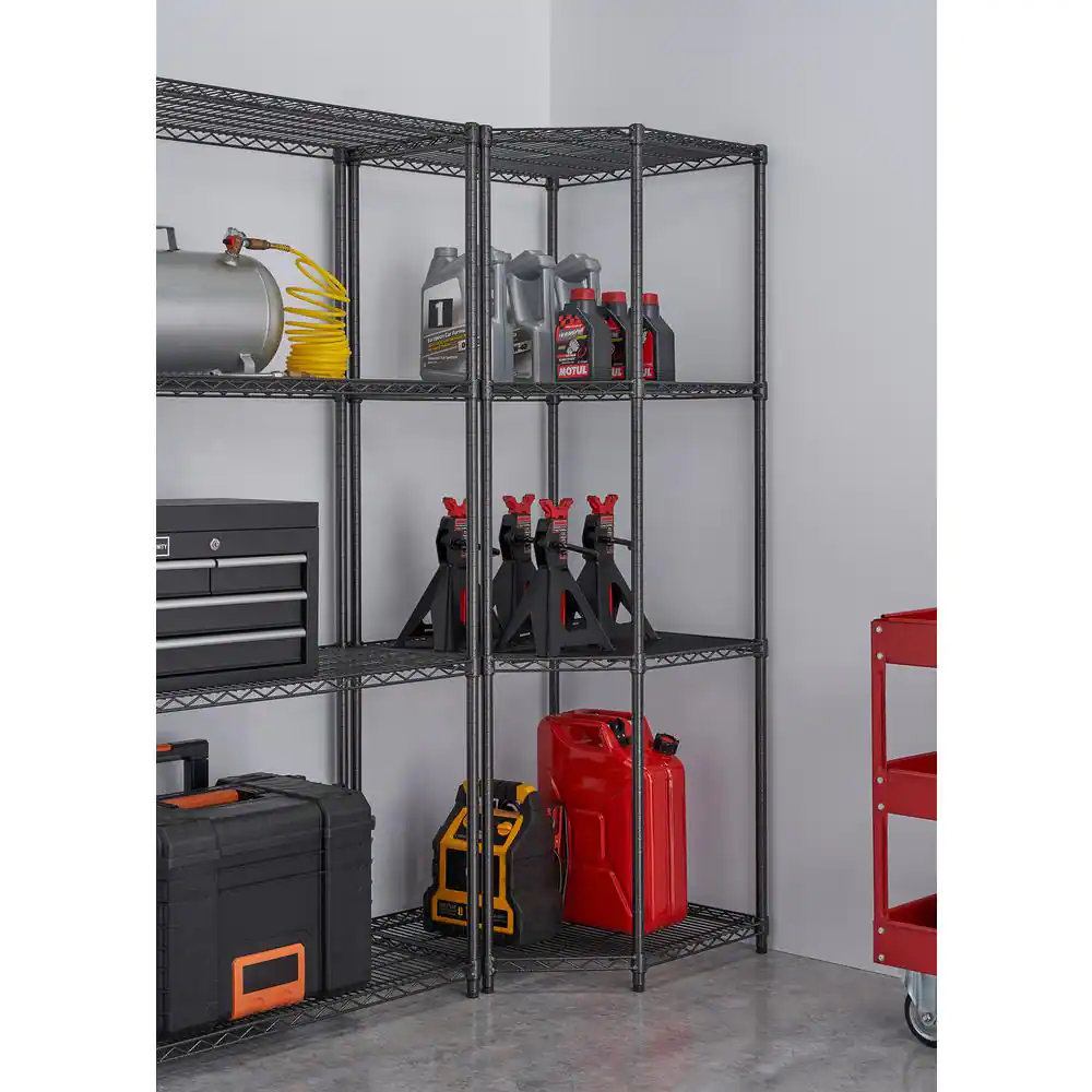 TRINITY TBFPBA-0927 PRO Black 4-Tier Corner Steel Wire Garage Storage Shelving Unit (27 in. W x 72 in. H x 18 in. D)