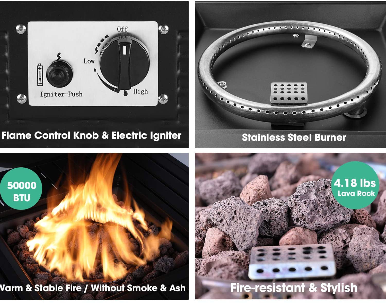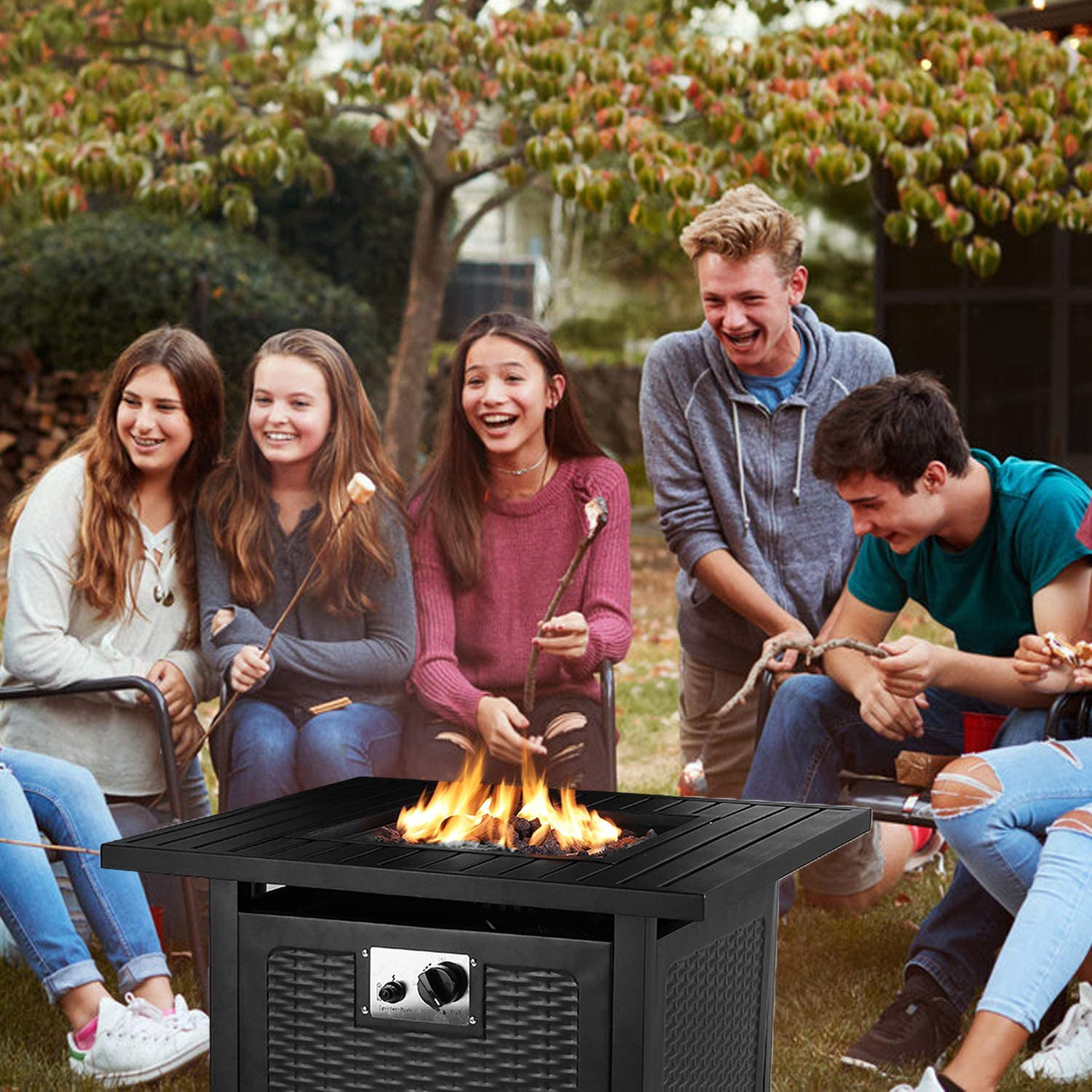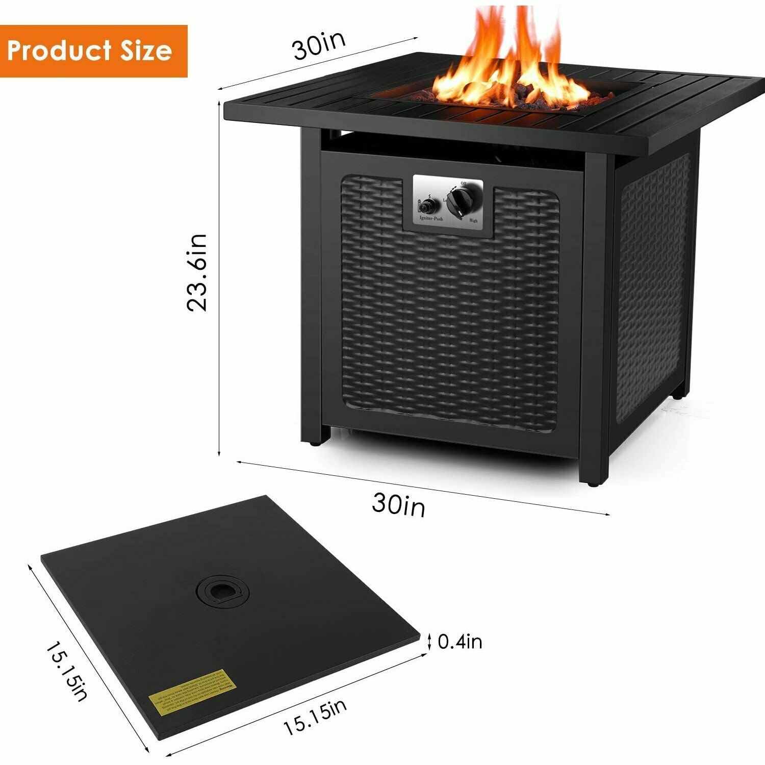 GARTIO 30″ Square 50000 BTU Propane Fire Pit Table with Lava Rocks for Outdoor Patio Yard