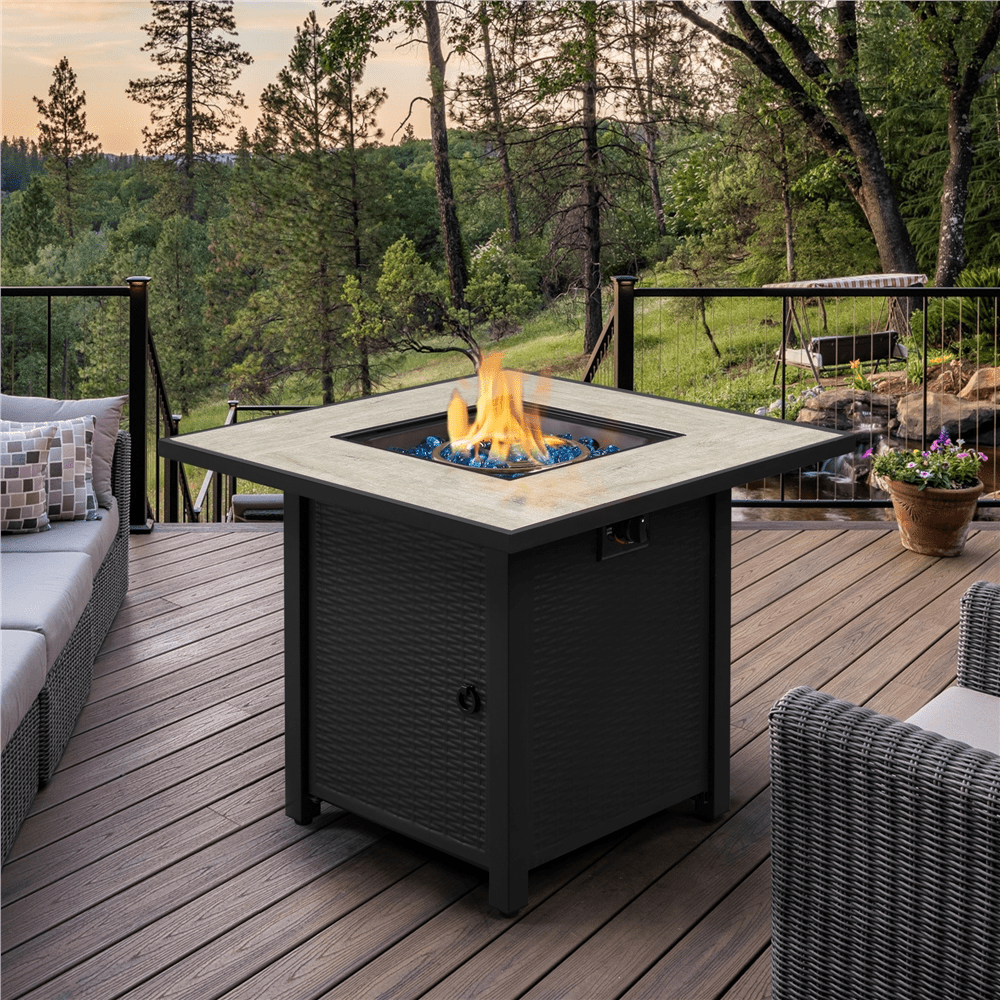 Yaheetech 30” Outdoor Propane Fire Pit Table 50.000 BTU Square Gas Fire Pit with Ceramic Tabletop. Black