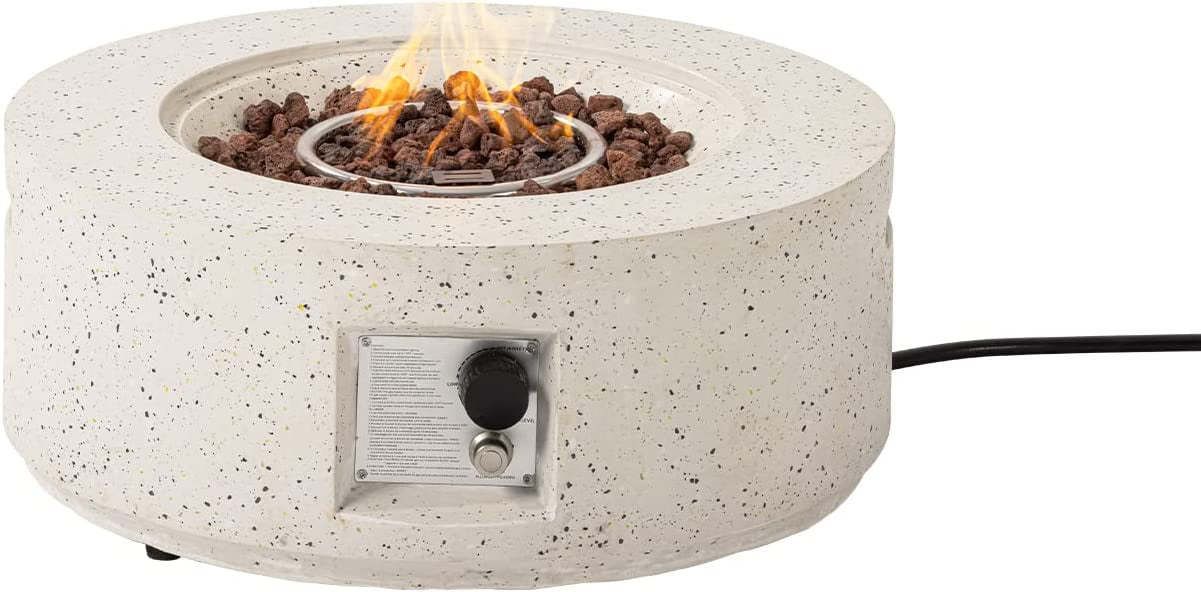 COSIEST Outdoor 28-inch Round Propane Fire Pit Table. 40.000 BTU Concrete Fire Pit