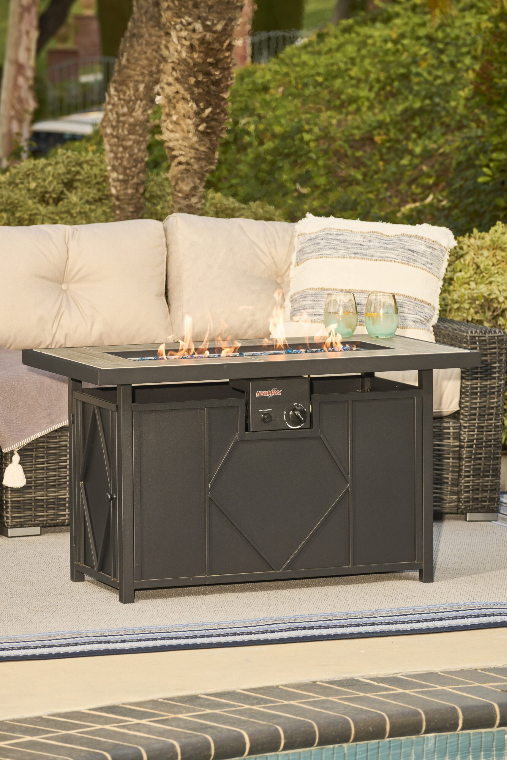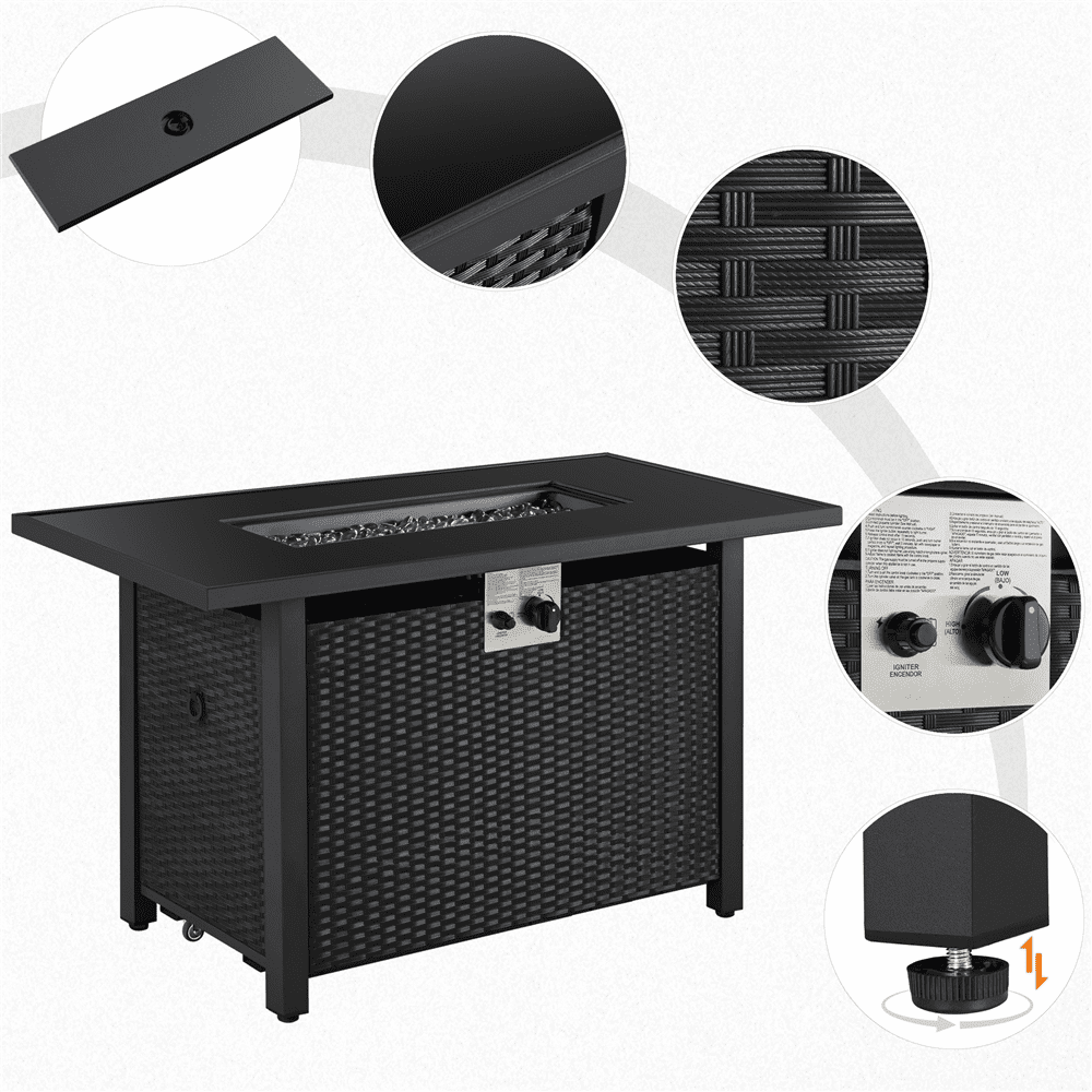 HEATMAXX 42 in. 60.000BTU Fire Pit Propane Gas Fire Pit Table Rectangular Tabletop