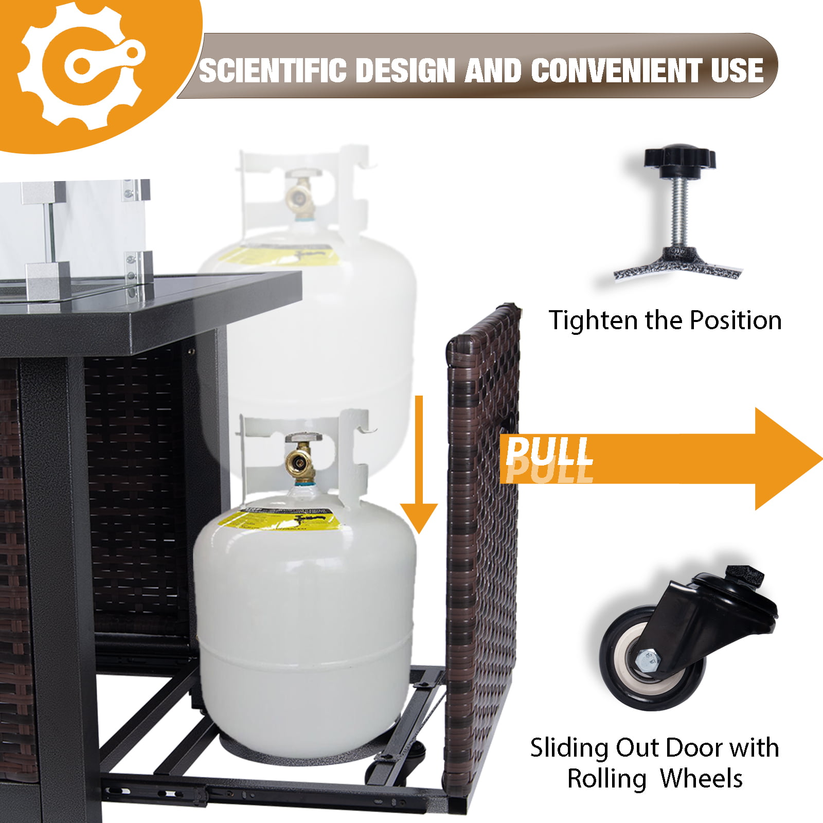 Polar Aurora 44inch Outdoor Propane Fire Pit Table. 50.000 BTU Auto-Ignition Wicker Rattan Patio Gas Fire Pit for Outside Garden/Patio