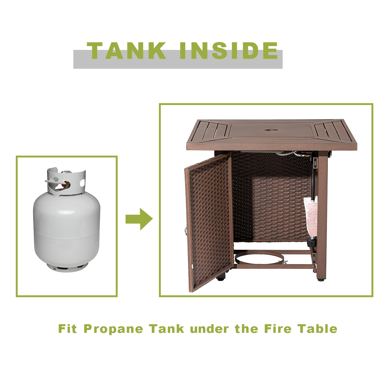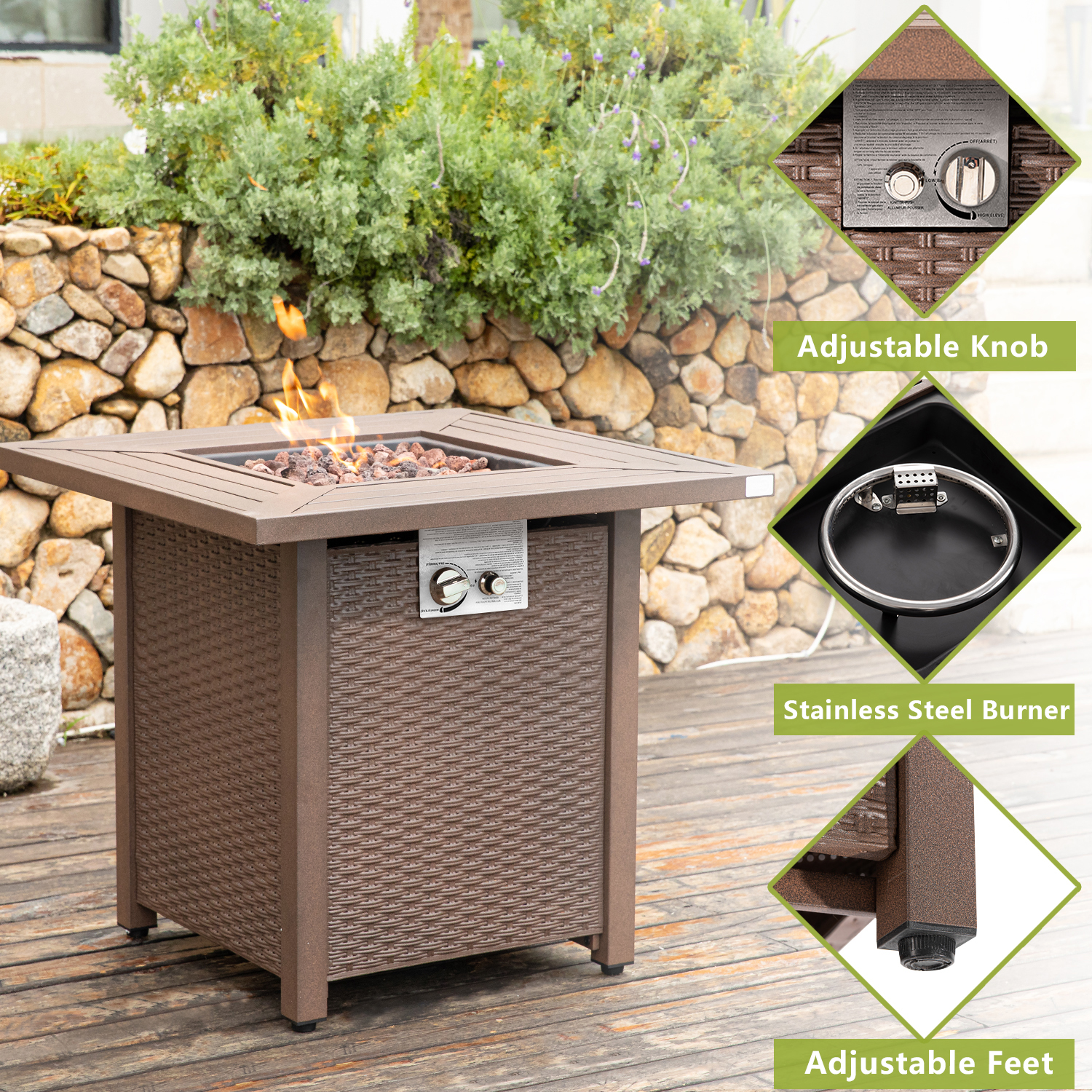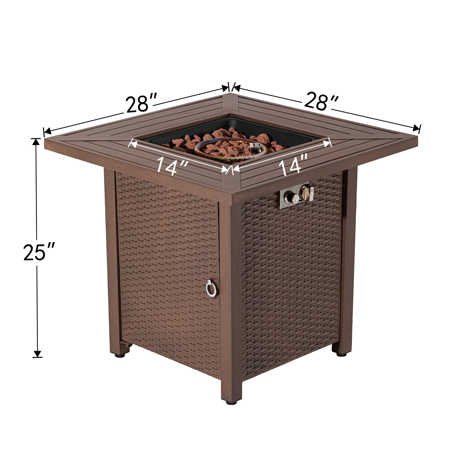 COSIEST Outdoor Propane Fire Table. 28-inch Brown Square Fire Pit. 40000 BTU