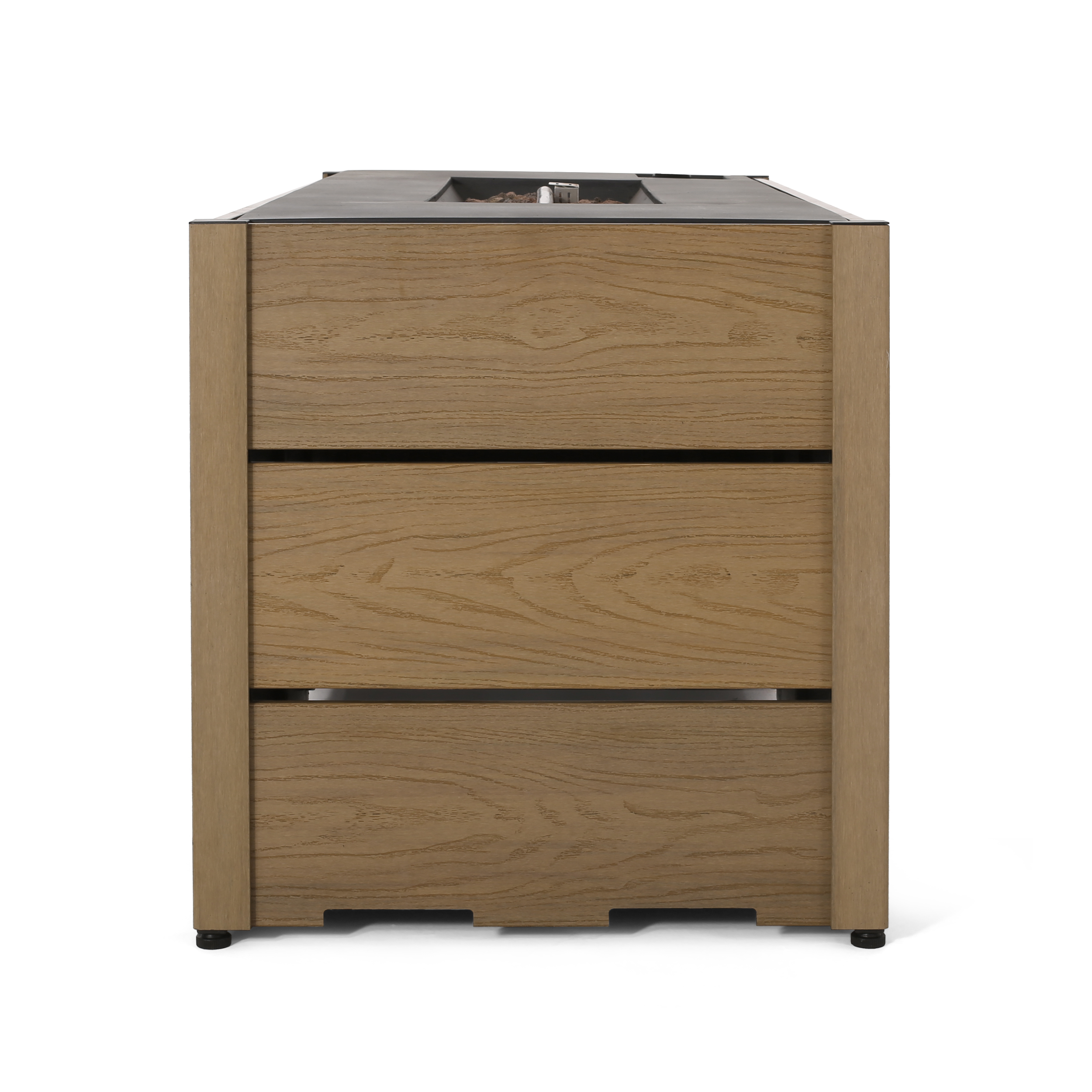 Noble House Camak Wood Resin Outdoor 55″ Rectangular Fire Pit - 40.000 BTU. Brown