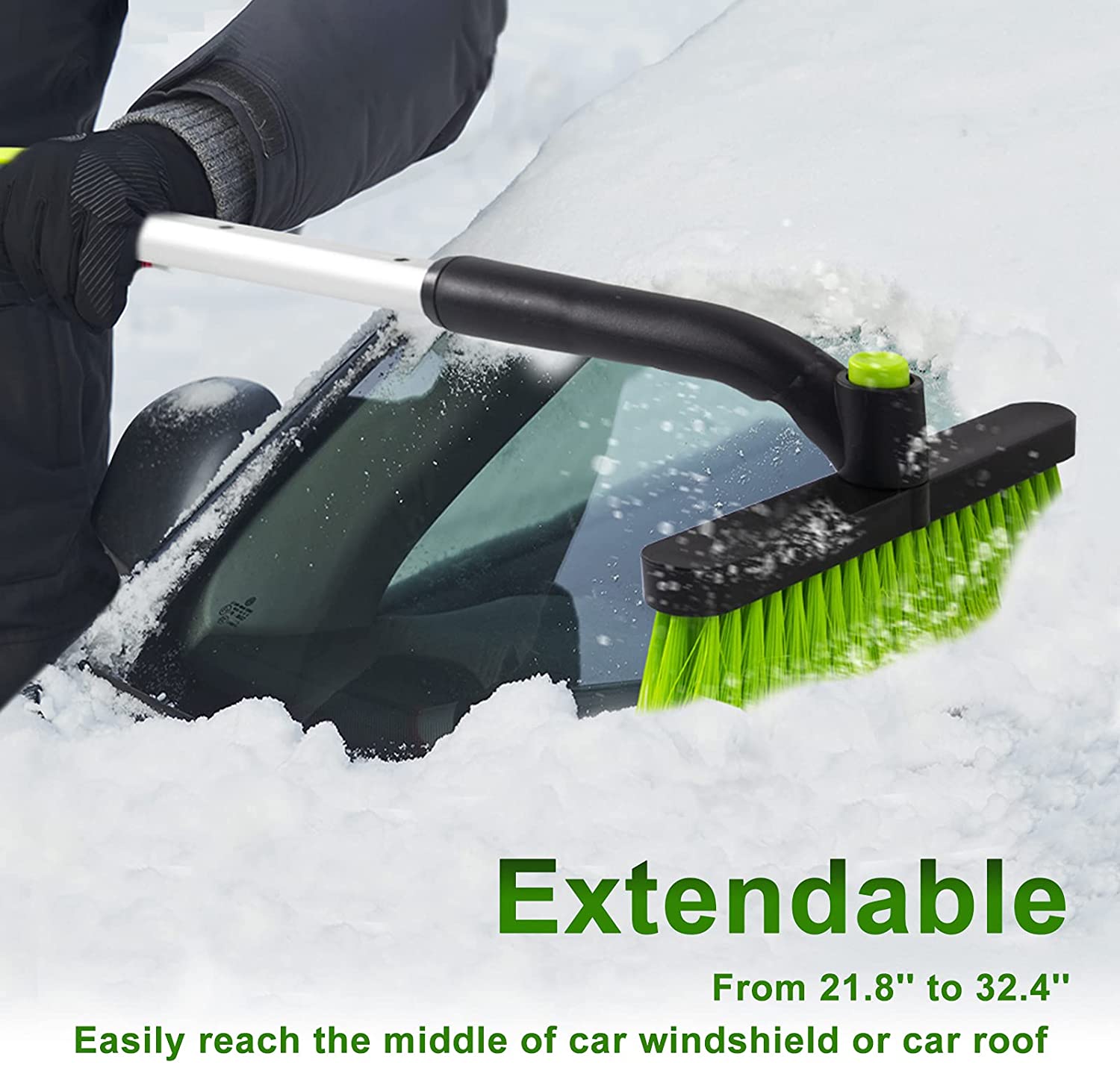 SEAAES Ice Scraper with Snow Brush for Car Windshield. Extendable Snow Brush with Foam Grip for Truck SUV Wehicle Windows