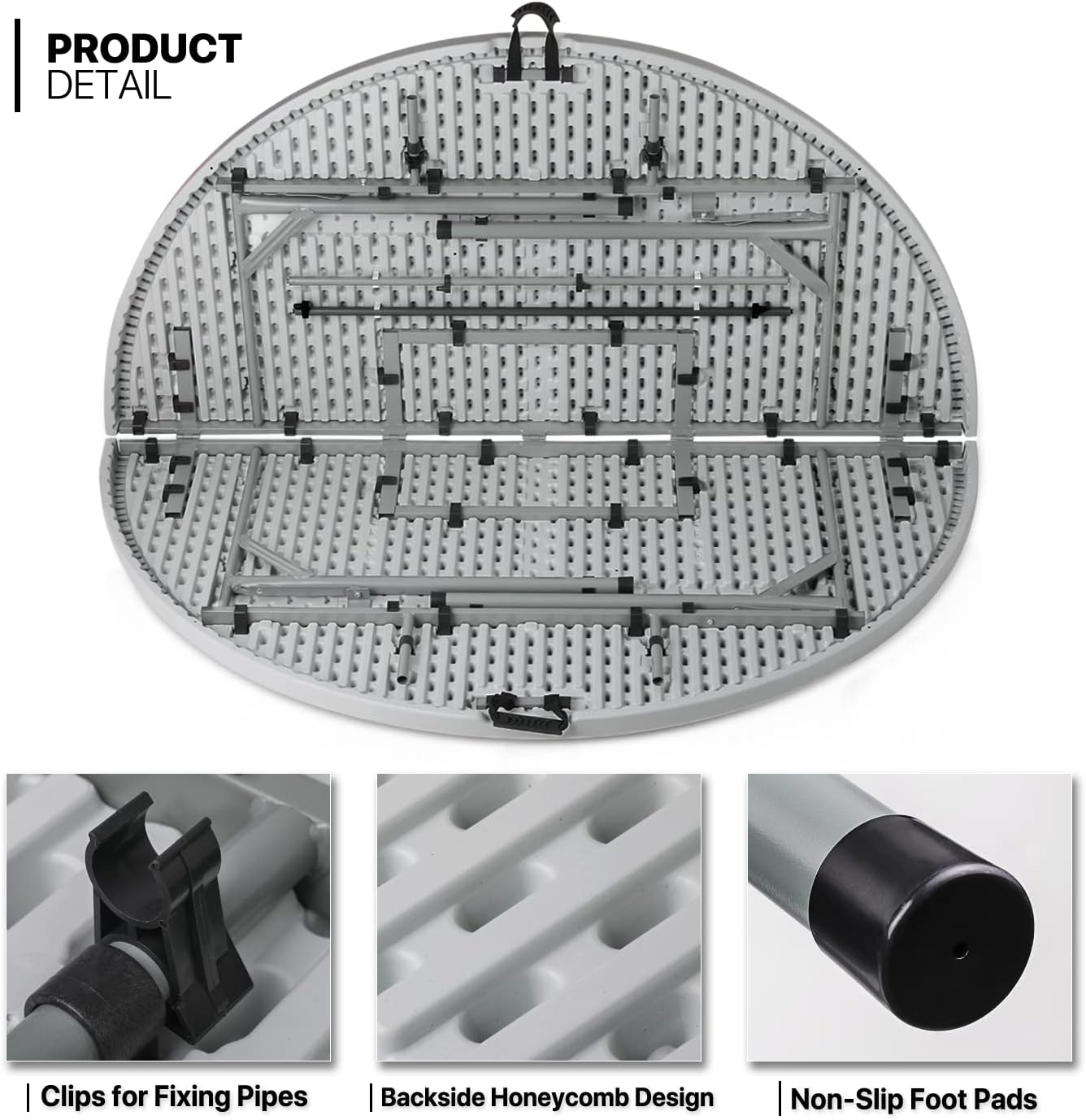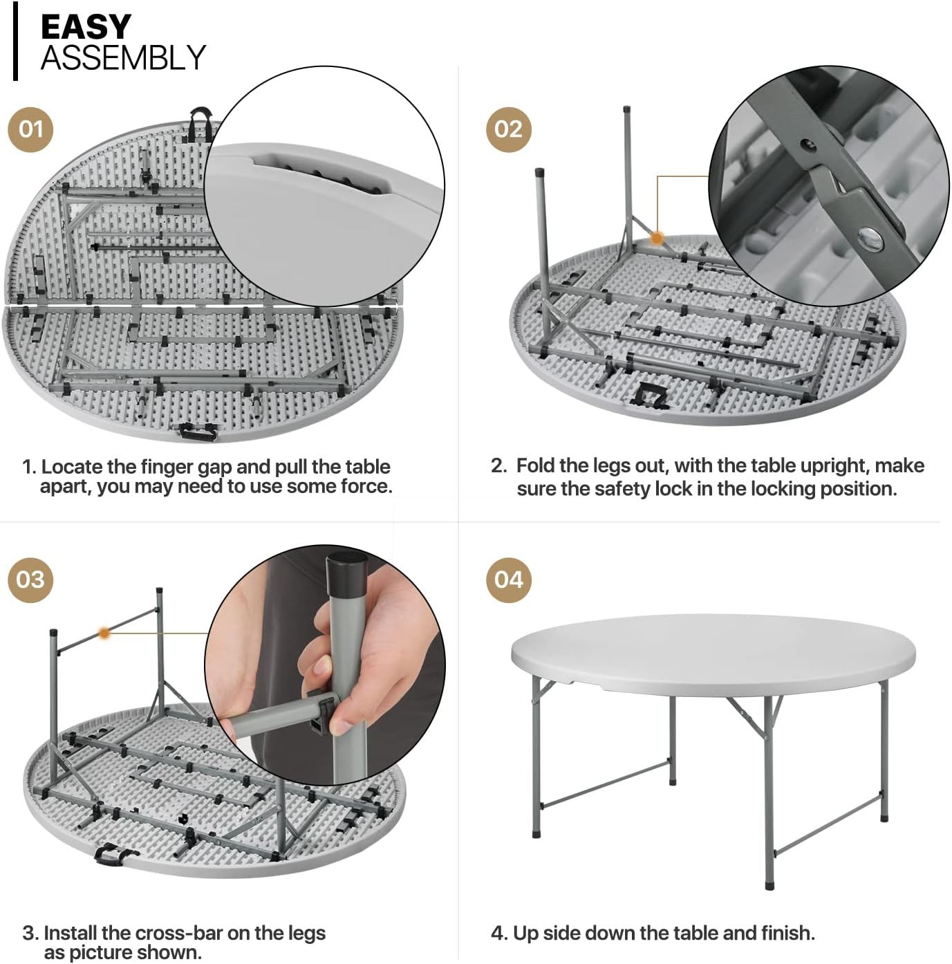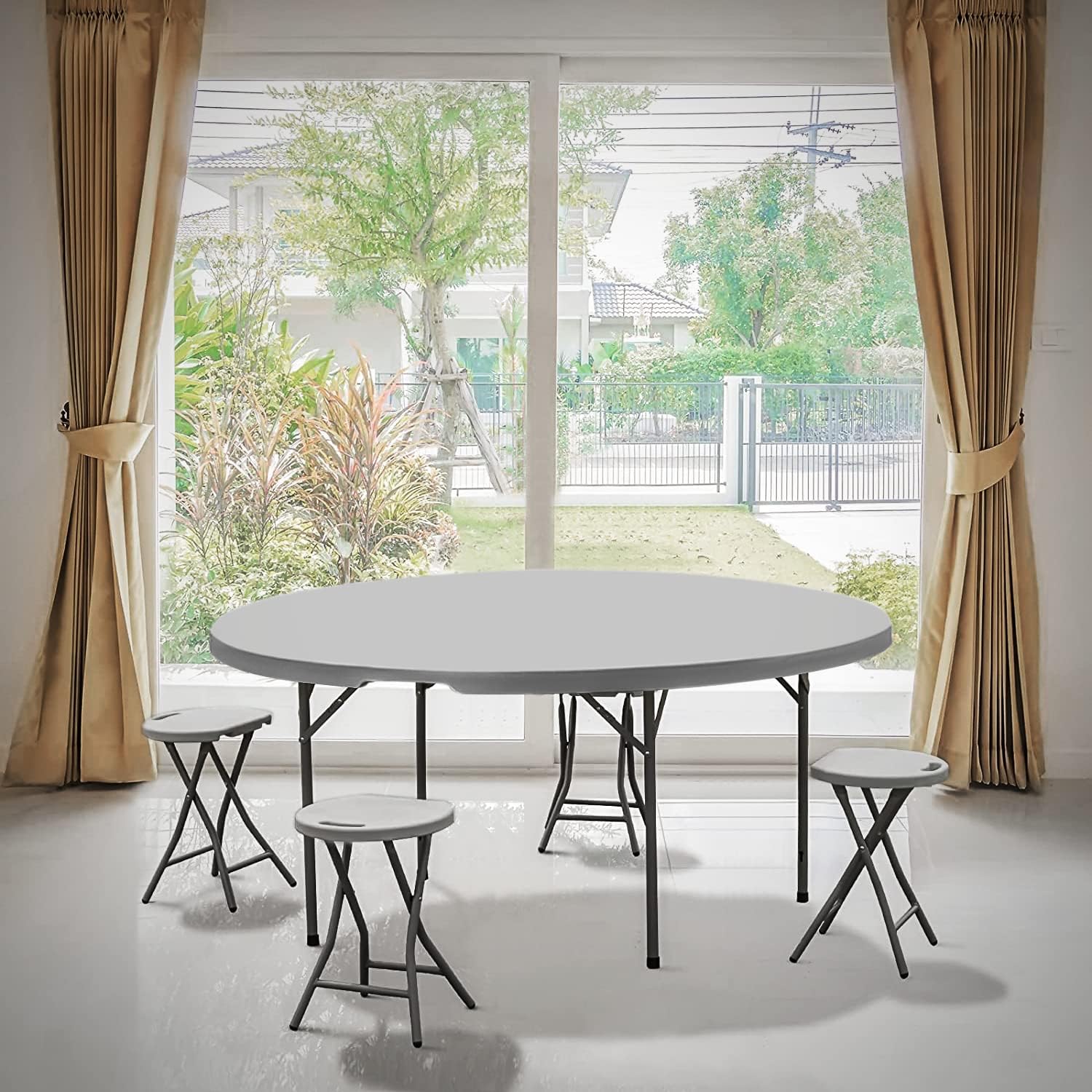 MoNiBloom 5Ft Folding Plastic Table. Heavy Duty Round Indoor Outdoor Tables for Kitchen Party Wedding Festival Event Poolside. Grey