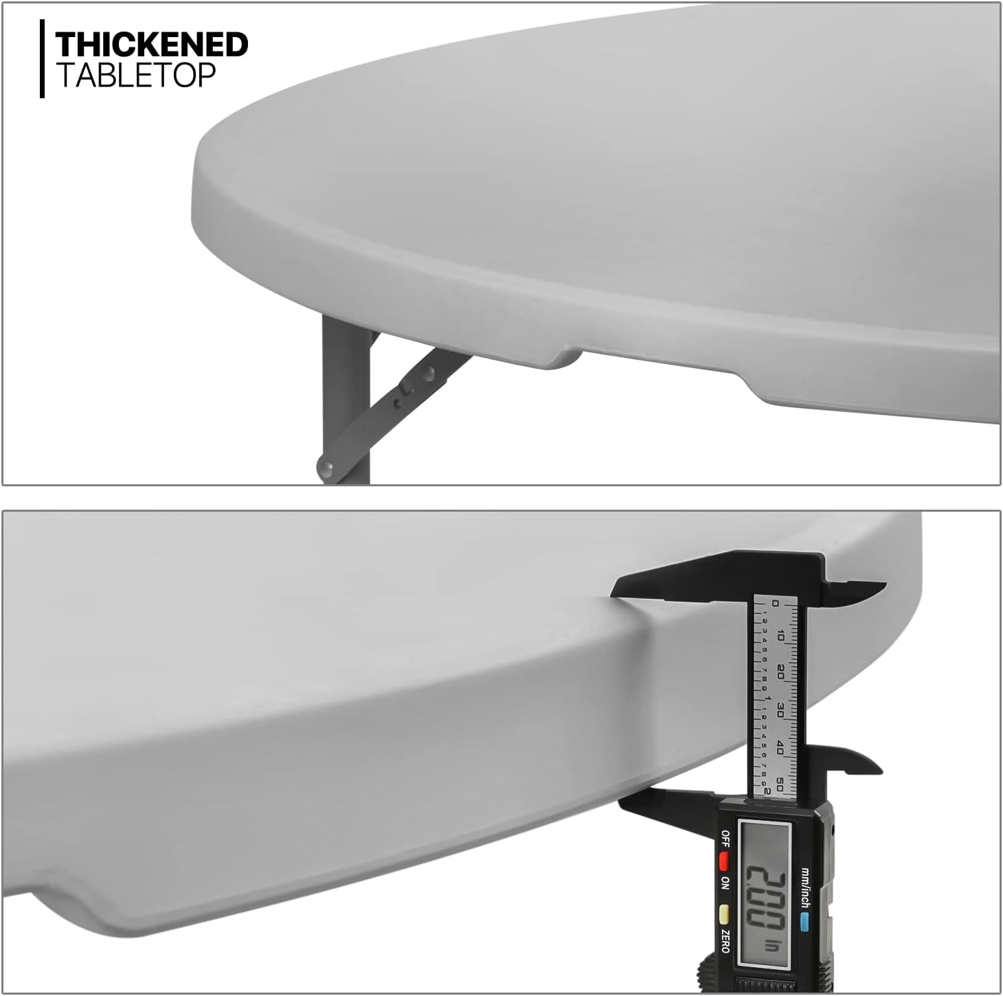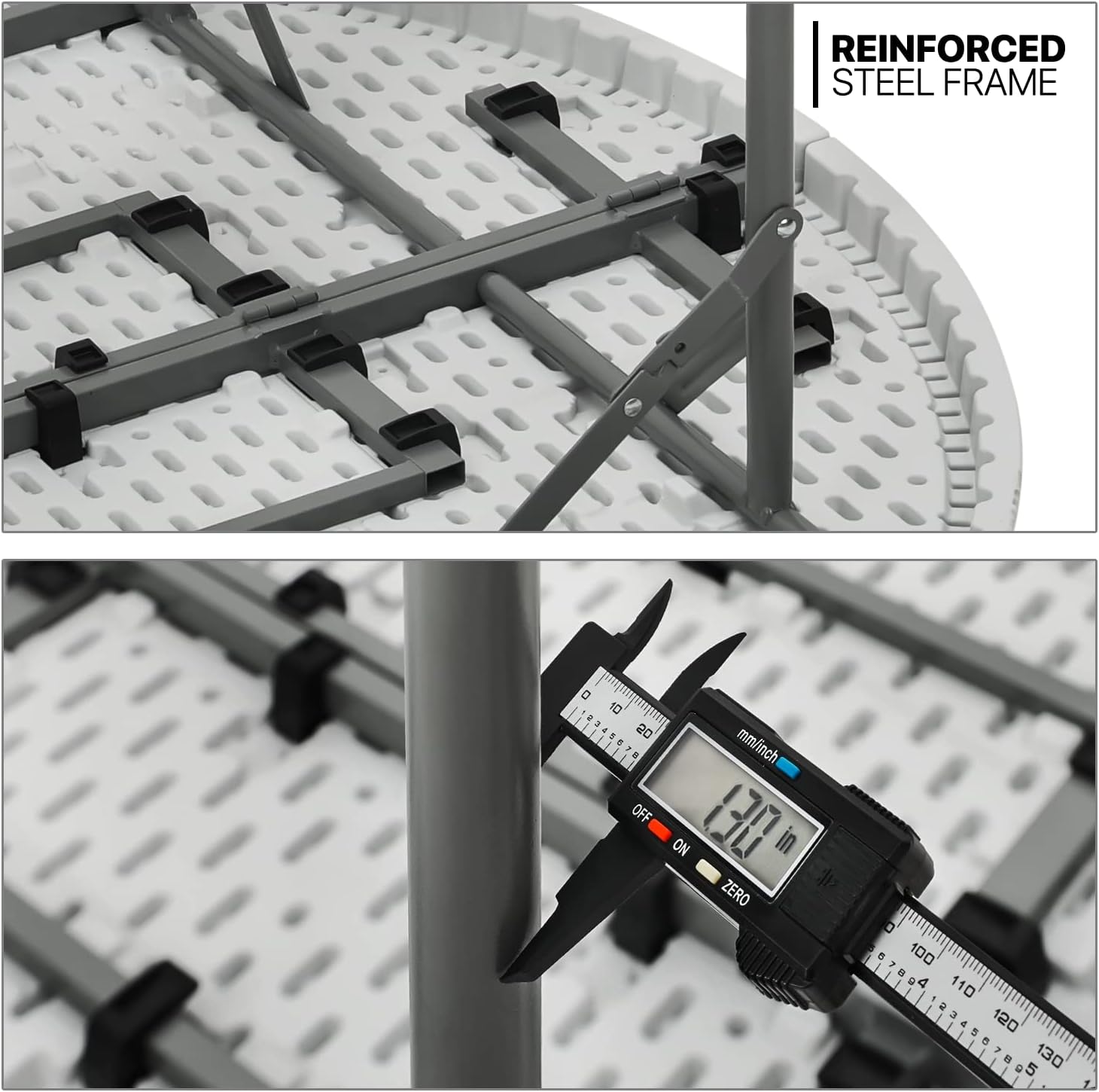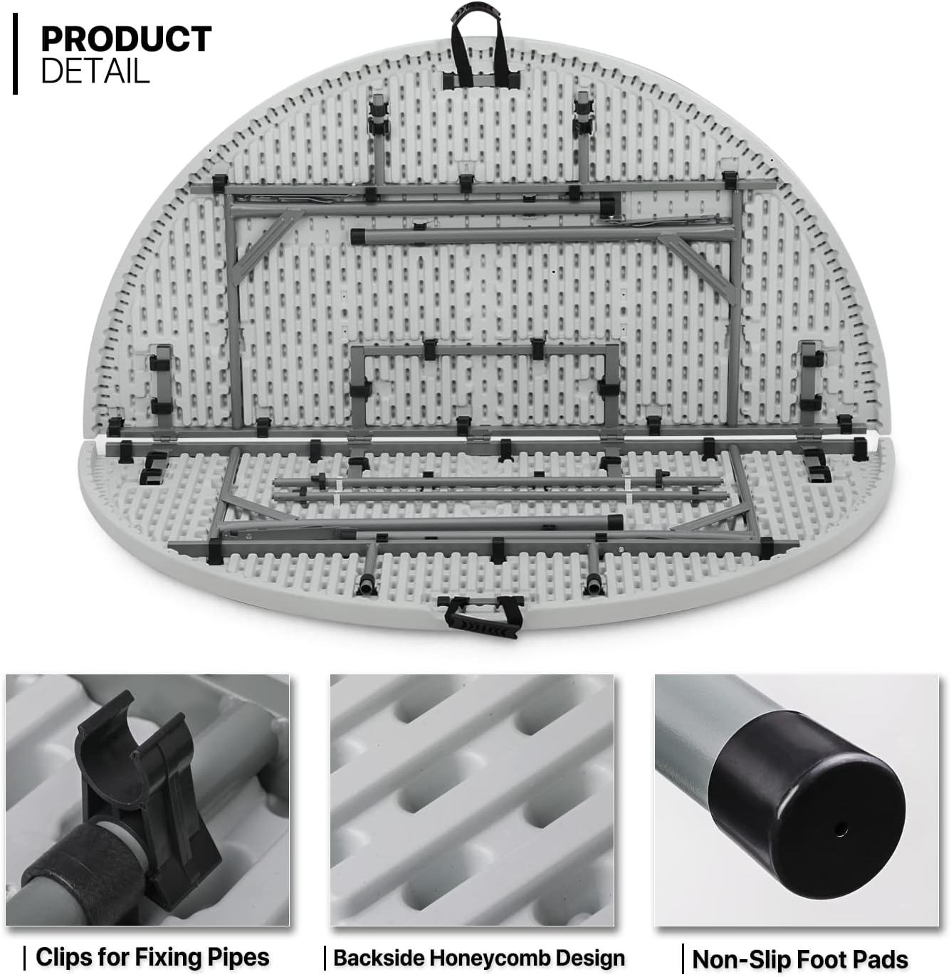 MoNiBloom 5Ft Folding Plastic Table. Heavy Duty Round Indoor Outdoor Tables for Kitchen Party Wedding Festival Event Poolside. Grey