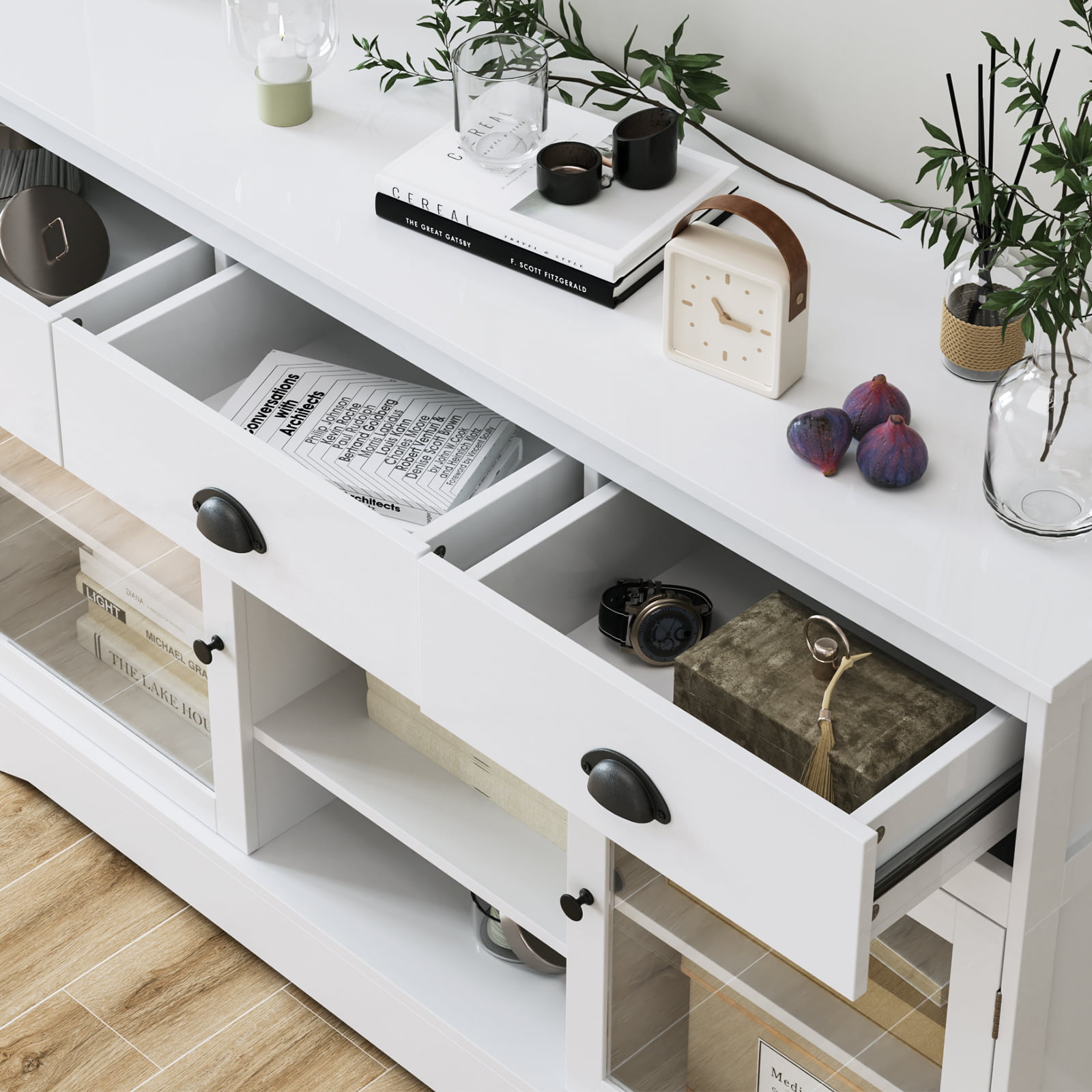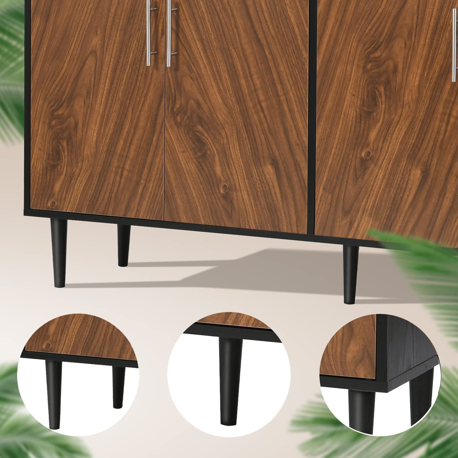Catrimown Sideboard Buffet Cabinet. Mid-Century Modern White Sideboard Storage Cabinet. Credenzas and Sideboard for Living Room. Black