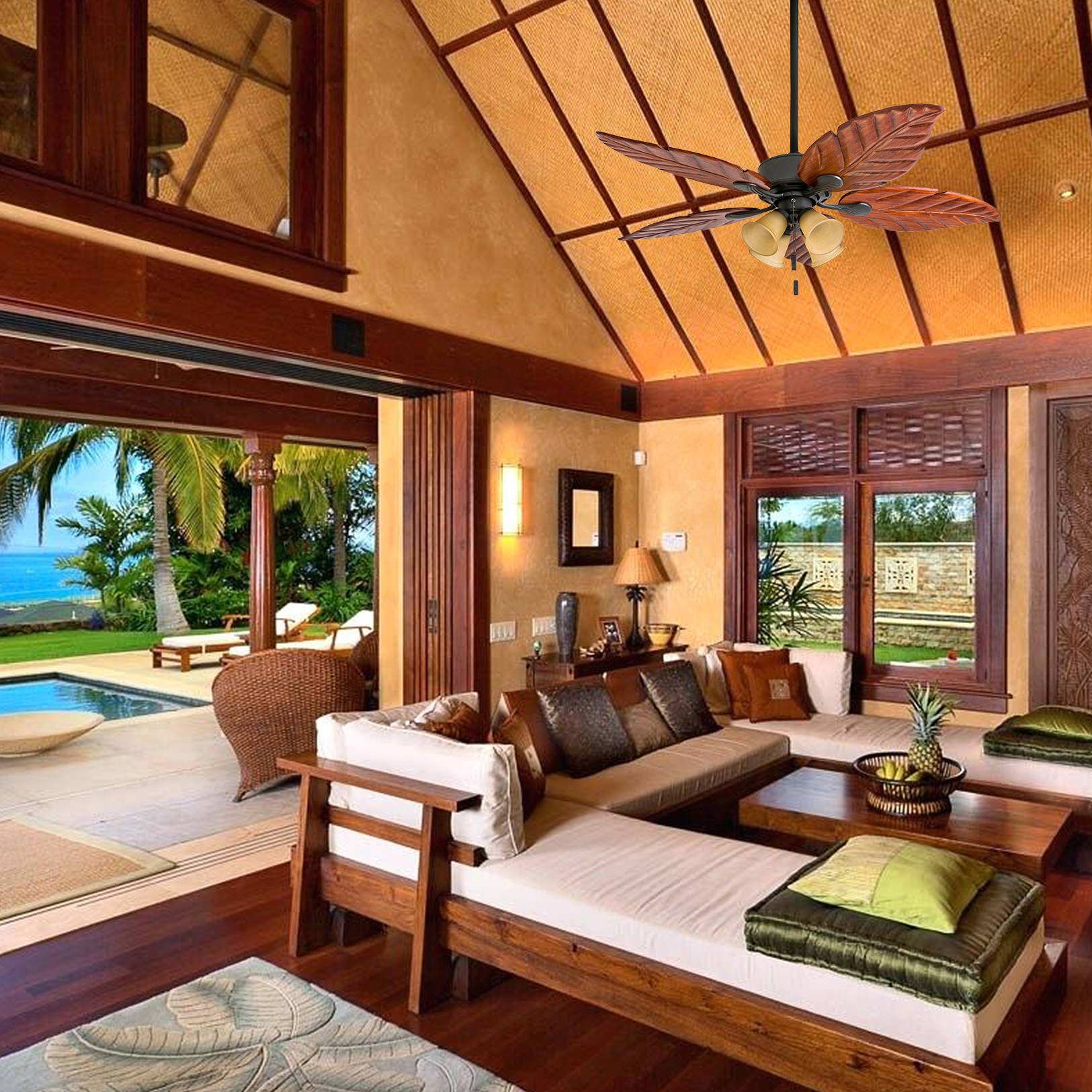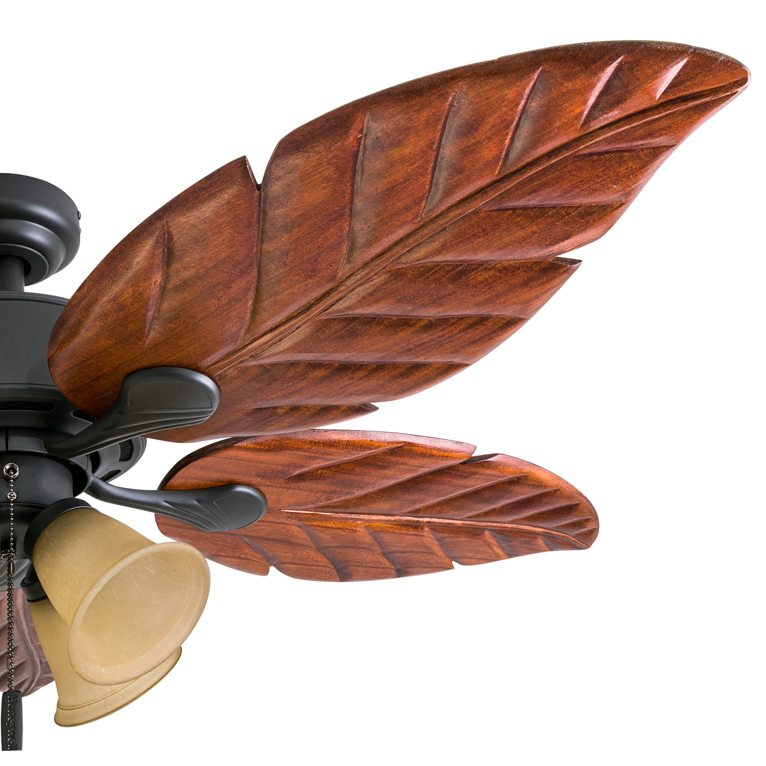 Honeywell Royal Palm 52″ Bronze Tropical LED Ceiling Fan with Light. Hand Carved Blades