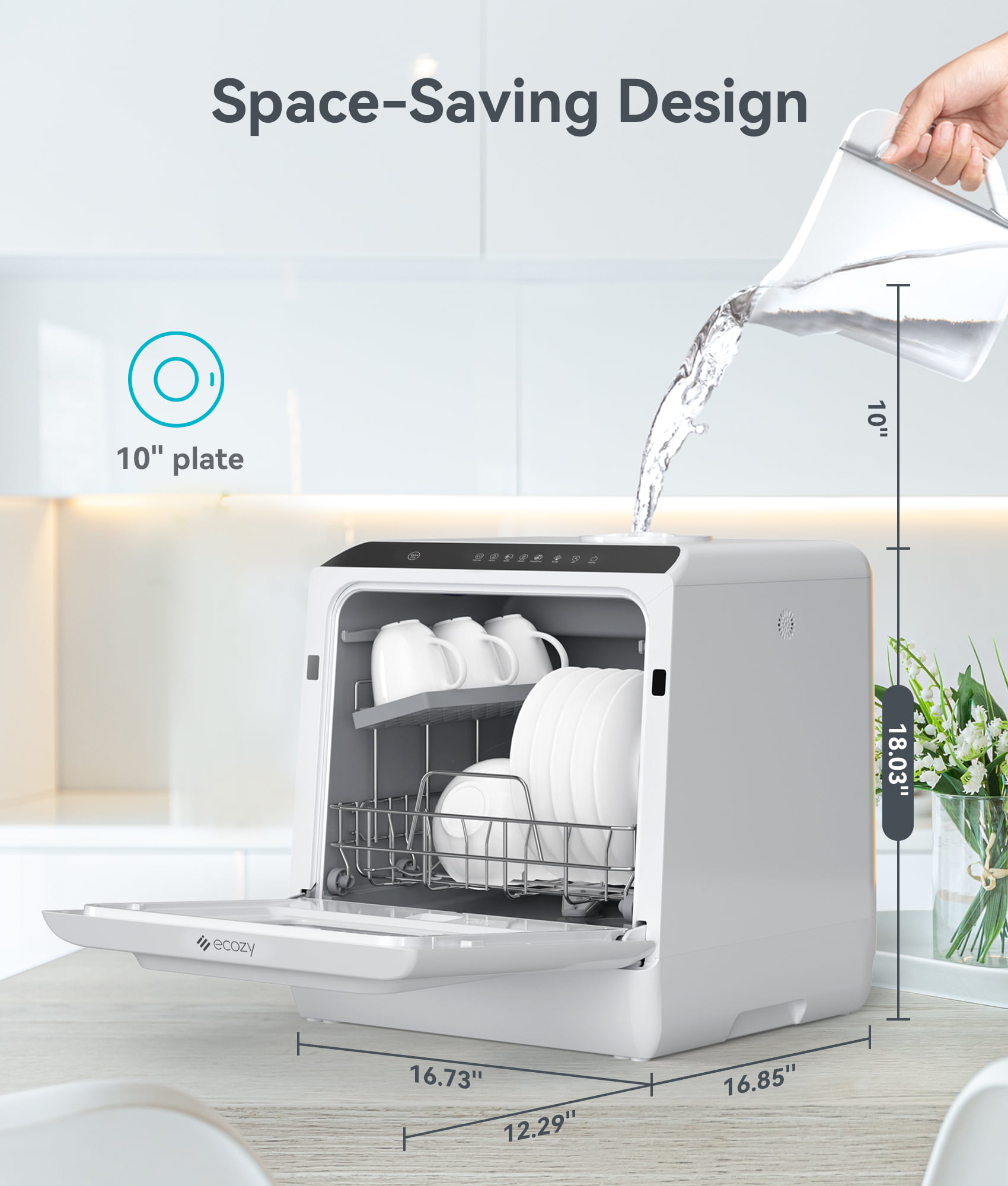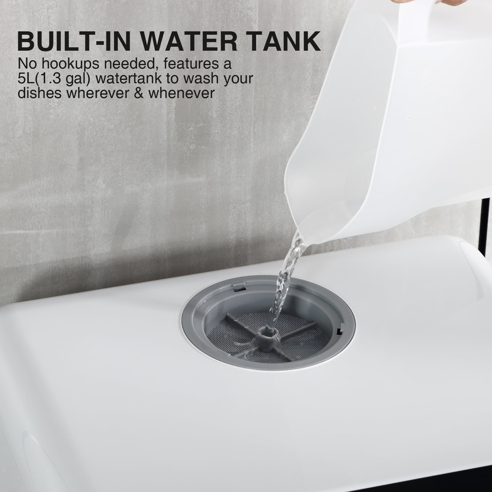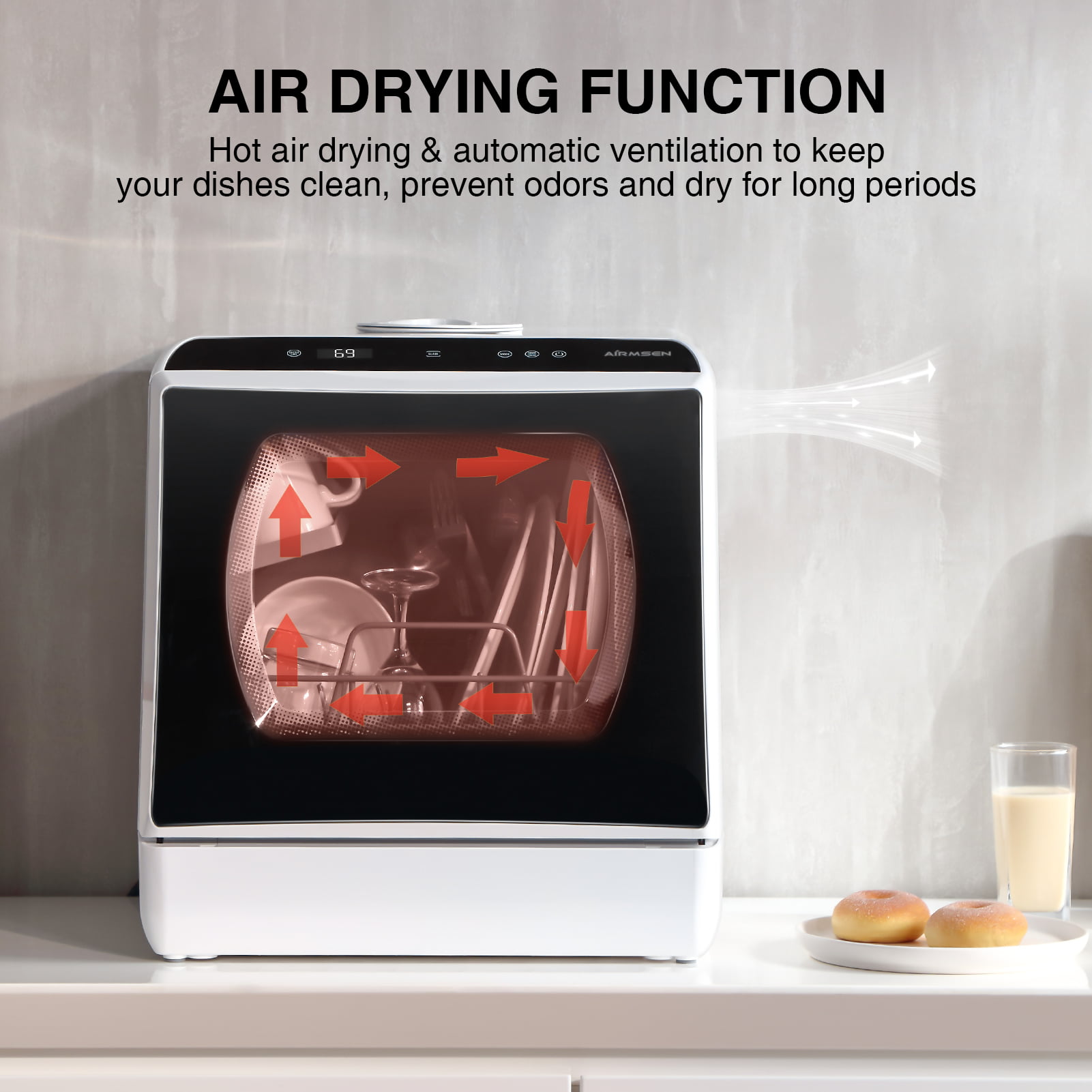 AIRMSEN AE-TDQR03 Portable Countertop Dishwasher with 5-Liter Built-in Water Tank and Air-Dry Function. 5 Washing Programs. White/Black