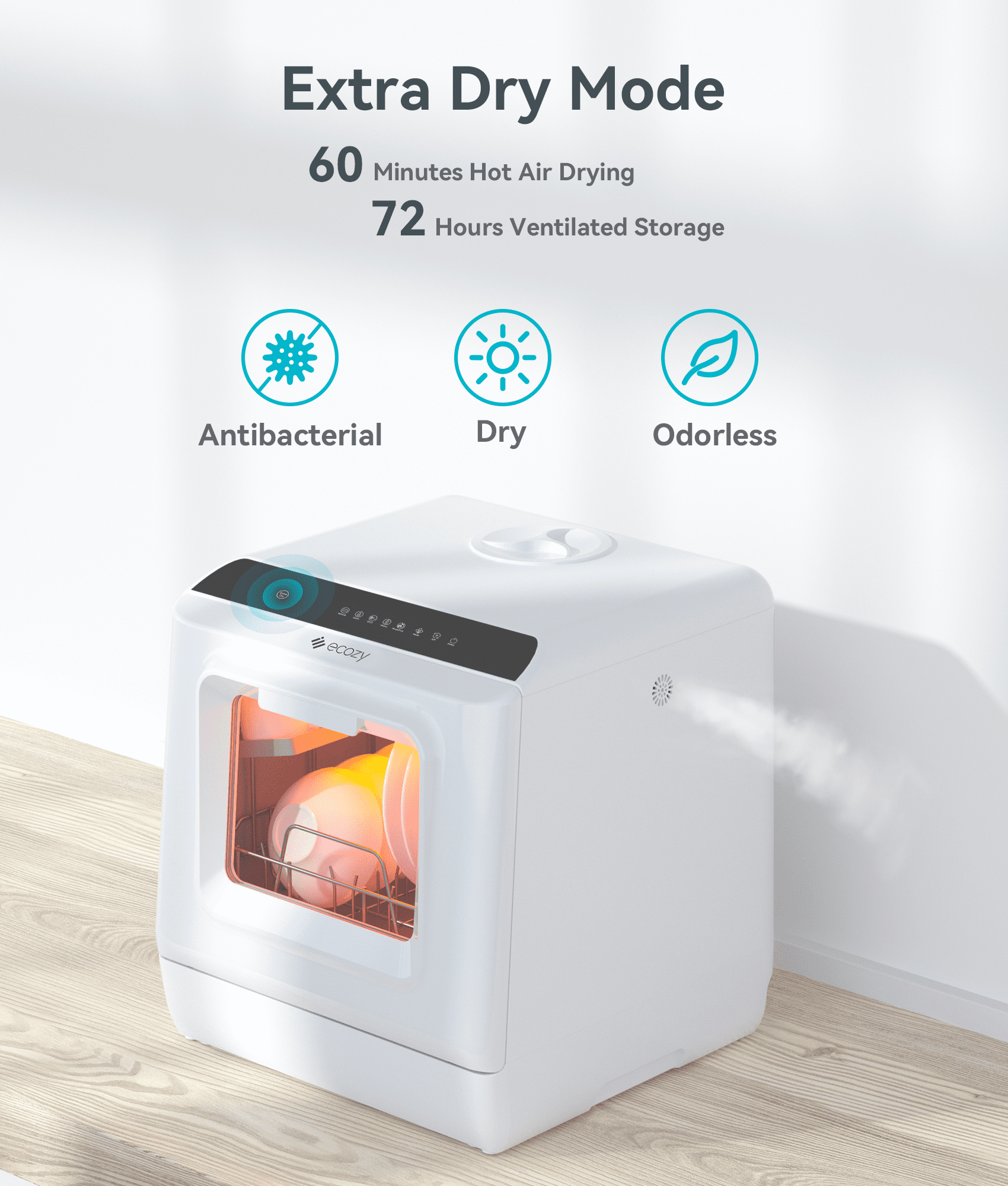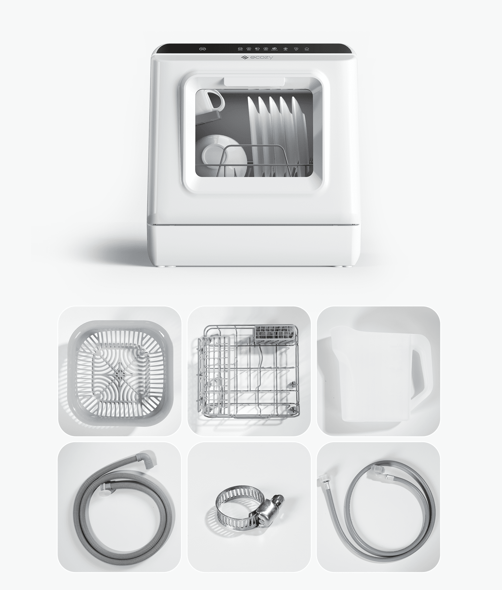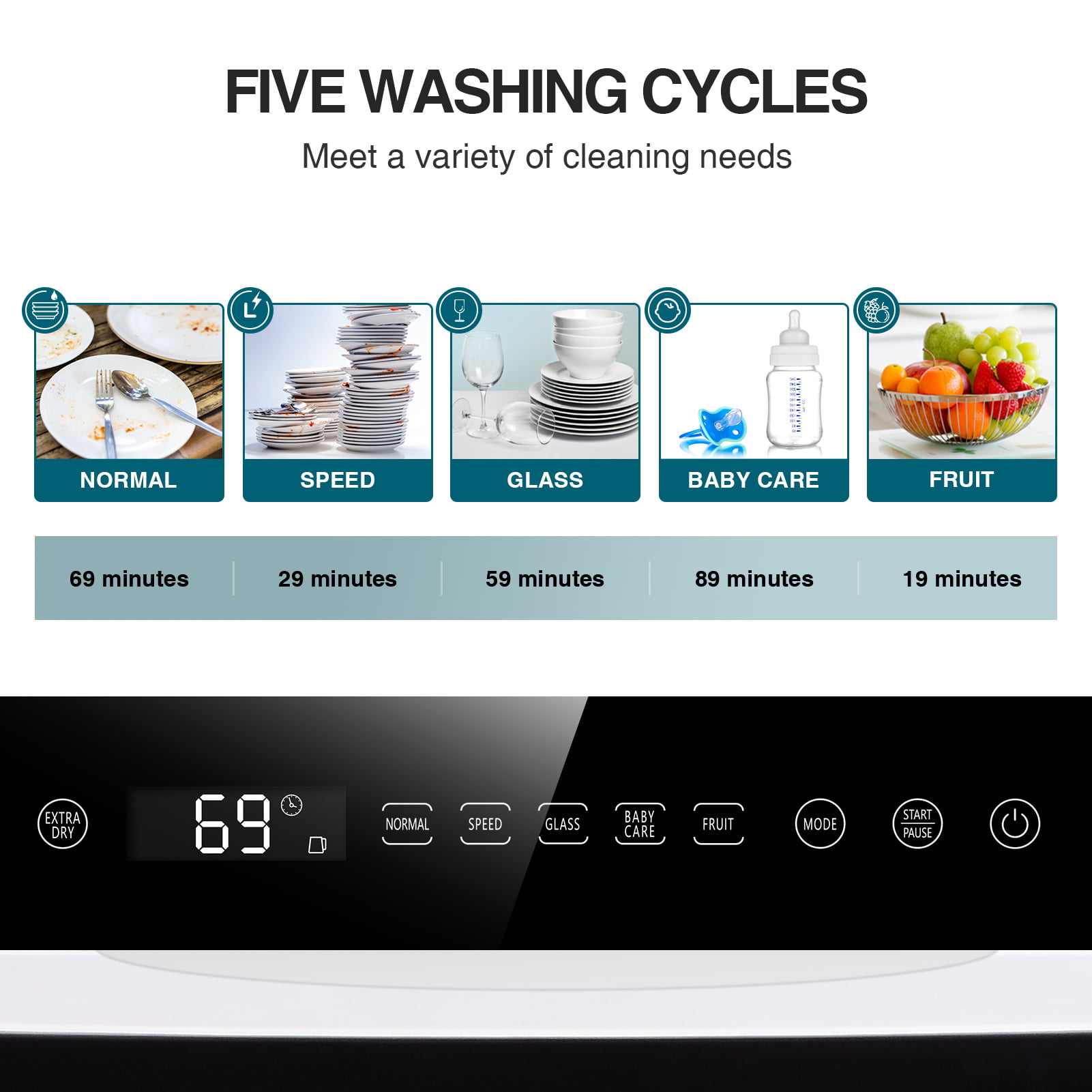 AIRMSEN AE-TDQR03 Portable Countertop Dishwasher with 5-Liter Built-in Water Tank and Air-Dry Function. 5 Washing Programs. White/Black