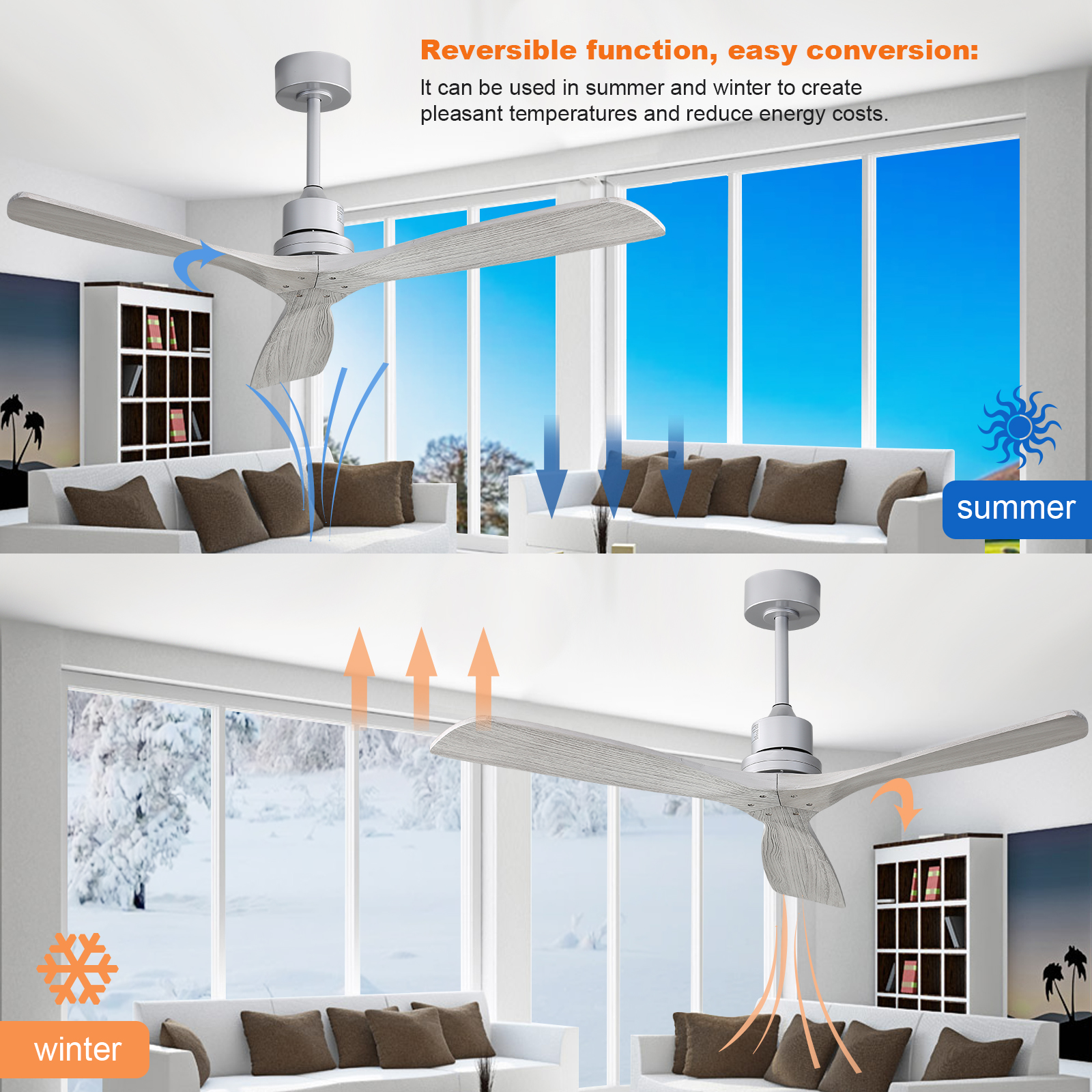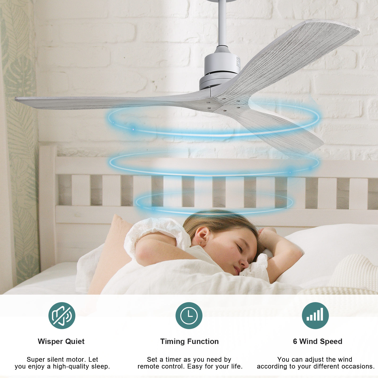 Sofucor 52” Ceiling Fan with Remote Control no Lights. 3 Blades Reverse Airflow. Silver