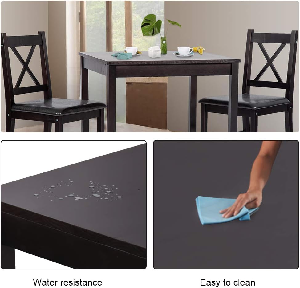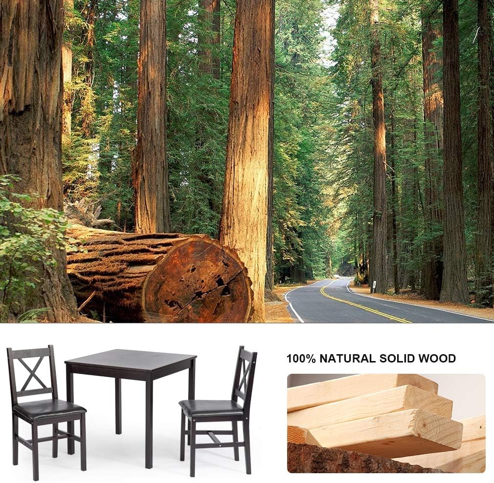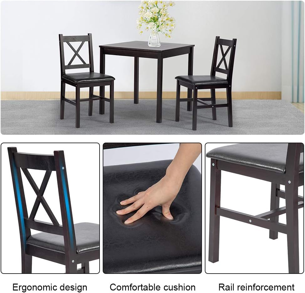 FDW Dining Kitchen Table Dining Set Wood 3 Piece Upholstered Grid Dining Room Table and Chairs for 2.Dark Brown