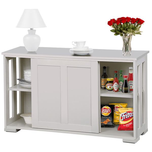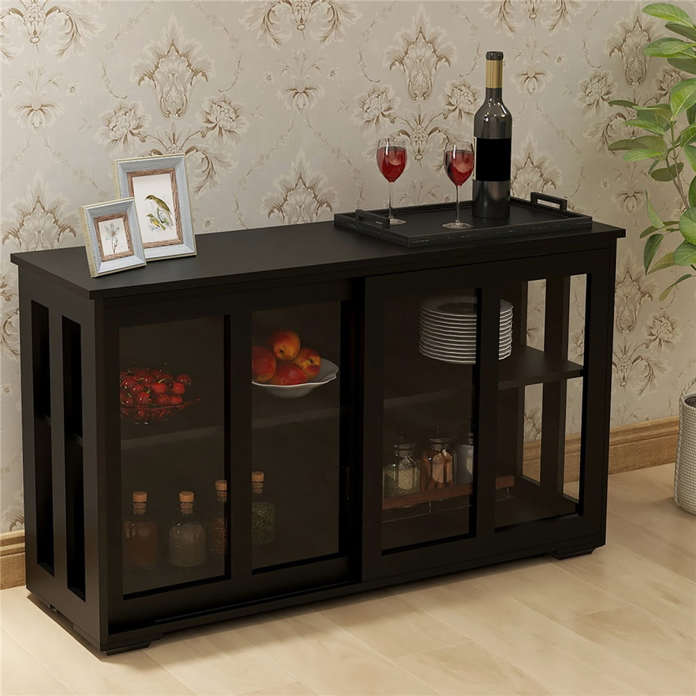 Visentor 42 Inch Kitchen Storage Cupboard. Dining Room Storage Cabinet with Glass Door. Sideboard Buffet Table. Black