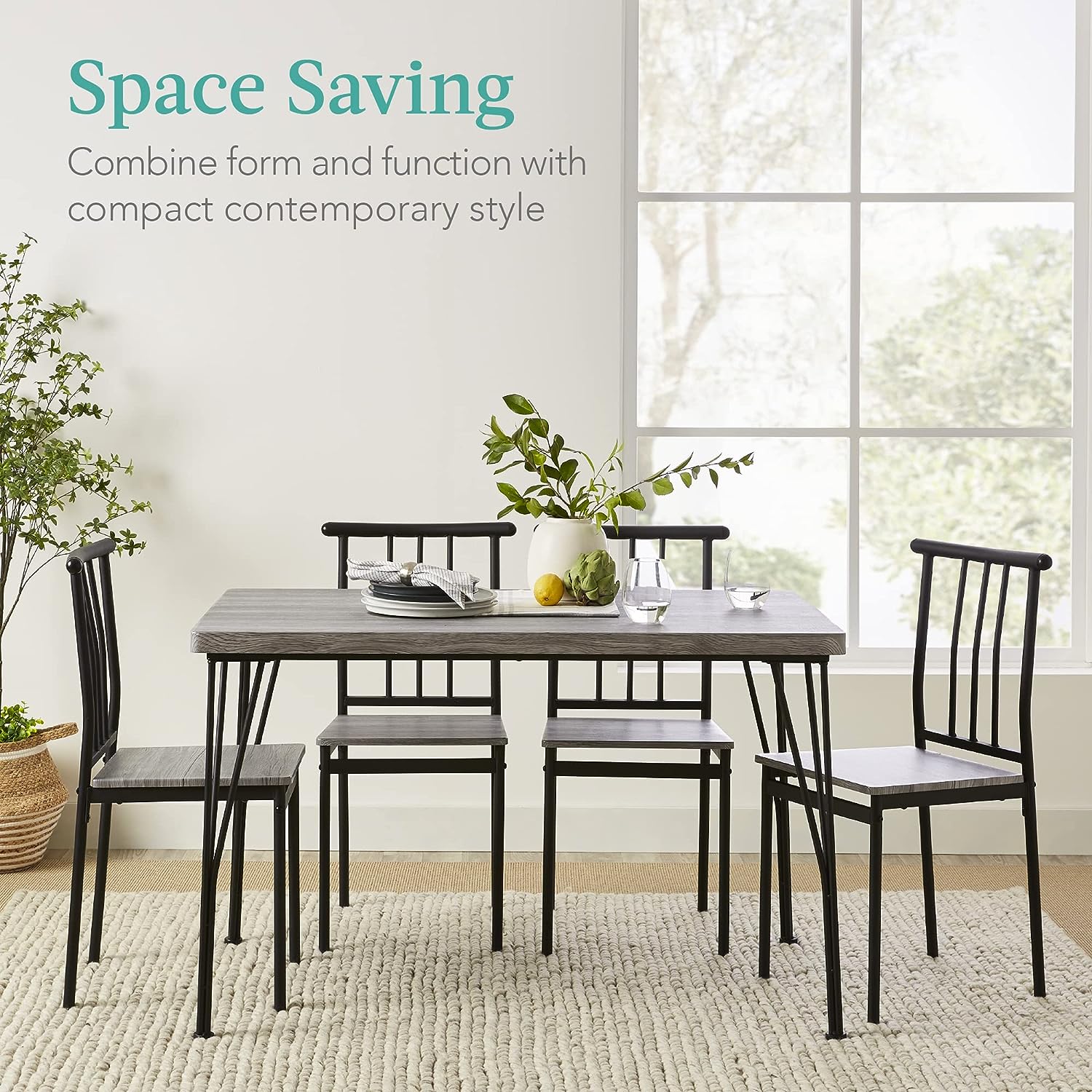 Best Choice Products 5-Piece Metal and Wood Indoor Modern Rectangular Dining Table Furniture Set for Kitchen. Dining Room. Dinette. Breakfast Nook w/ 4 Chairs - Gray