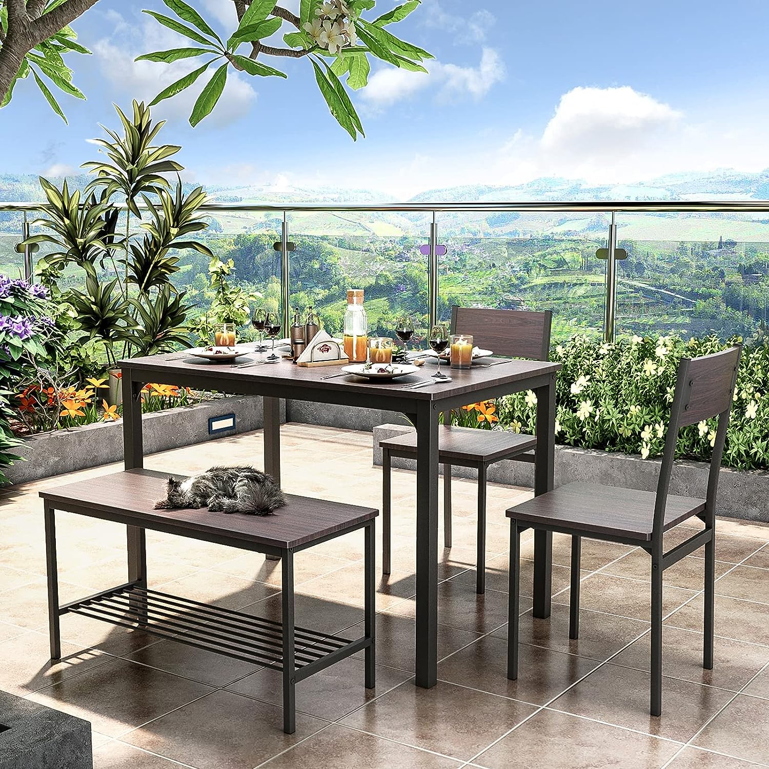 soges 4 Person Dining Table Set.43.3 inch Kitchen Table Set for 4.2 Chairs with Backrest.2-Person Bench with Storage Rack.Nesting Furniture Set for Dining Room and Restaurant. Rustic Oak