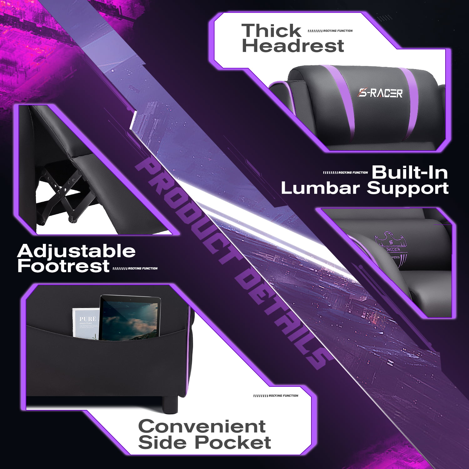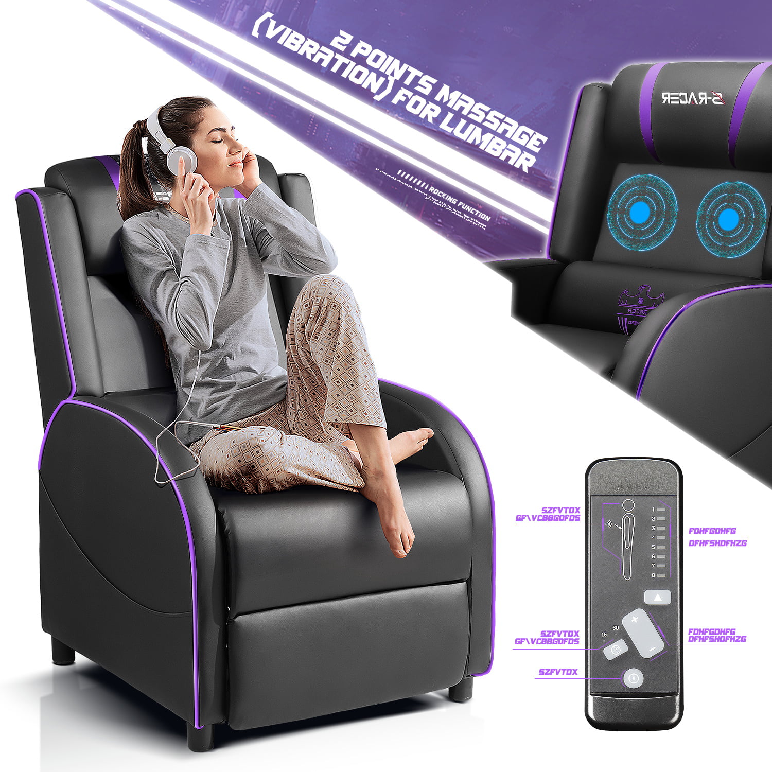 Homall Massage Gaming Recliner Chair Video Game Chair Racing Sofa Chair PU Leather Living Room Sofa Single Home Theater Seating. Purple