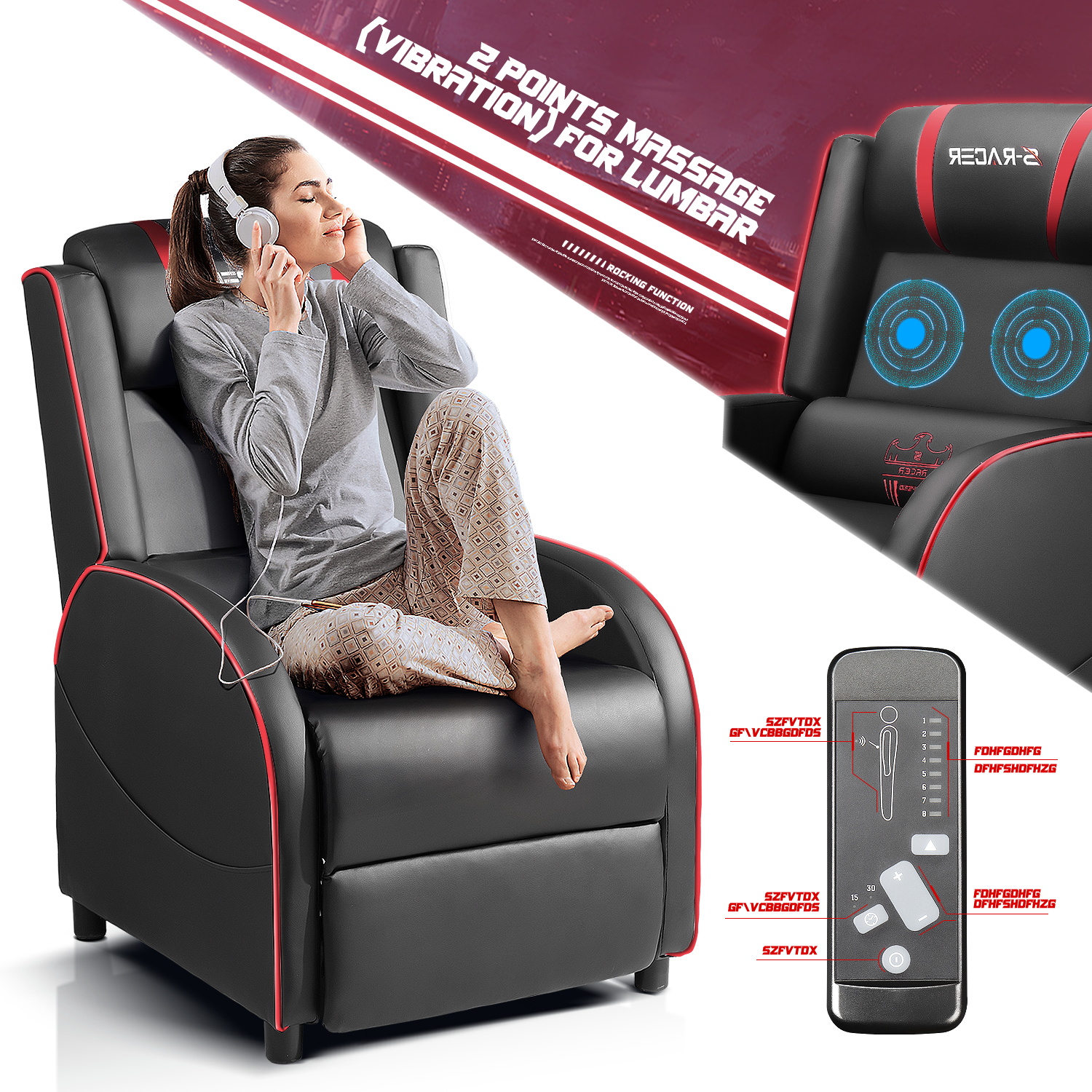 Homall Massage Gaming Recliner Chair Video Game Chair Racing Sofa Chair PU Leather Living Room Sofa Single Home Theater Seating. Red