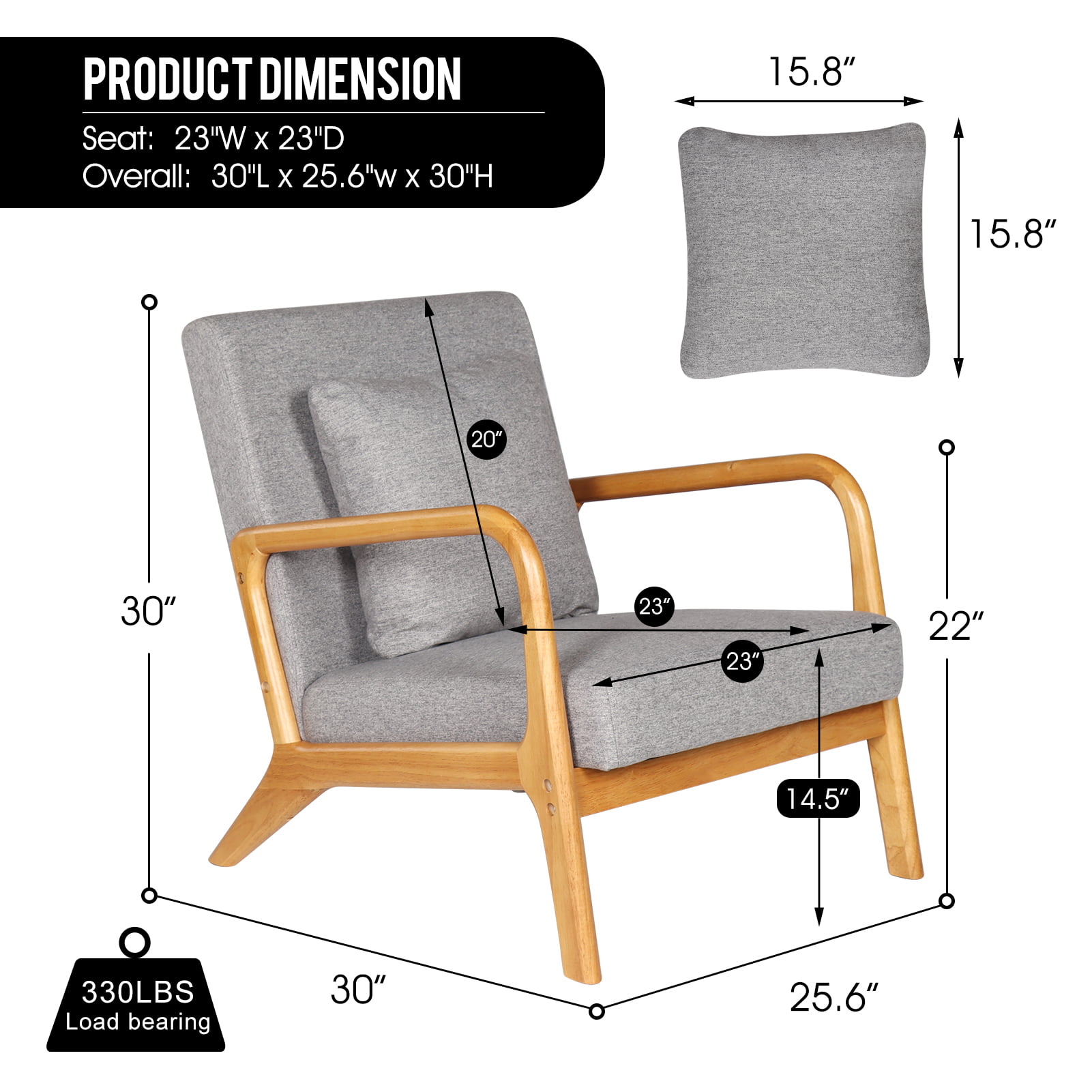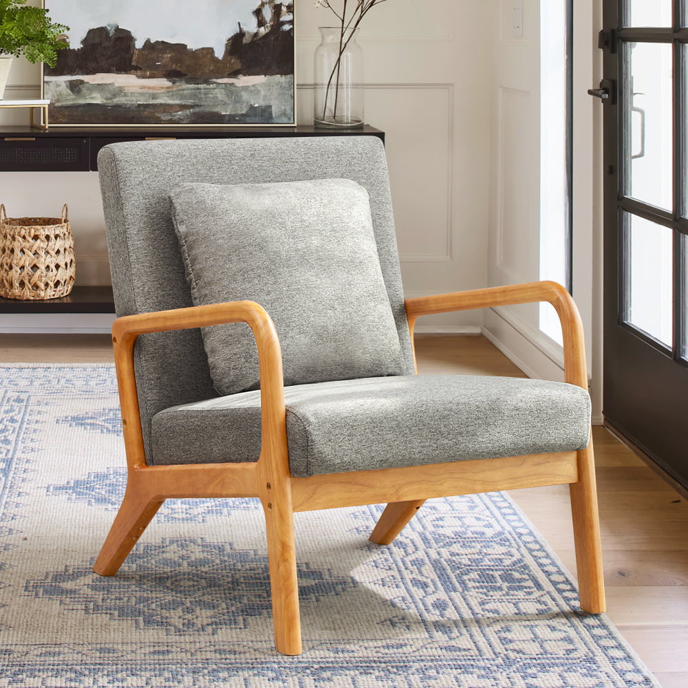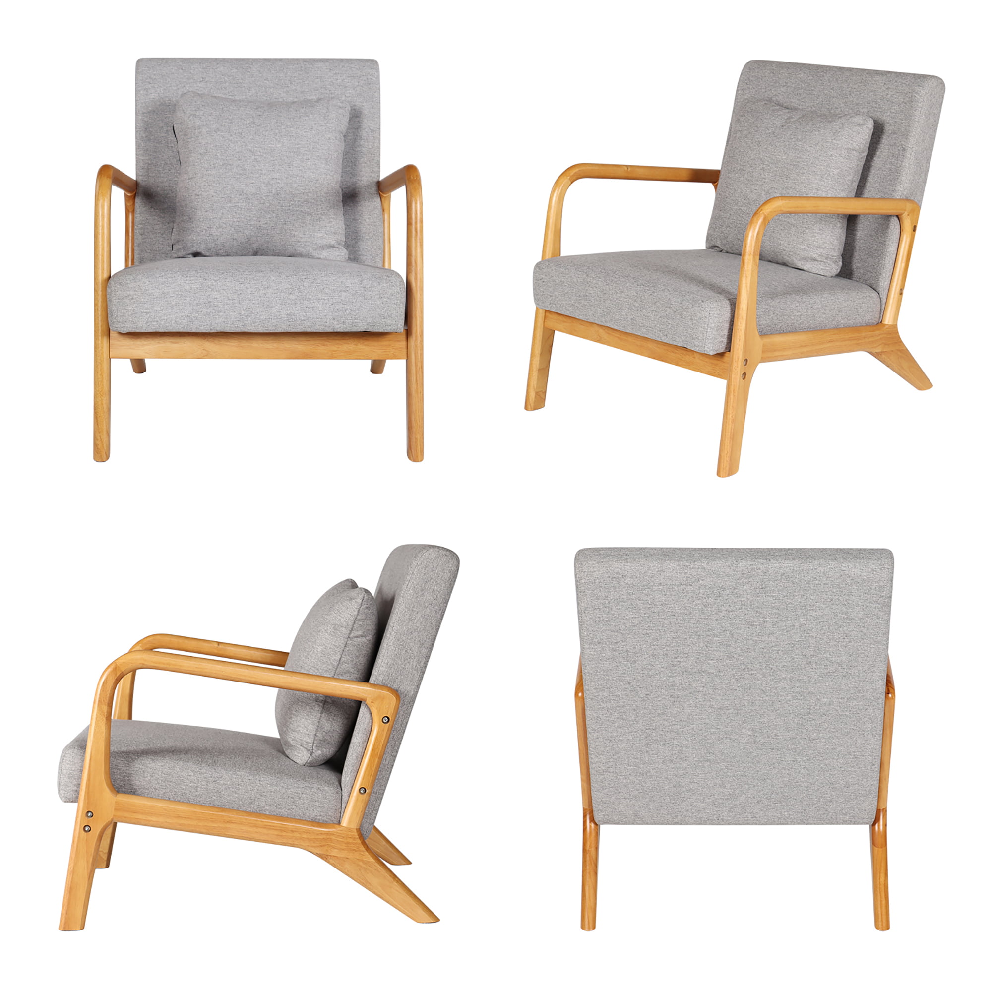 Modern Mid Century Accent Chair . 25.6″ x 30″ x 30″.Fabric Reading Armchair.Accent Chairs for Living Room Bedroom.Easy Assembly.Gray