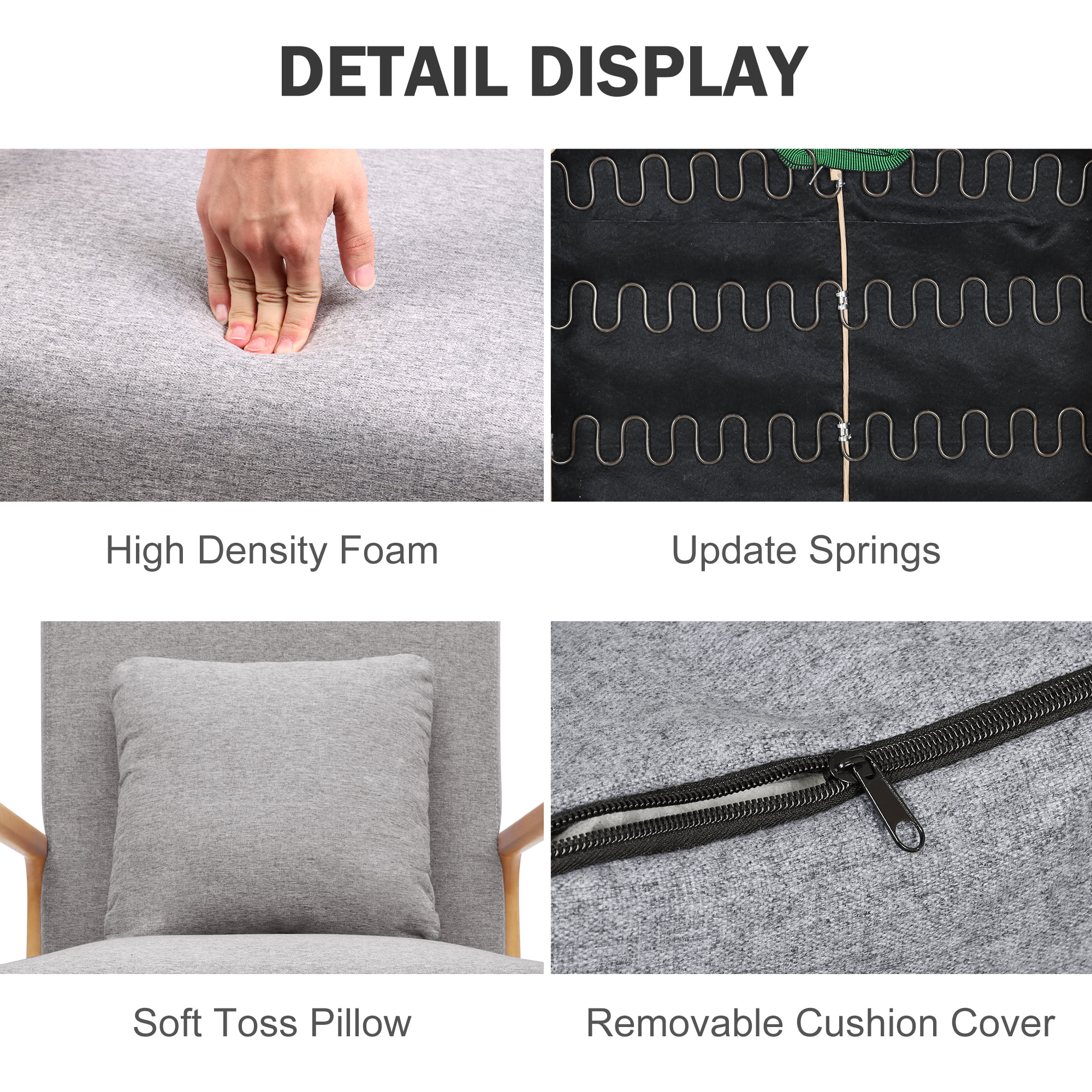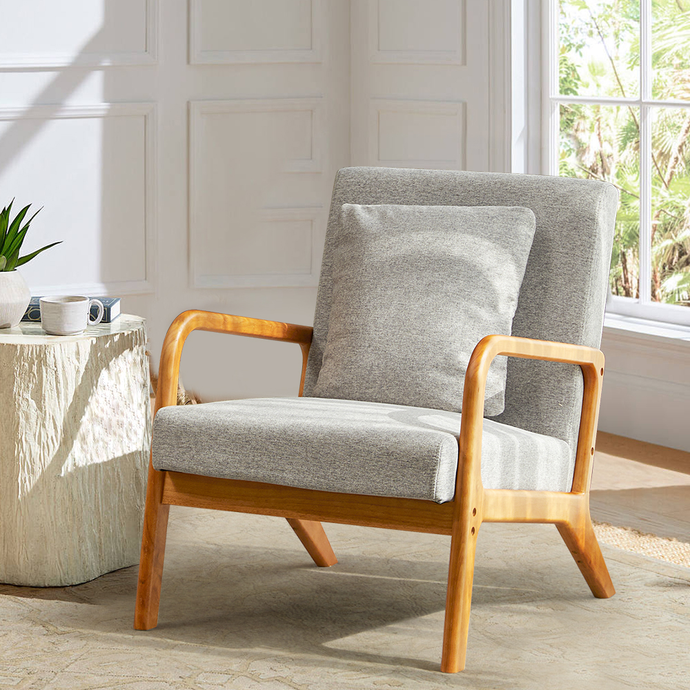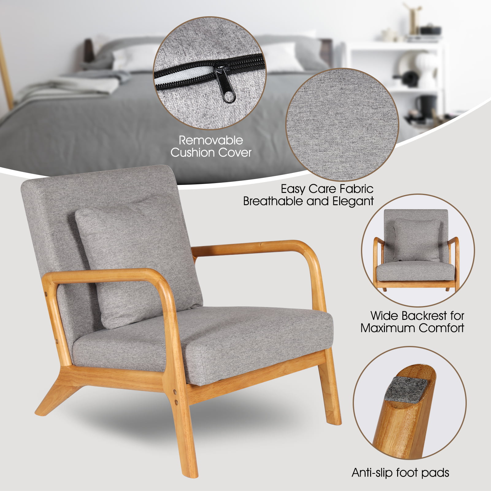 Modern Mid Century Accent Chair . 25.6″ x 30″ x 30″.Fabric Reading Armchair.Accent Chairs for Living Room Bedroom.Easy Assembly.Gray