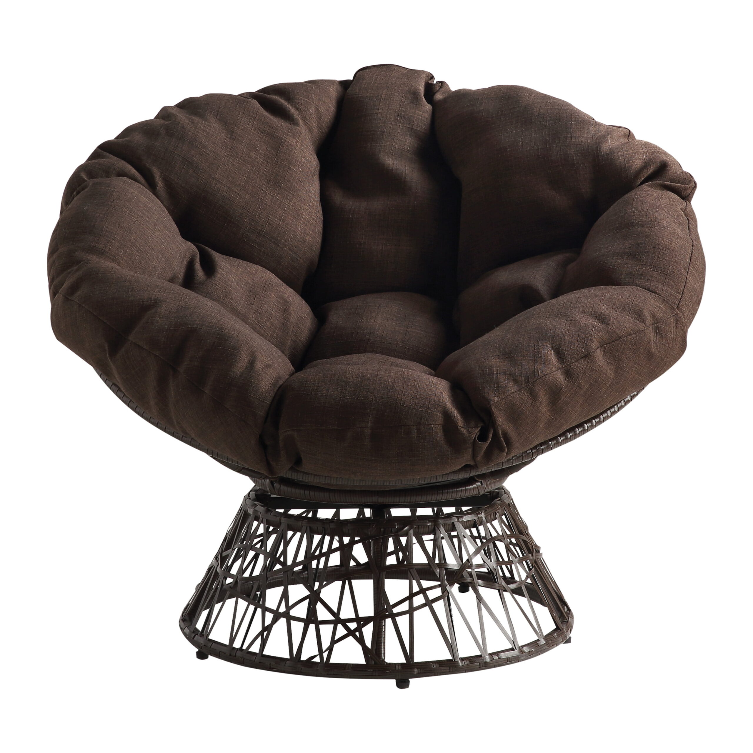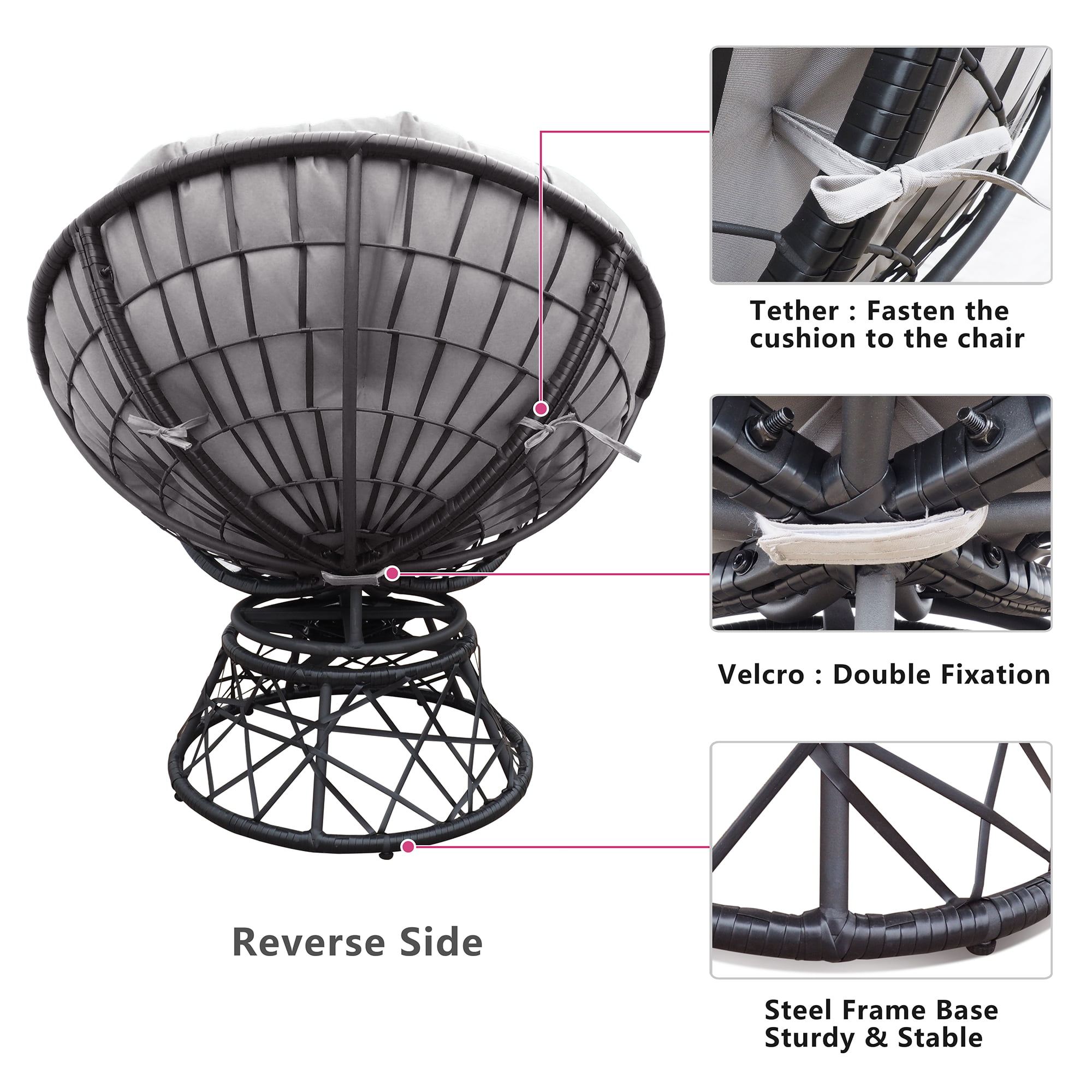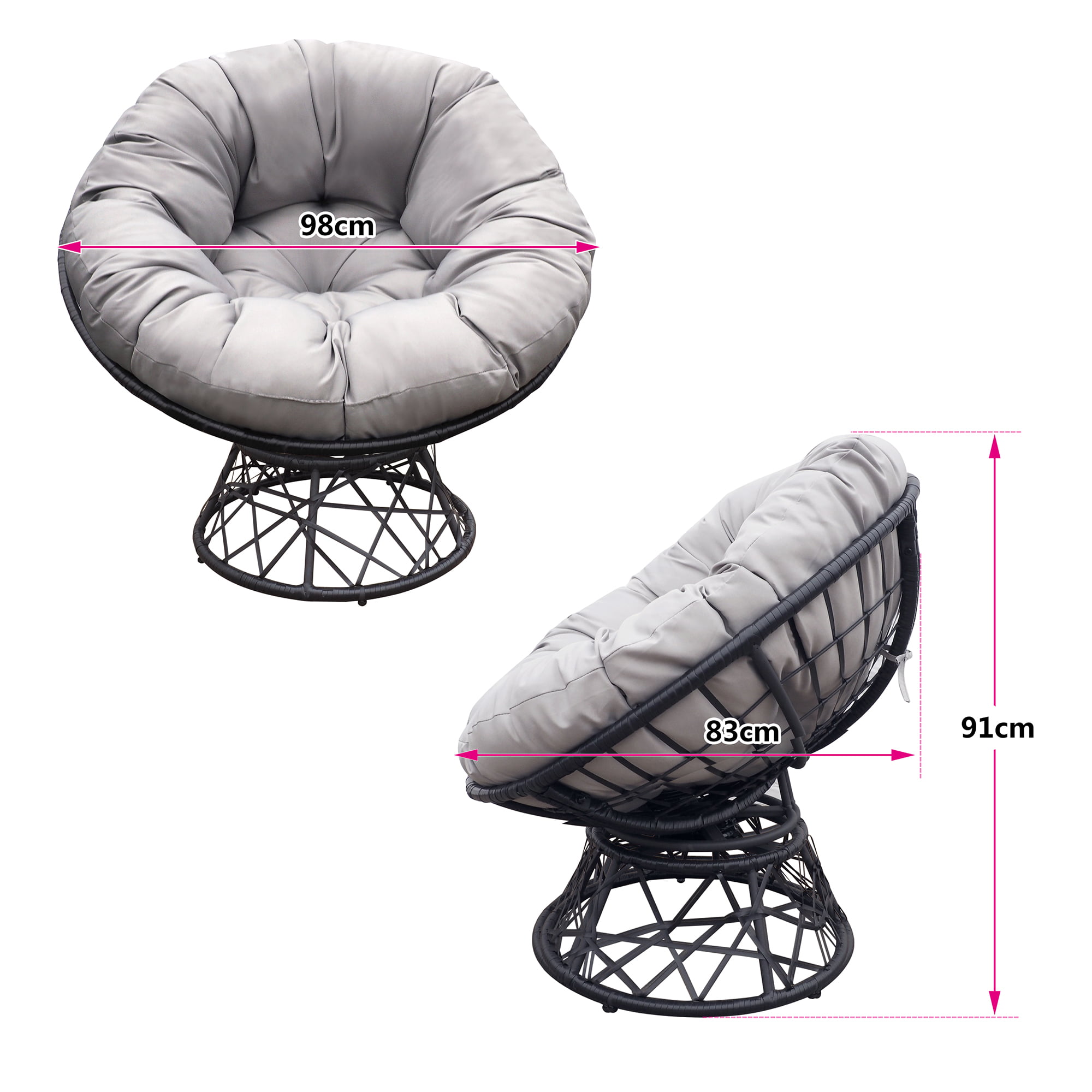Arttoreal Outdoor Patio Wicker Papasan Chair 360-Degree Swivel with Frame and Cushion.Comfy Round Lounge Moon Chair.Gray
