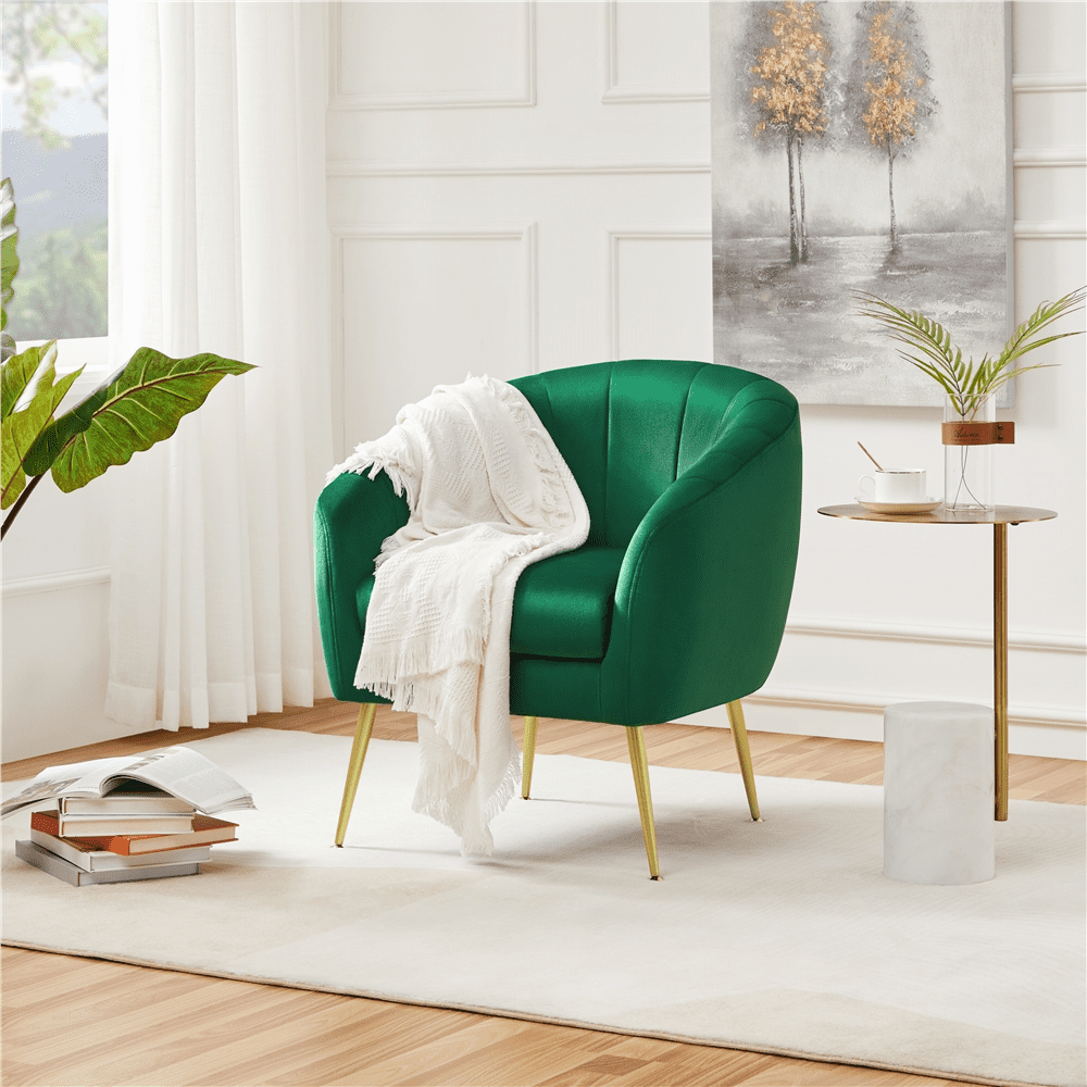 Yaheetech Velvet Channel Tufted Accent Armchair with Gold Metal Legs. Green
