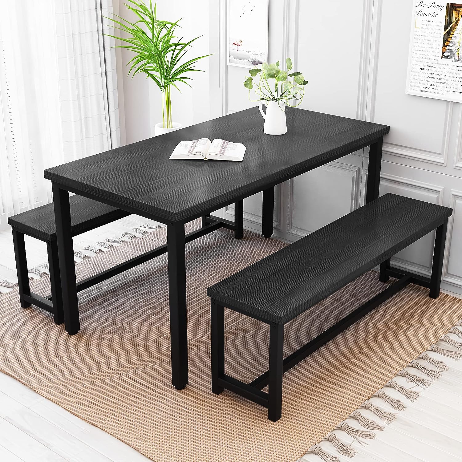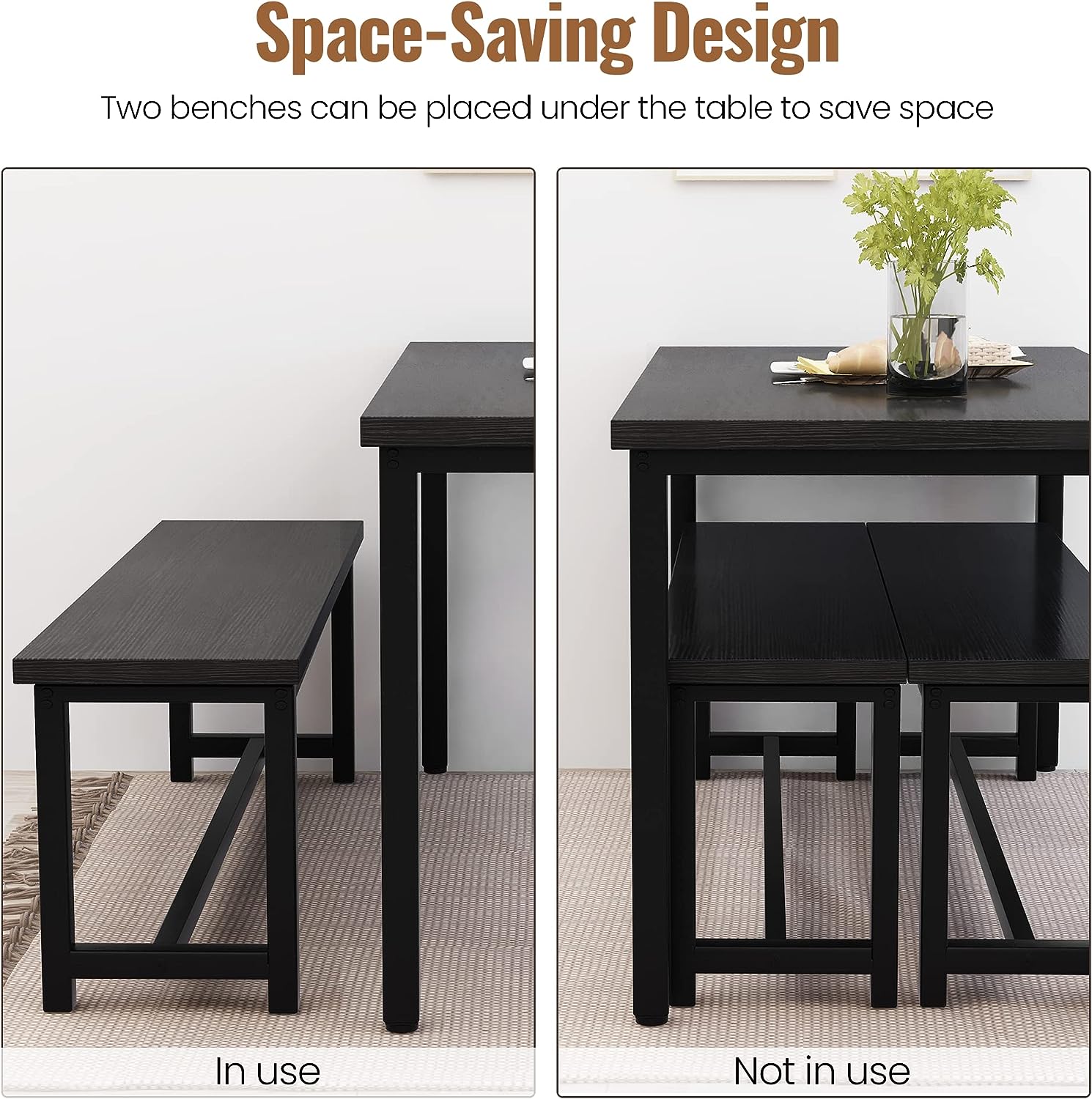 Recaceik 3 Piece Dining Table Set for 4. 43.3” Kitchen Table Set with 2 Benches. Space Saving Dinette with Chairs Metal Frame & MDF Board Dining Room Table for Kitchen. Breakfast Nook. Black