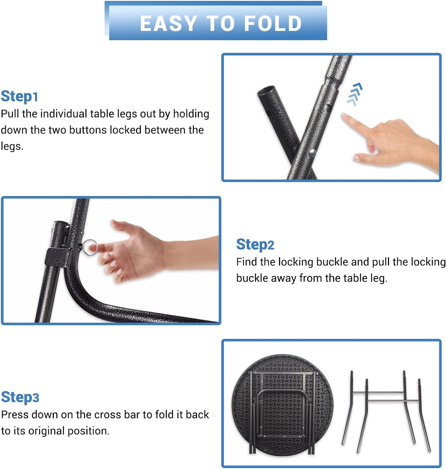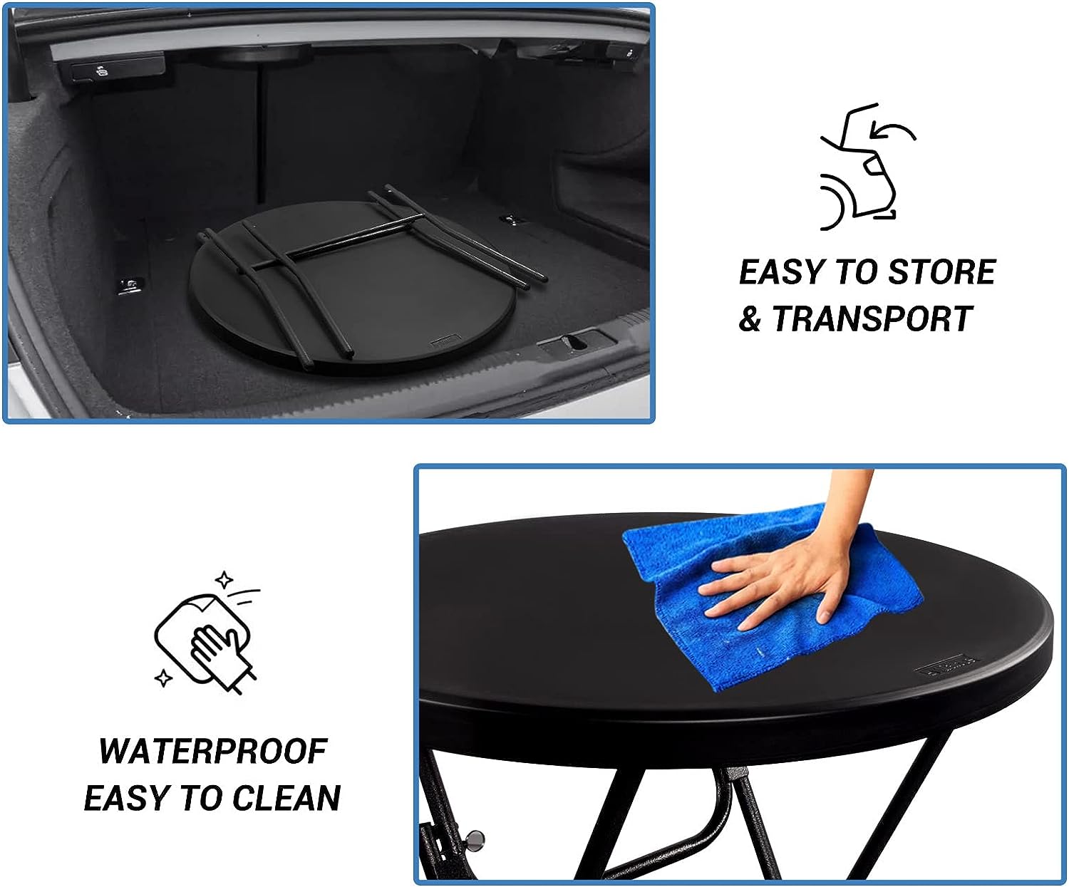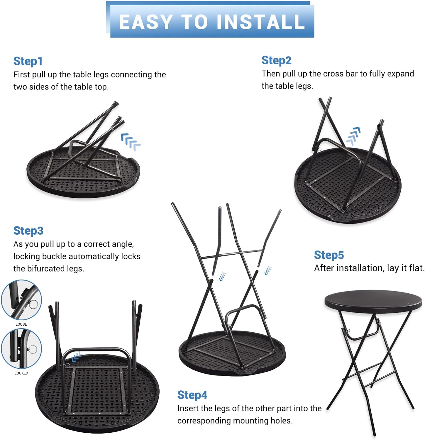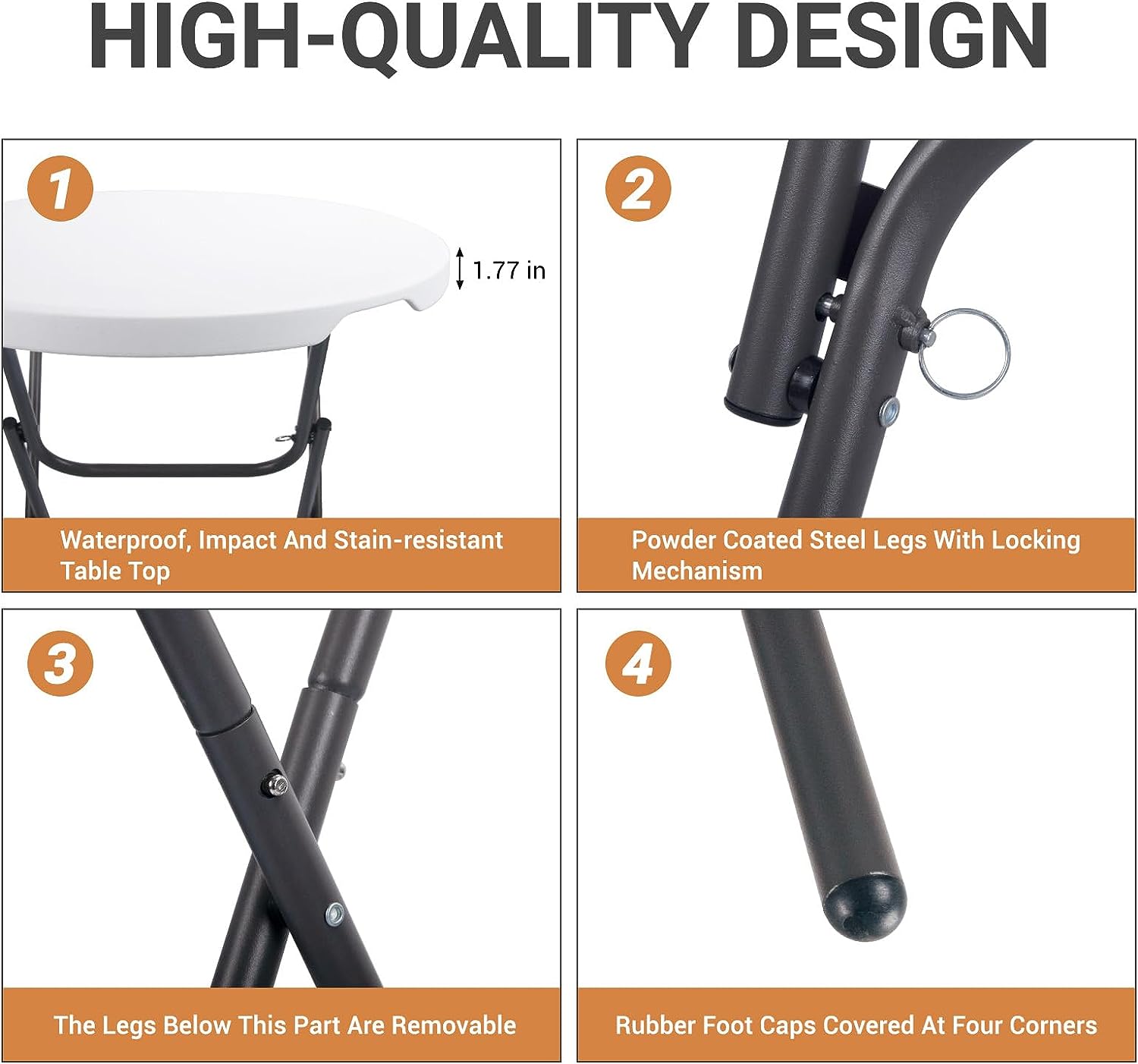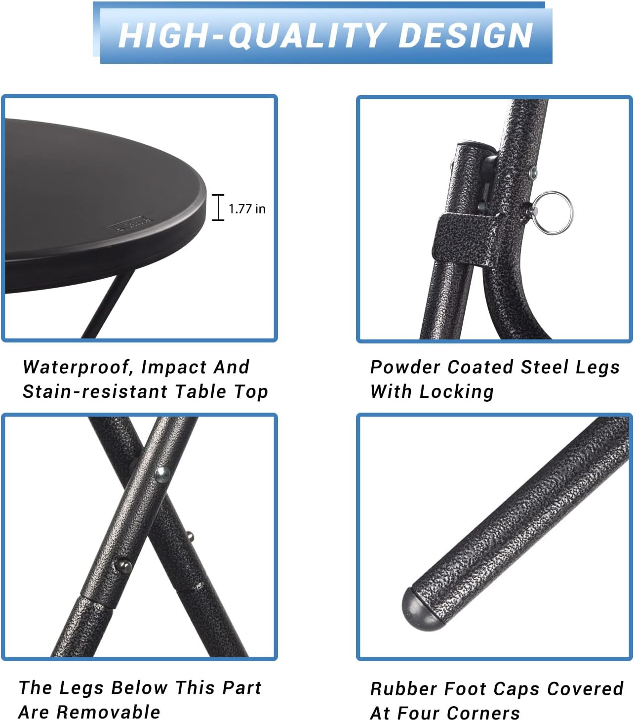 Byliable 32in Cocktail Table High Top Folding Table. Portable Bar Height Folding Table Round with Removable Legs. Indoor Outdoor Banquet Table for Parties. Commercial. Speech- Granite Black