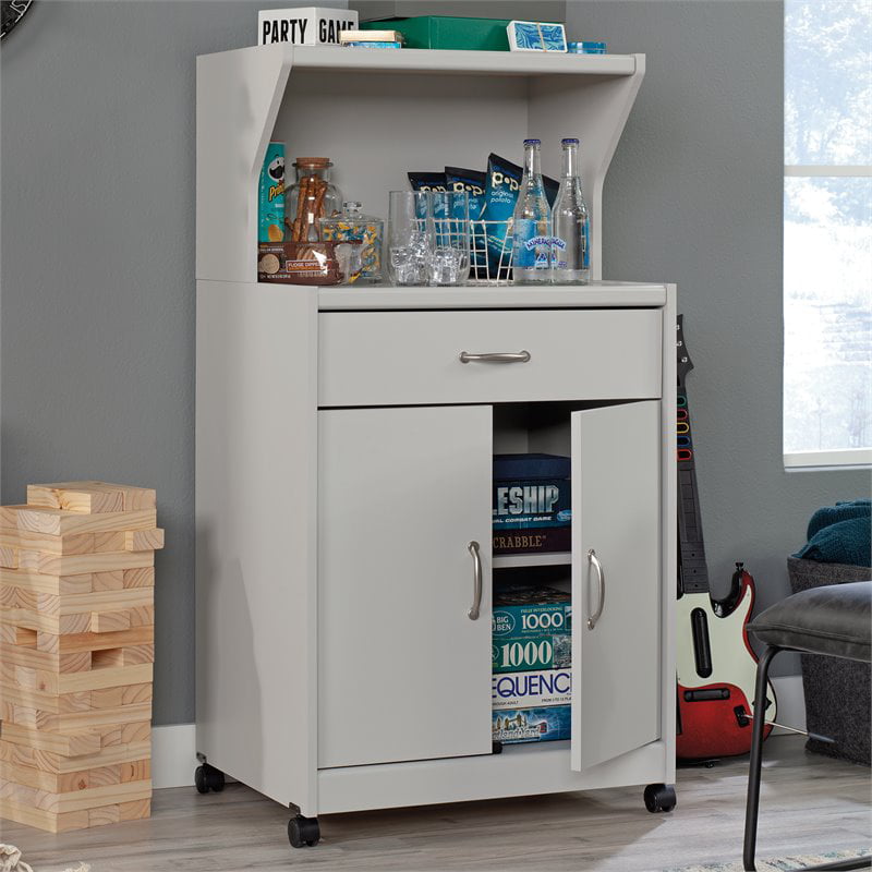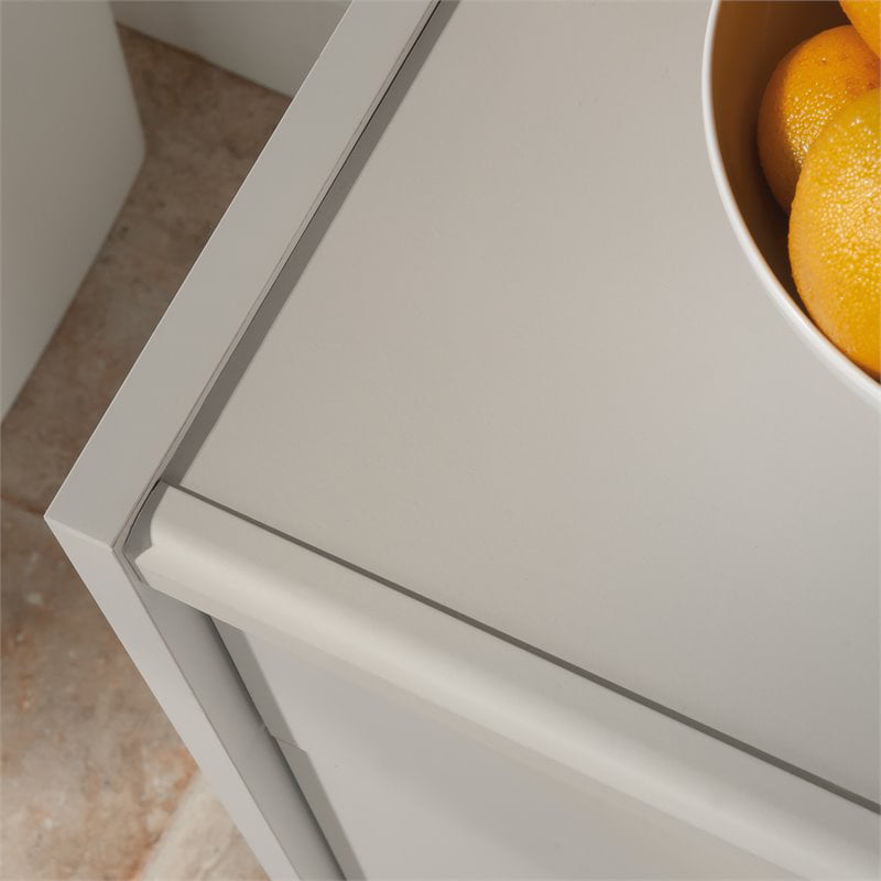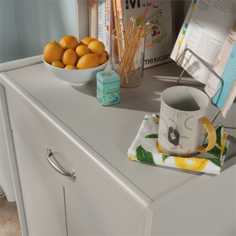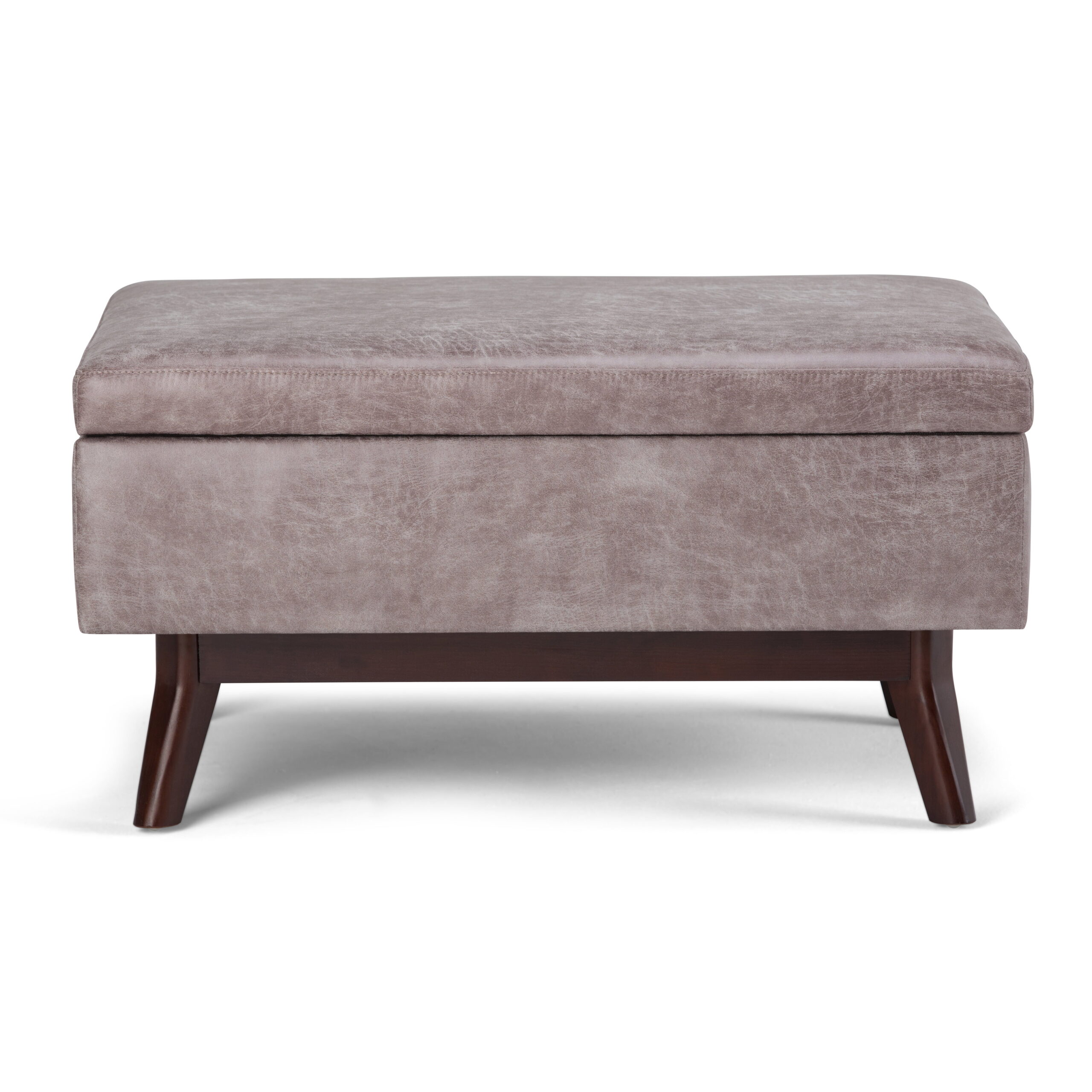 Simpli Home Owen Faux Leather Storage Coffee Table Ottoman in Gray Taupe
