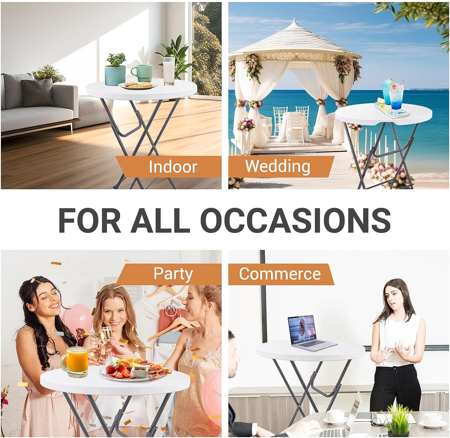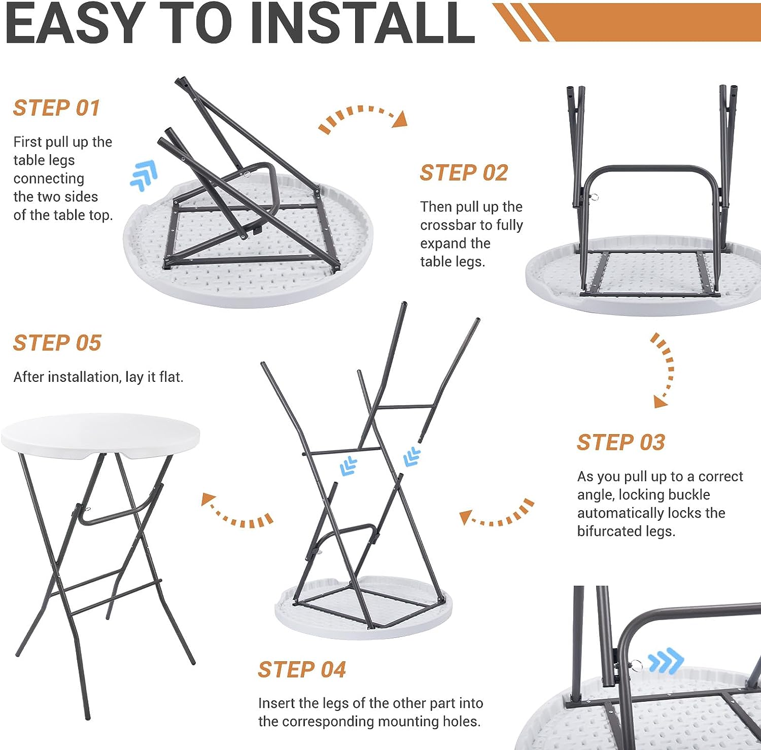 Byliable 32in Cocktail Table High Top Folding Table. Portable Bar Height Folding Table Round with Removable Legs. Indoor Outdoor Banquet Table for Parties. Commercial. Speech. School- Granite White