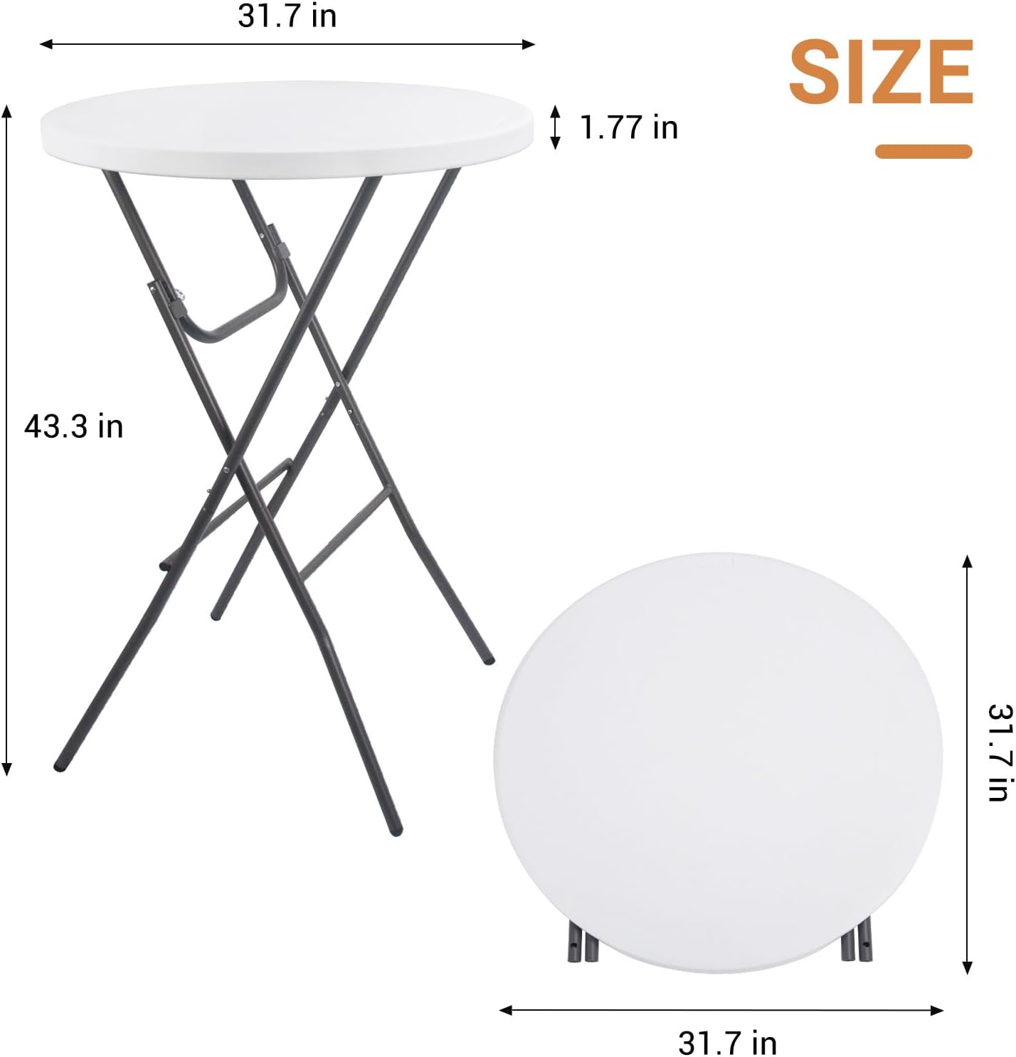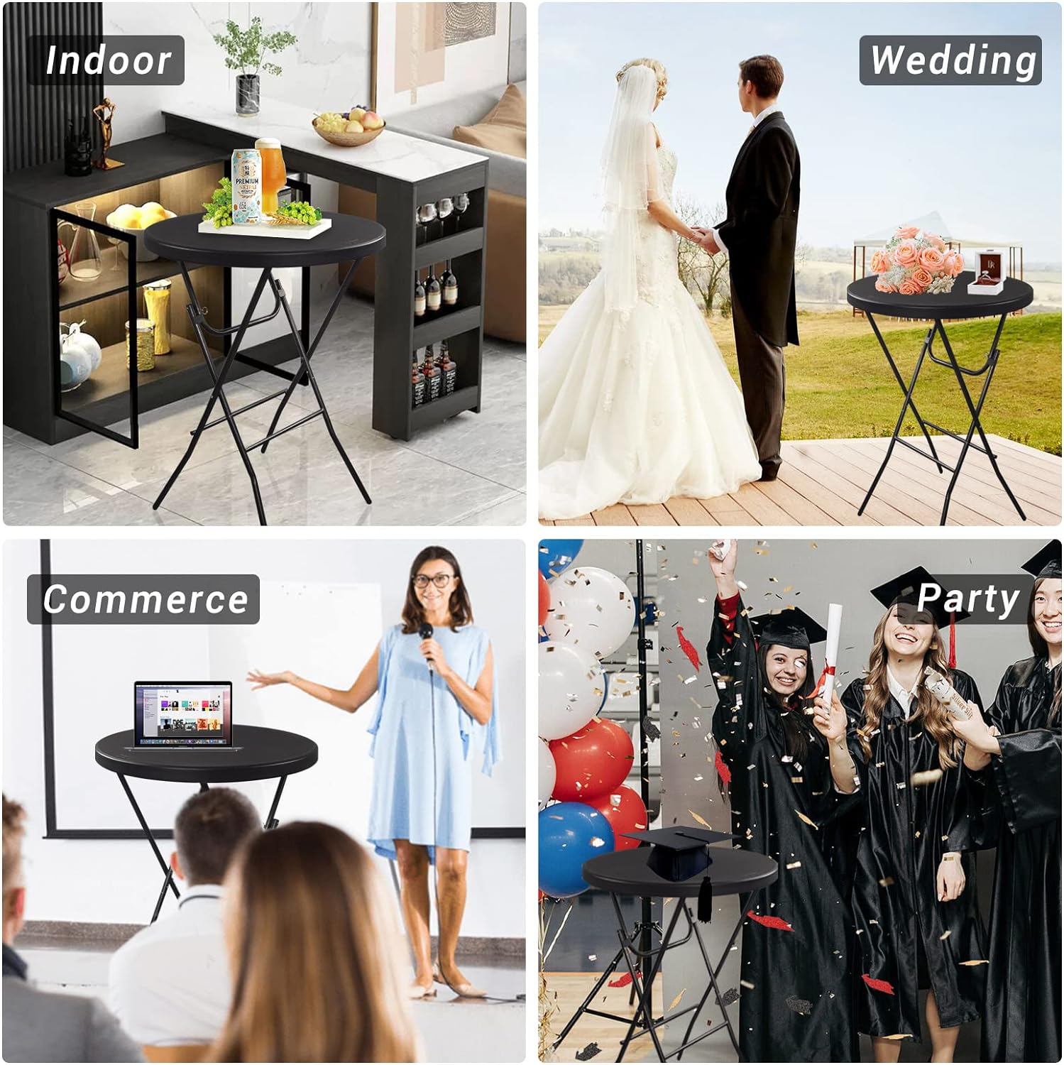 Byliable 32in Cocktail Table High Top Folding Table. Portable Bar Height Folding Table Round with Removable Legs. Indoor Outdoor Banquet Table for Parties. Commercial. Speech. Black - 2PCS