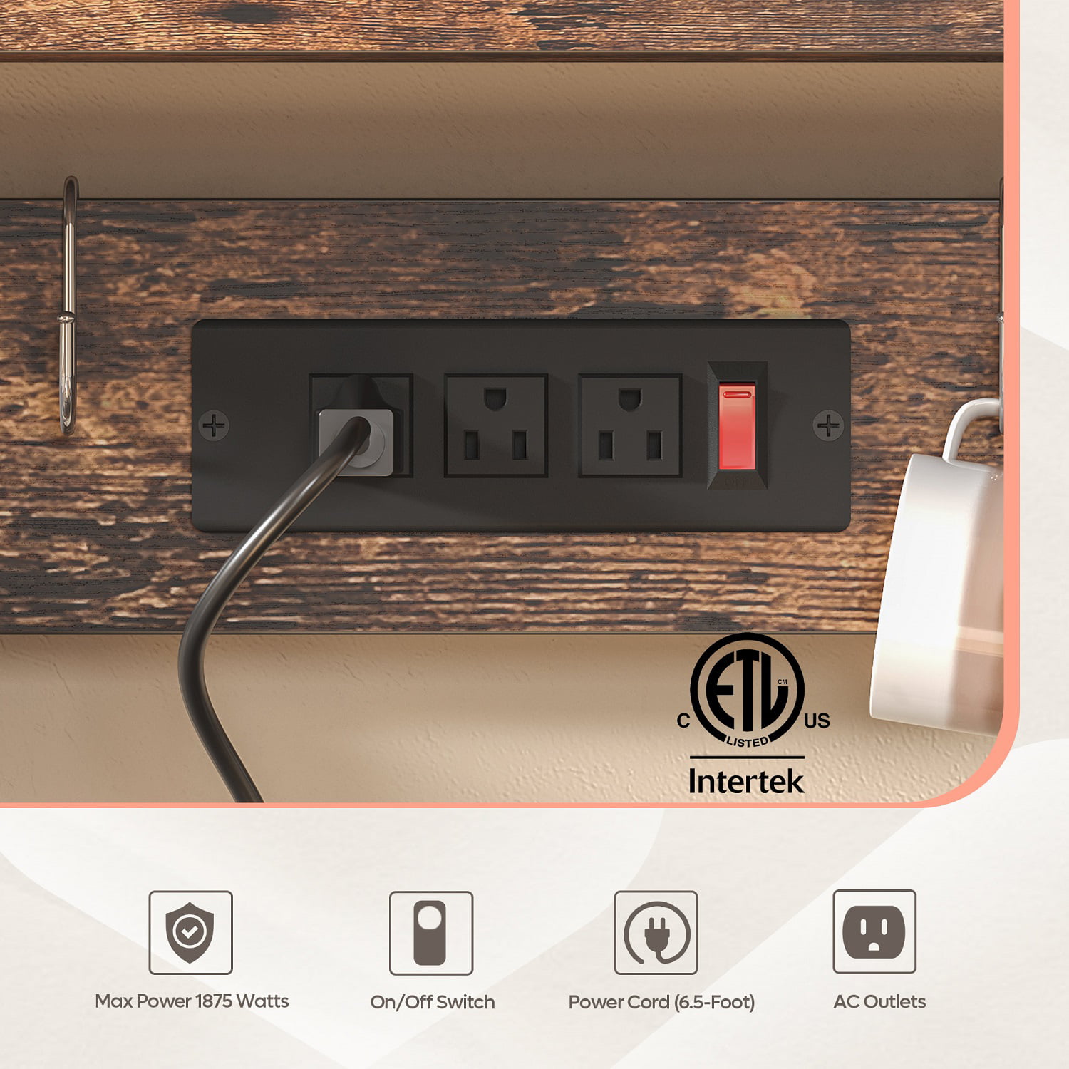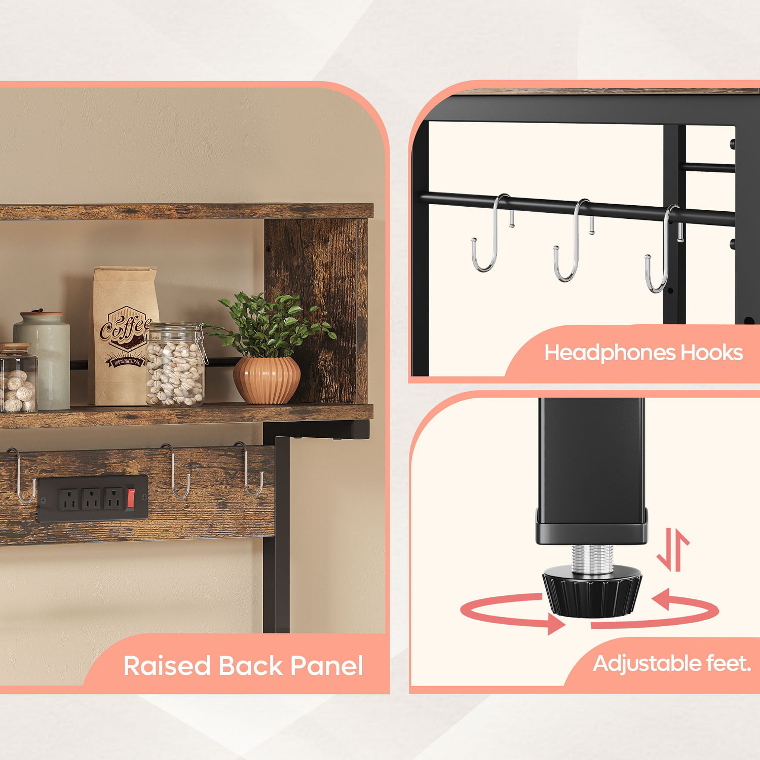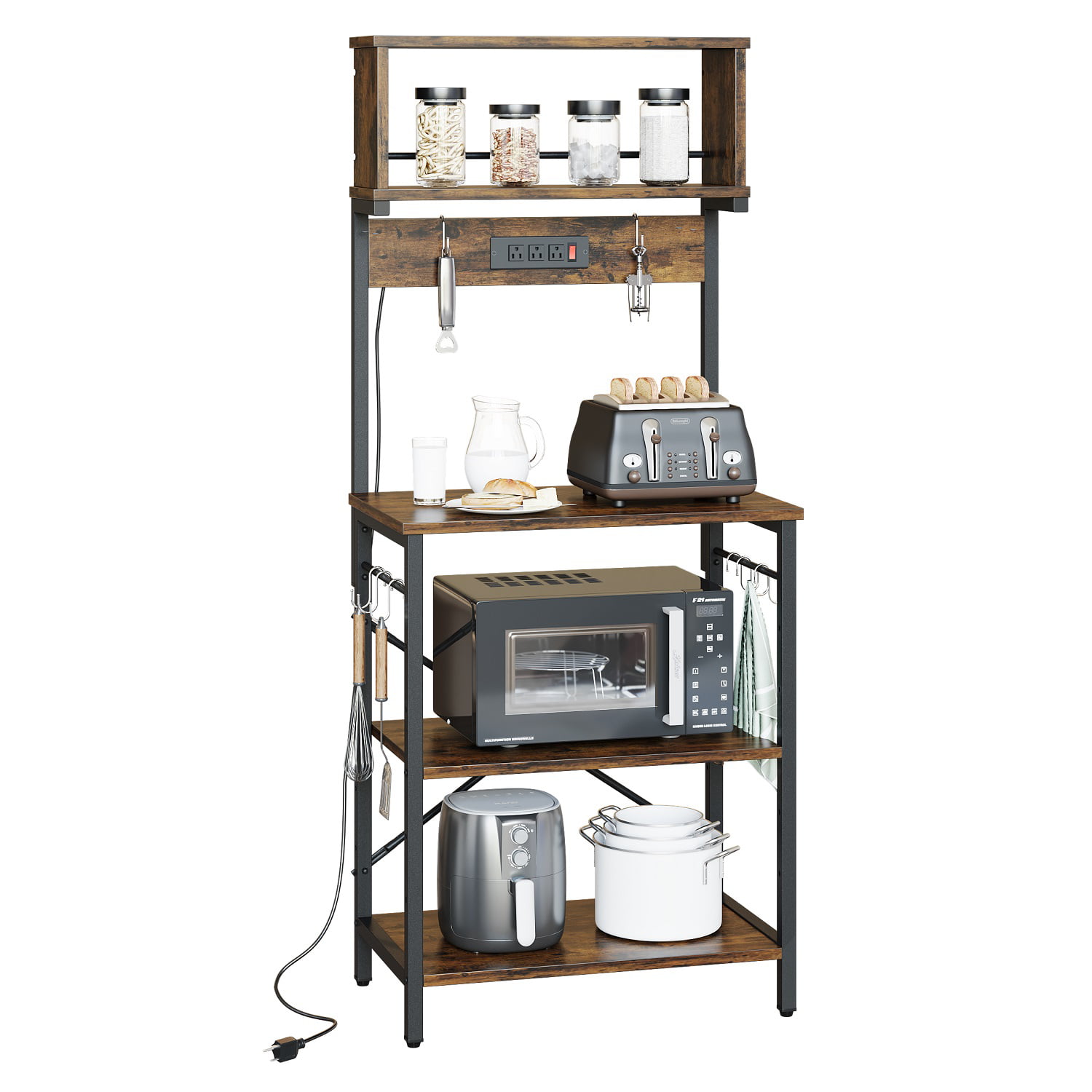 Bestier 60.3 inch 5-Tier Kitchen Bakers Rack with Power Outlets Wood Kitchen Rack in Rustic