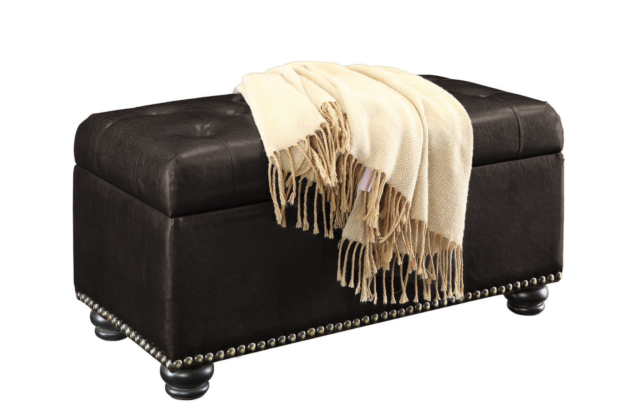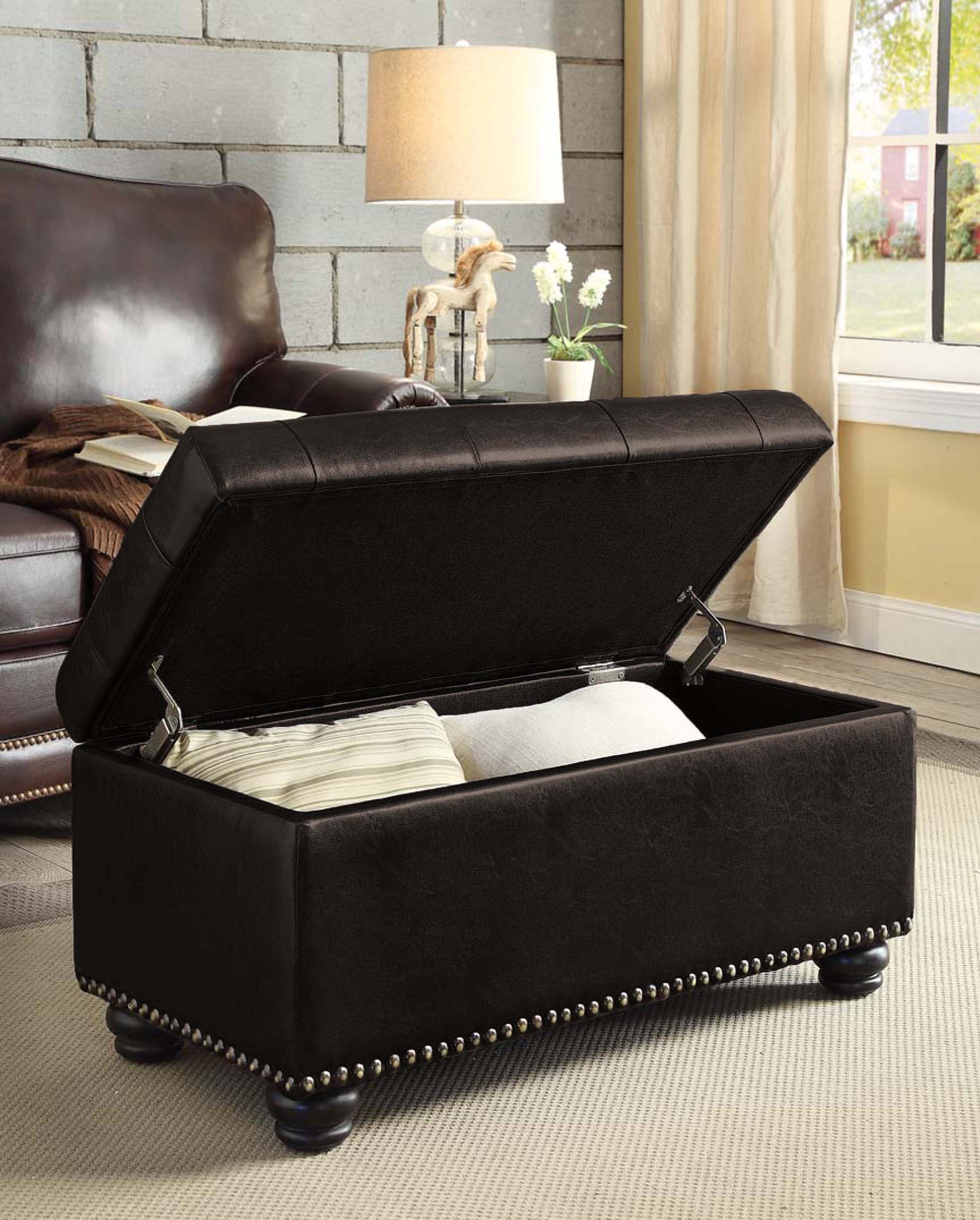 HomCom Large 51″ Tufted Faux Leather Ottoman Storage Bench - Black