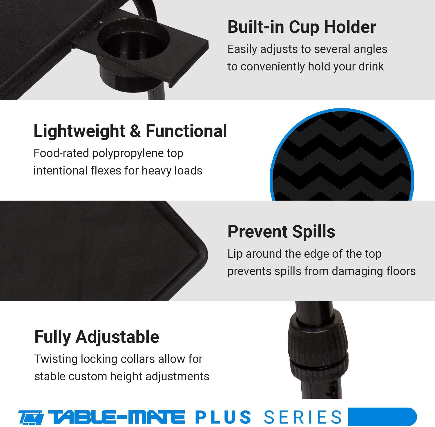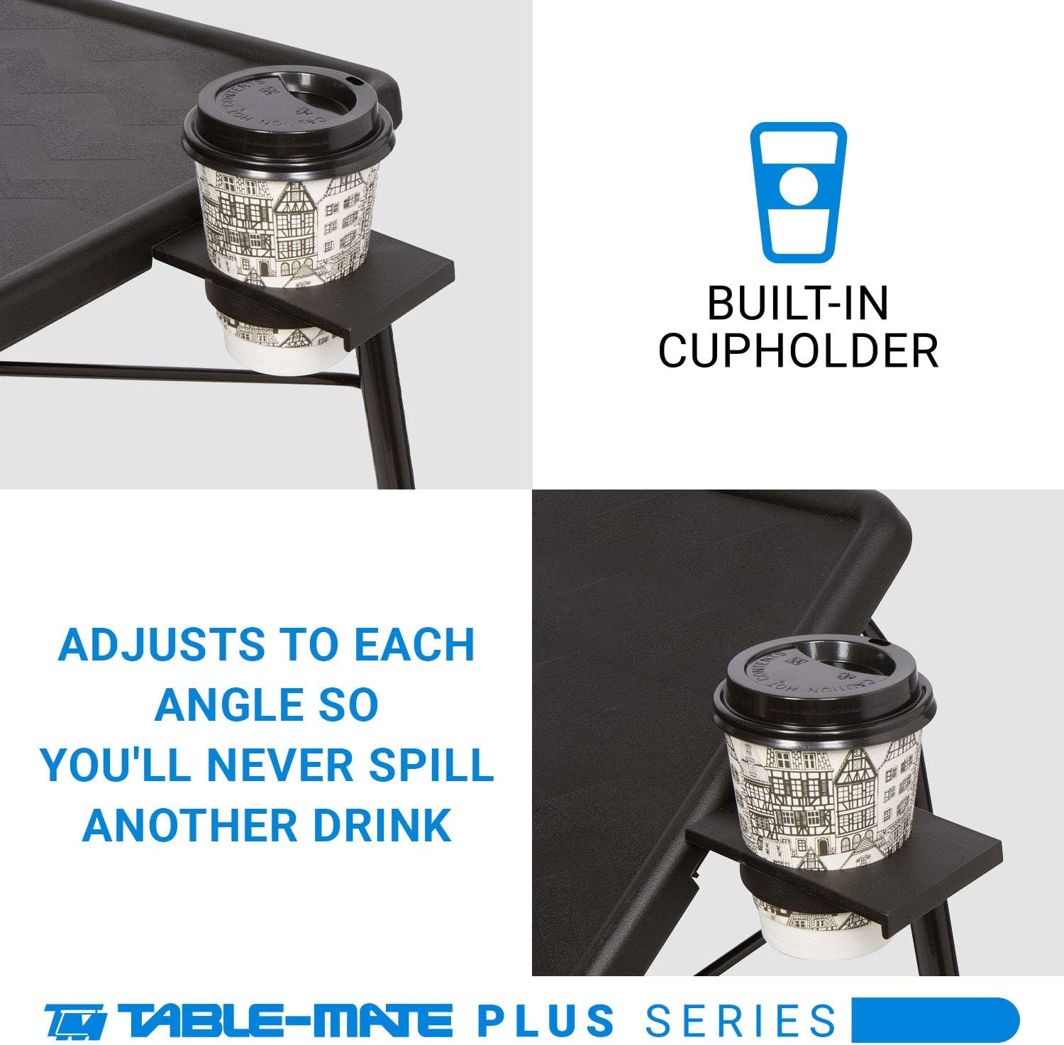 Table-Mate II Plus - Adjustable Folding TV Tray with Cup Holder. Black