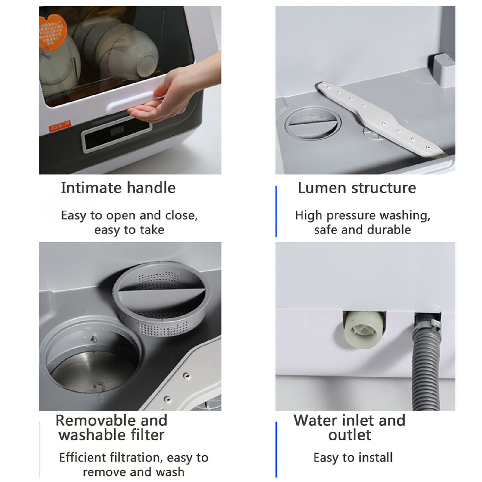 TFCFL Portable Countertop Dishwasher 4 Washing Program Spray Wash with Drying Function