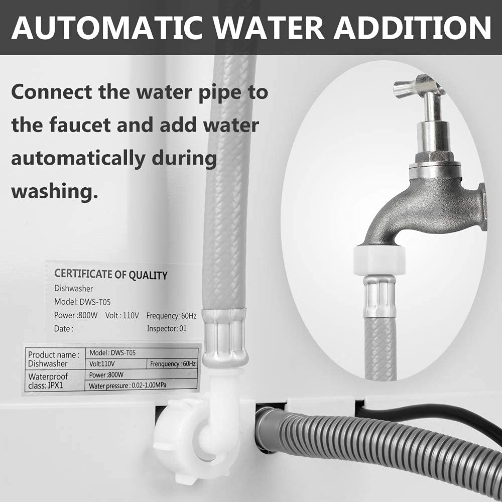 Fichiouy Portable Countertop Dishwasher 3 Programmes with LED Display&Water Pipe Air Dry Function White