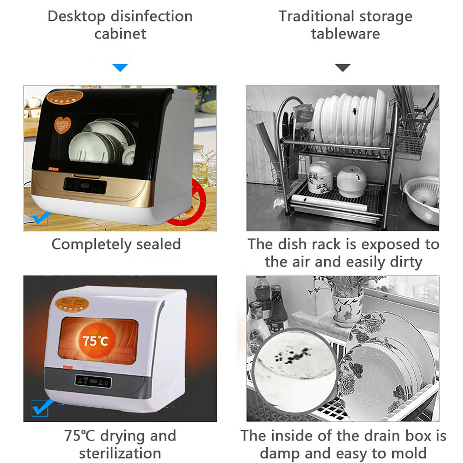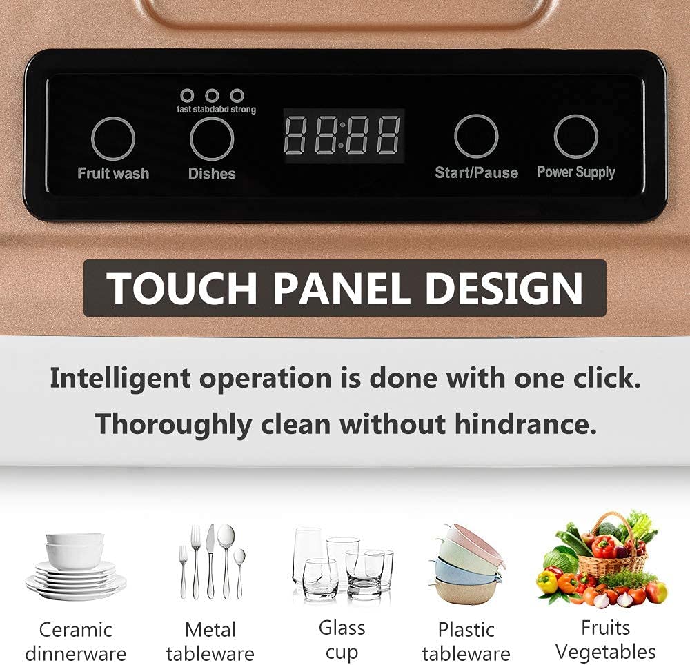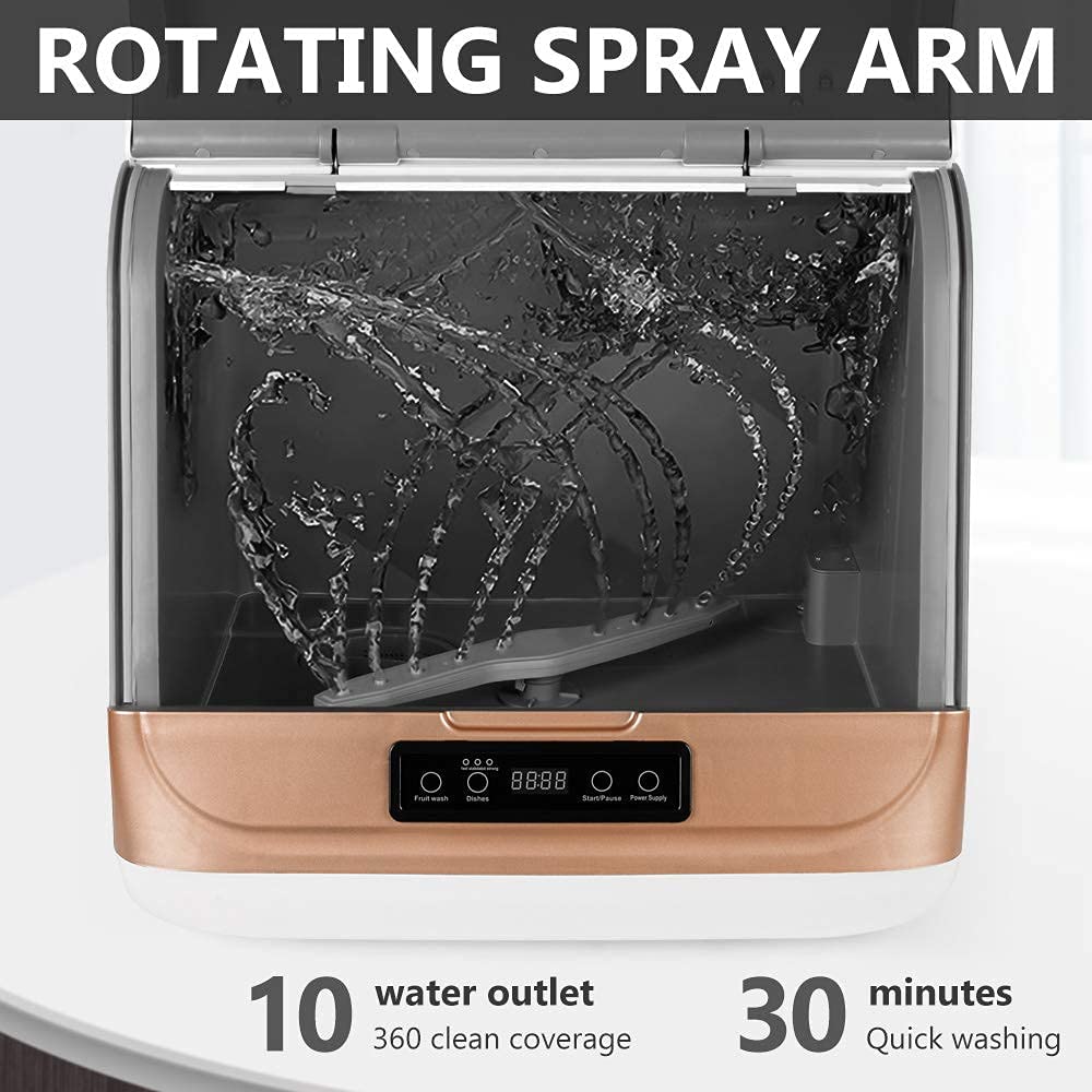 Ming Wang Portable Countertop Dishwasher.4 Washing Programs. Air-Dry Function and LED Light for Small Apartments. Dorms and RVs (Golden)