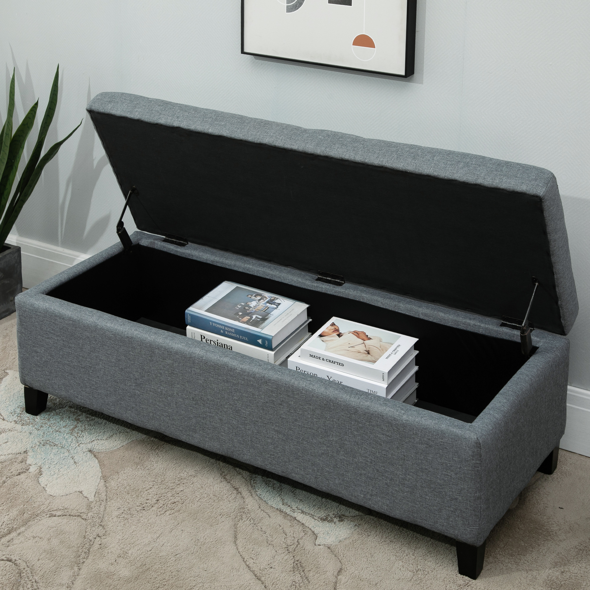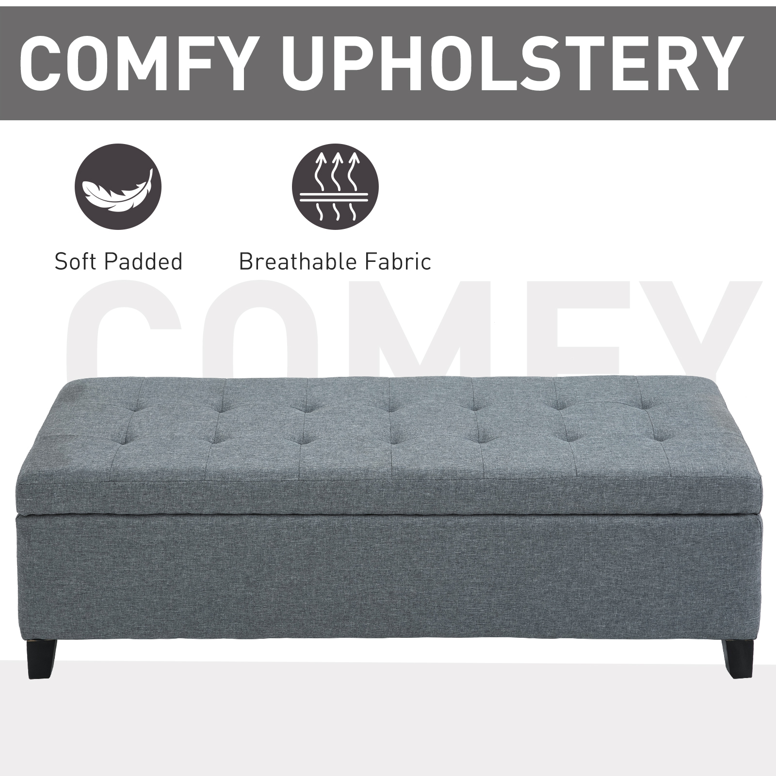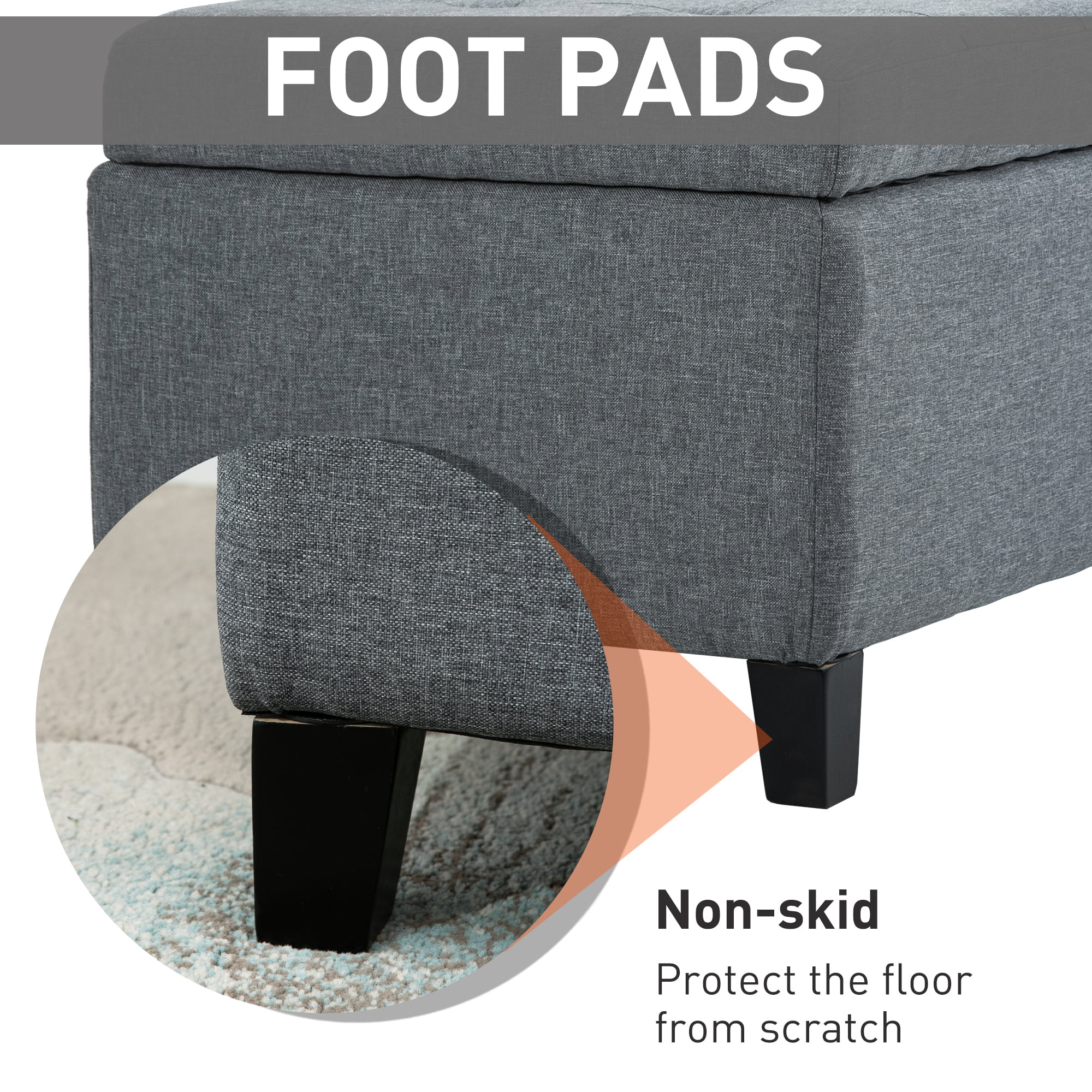 HomCom 51″ Large Tufted Linen Fabric Ottoman Storage Bench With Soft Close Top - Heather Grey