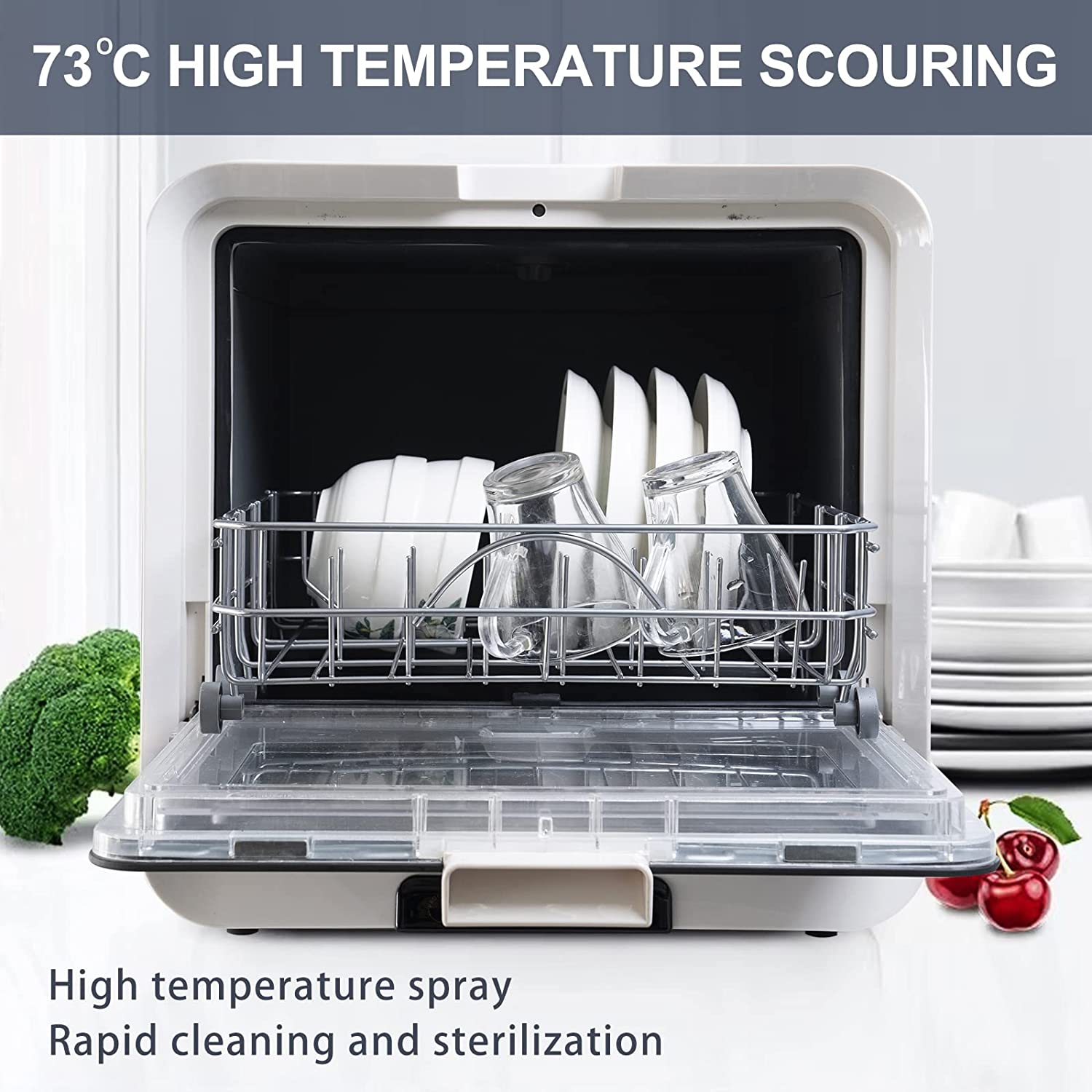 Portable Countertop Dishwasher.4 Washing Programs. Air-Dry Function and LED Light for Small Apartments. Dorms and RVs (Whites)